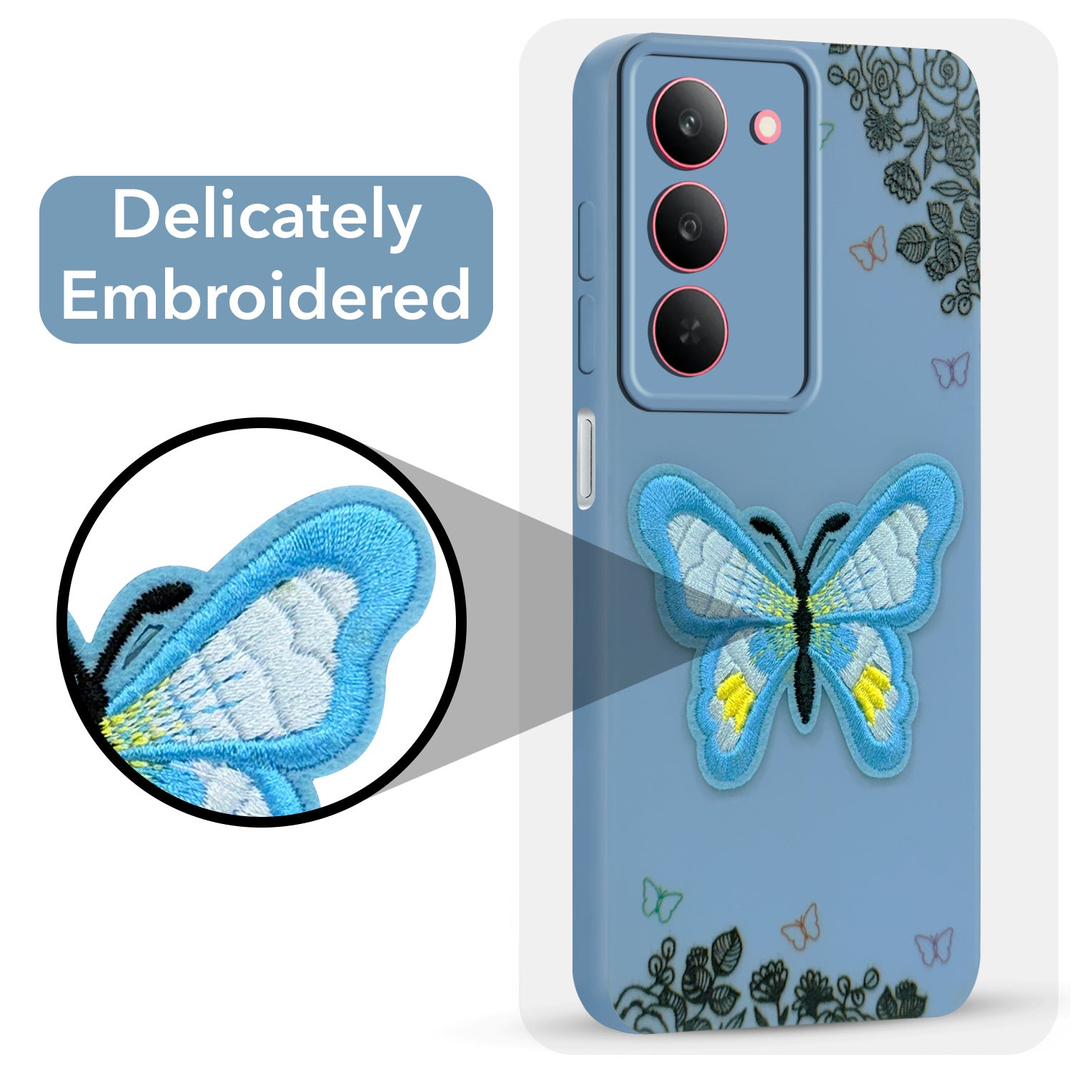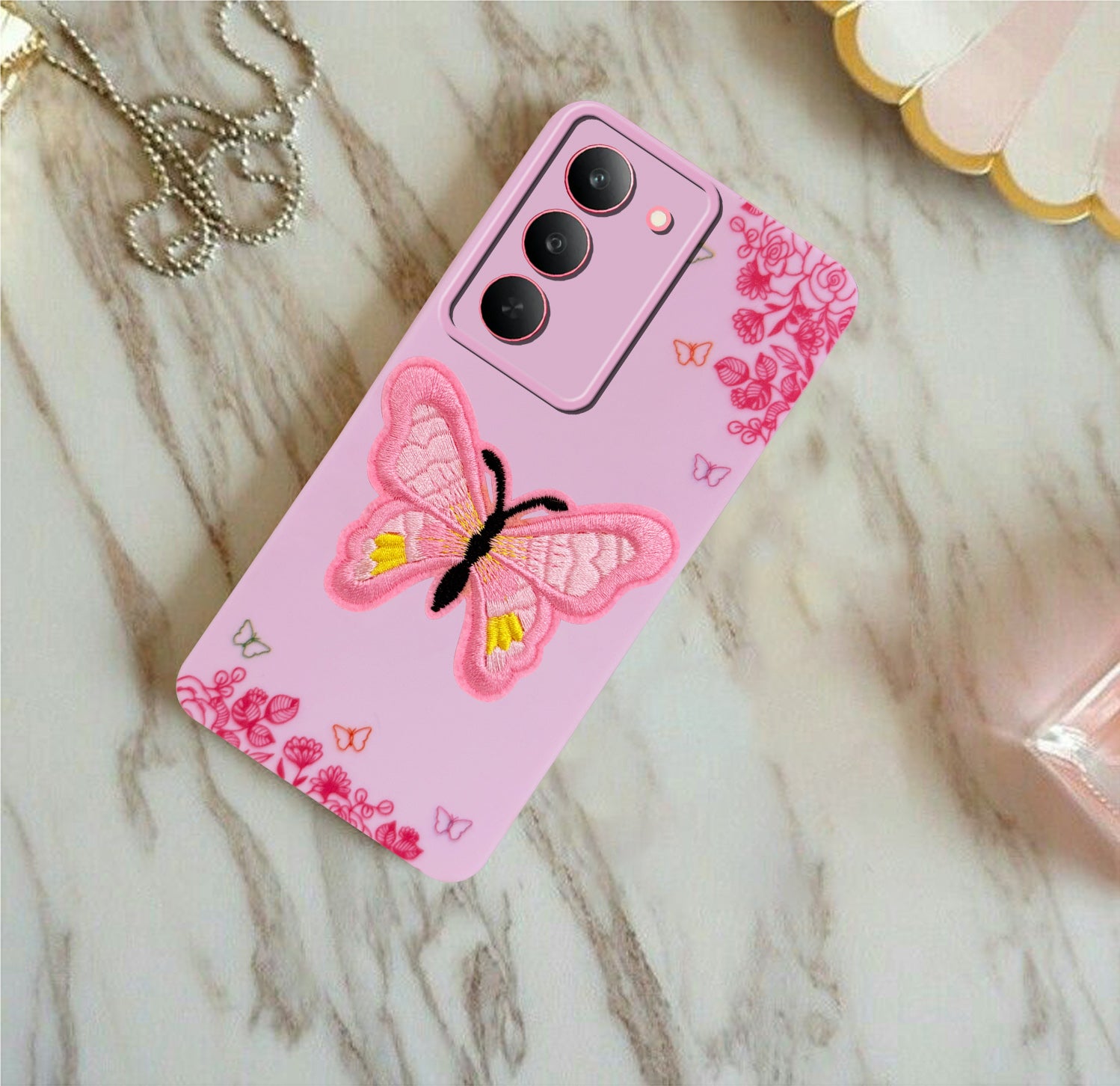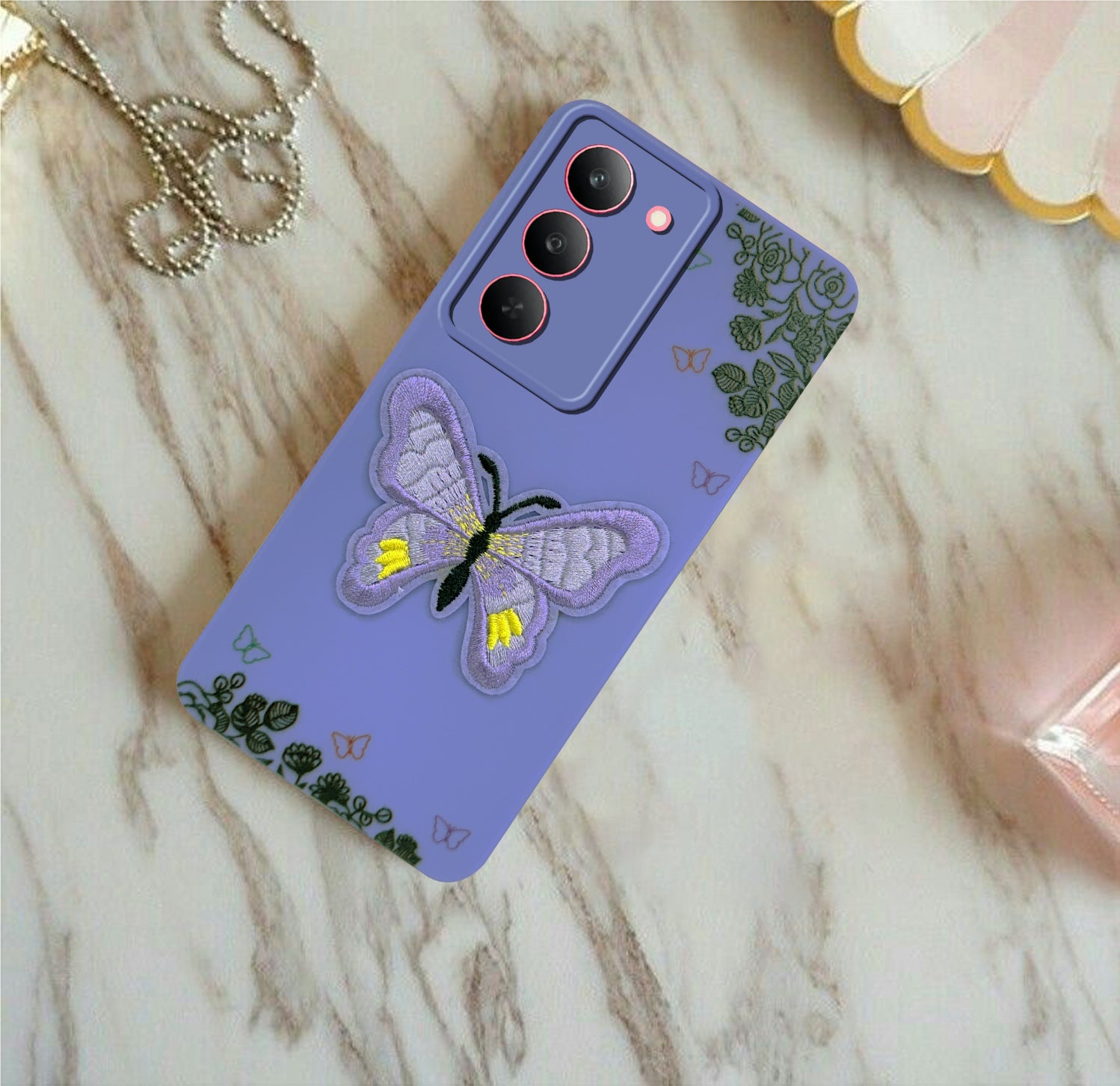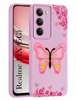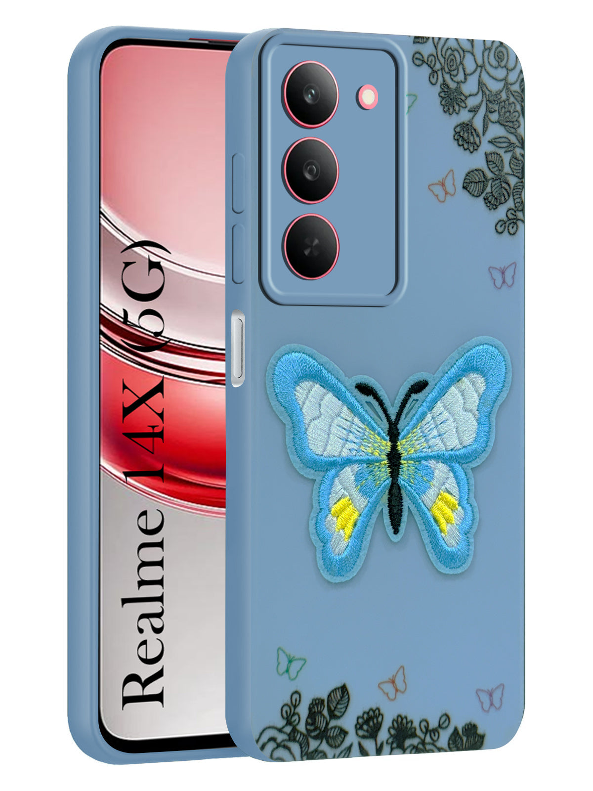 For Realme 14X Back Cover Case (Soft Butterfly Embroidery | Women Teen Girls | Camera Protection| Matte Silicone)