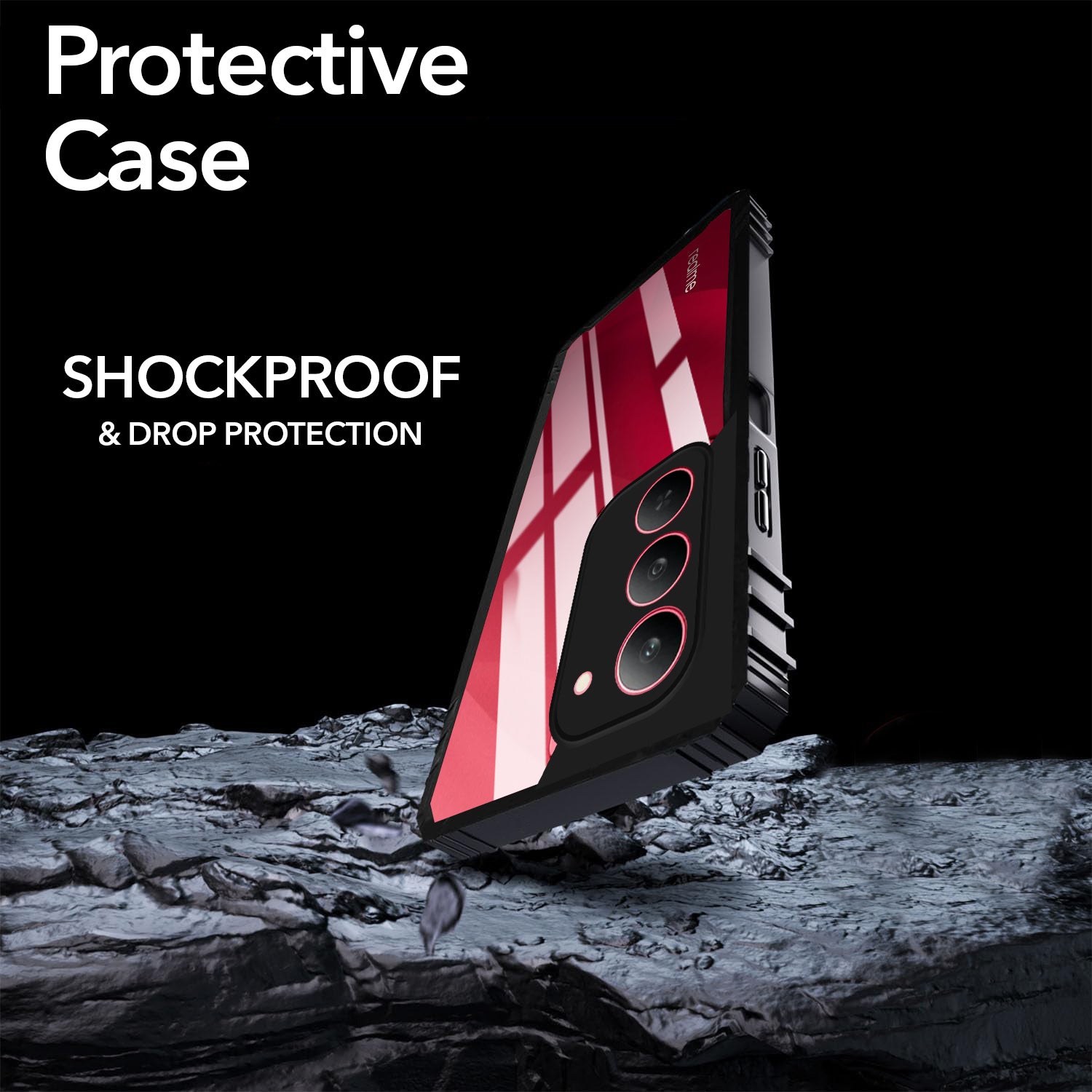 For Realme 14X Back Cover Case (Ultimate Shockproof Bumpers | Anti Yellow | Rugged Armor | Hybrid PC | Black )
