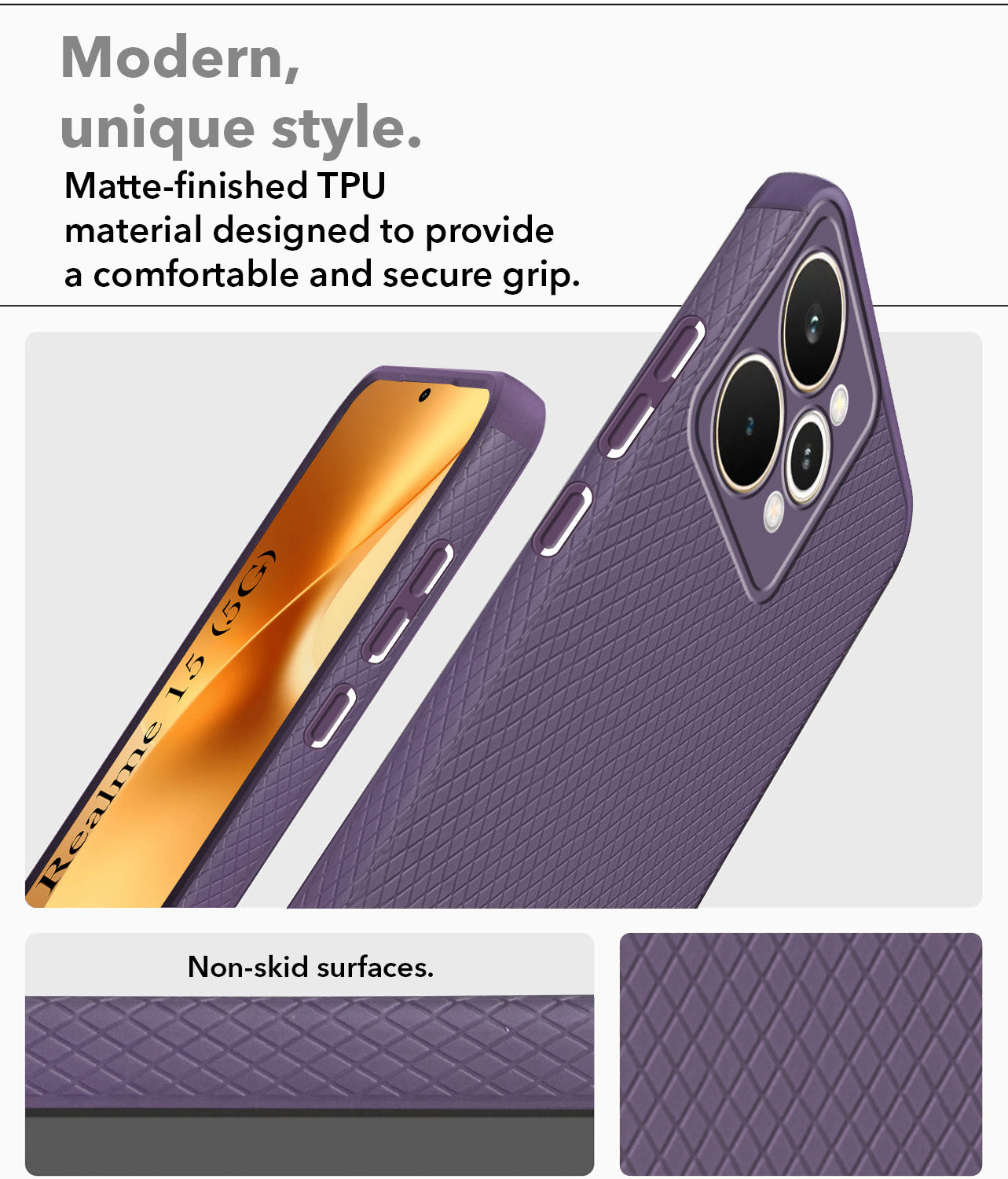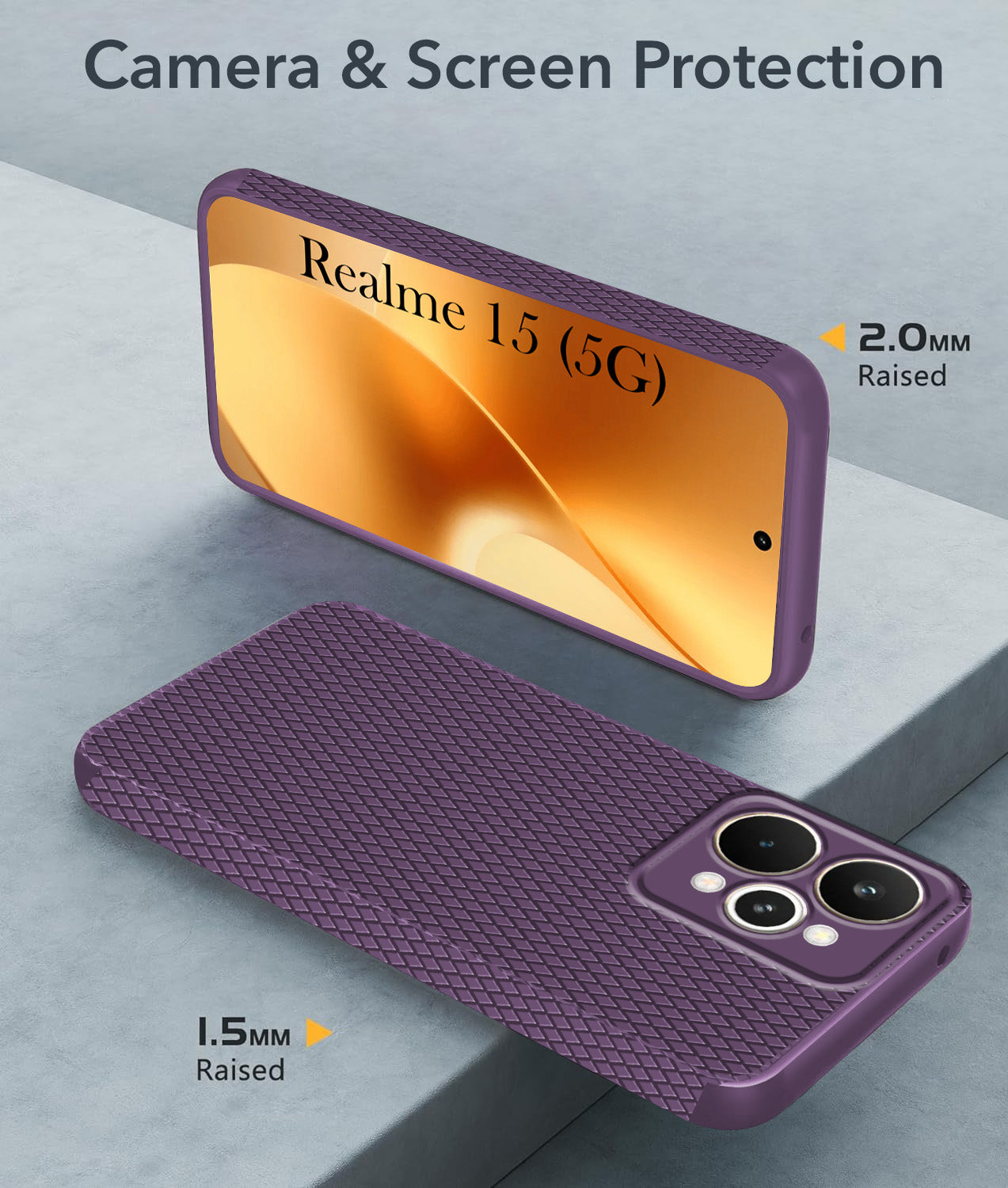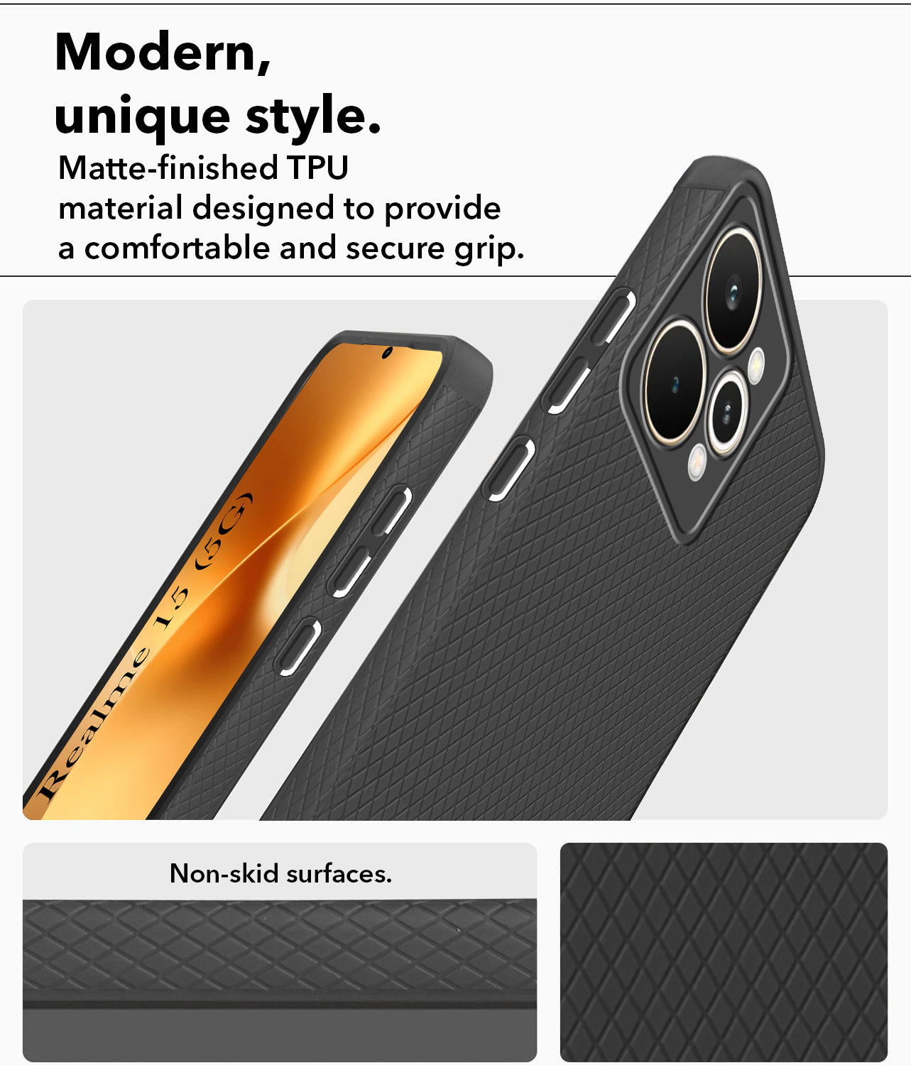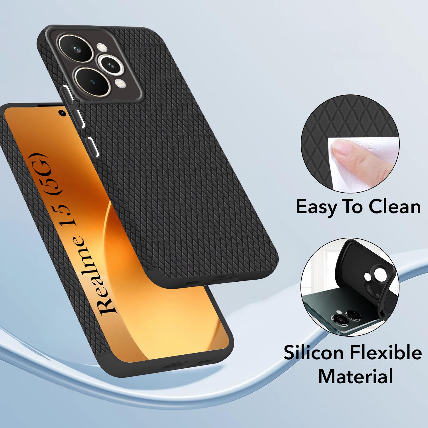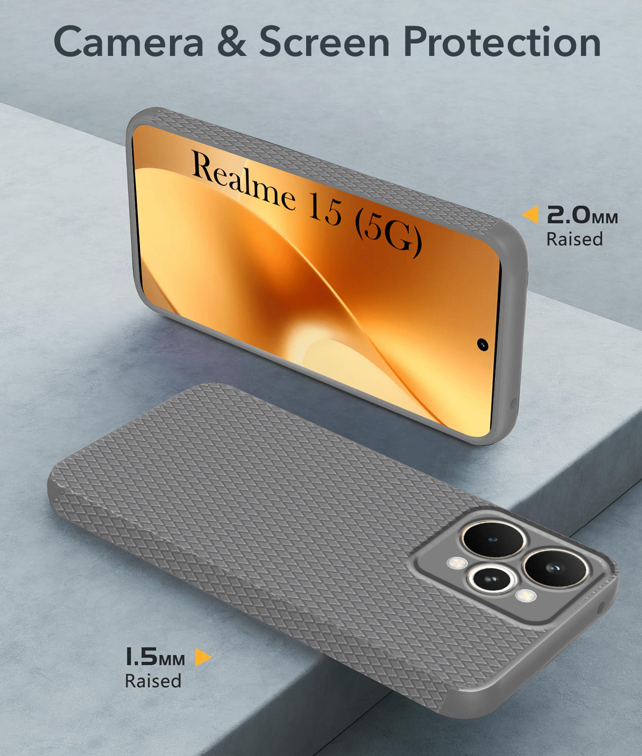 For Realme 15 Back Cover Case (Camera Protection | Side Grip Texture | Soft and Flexible)