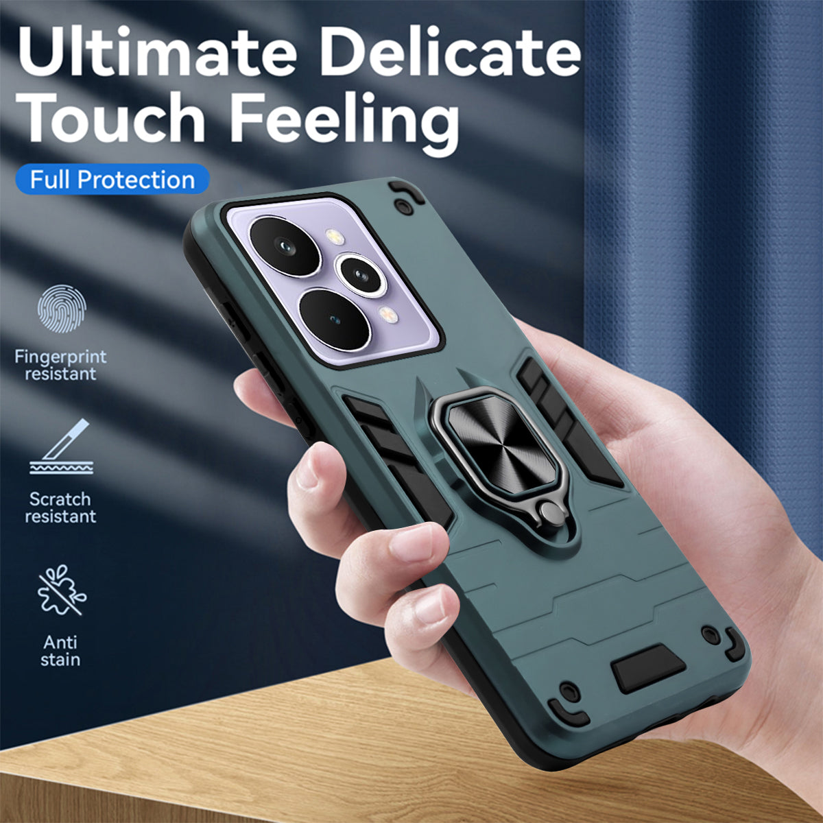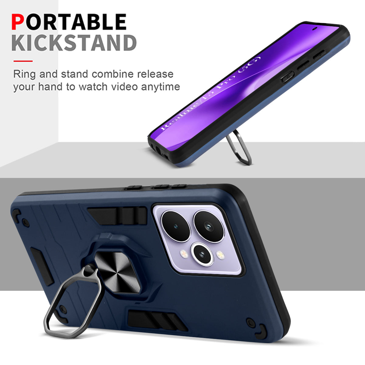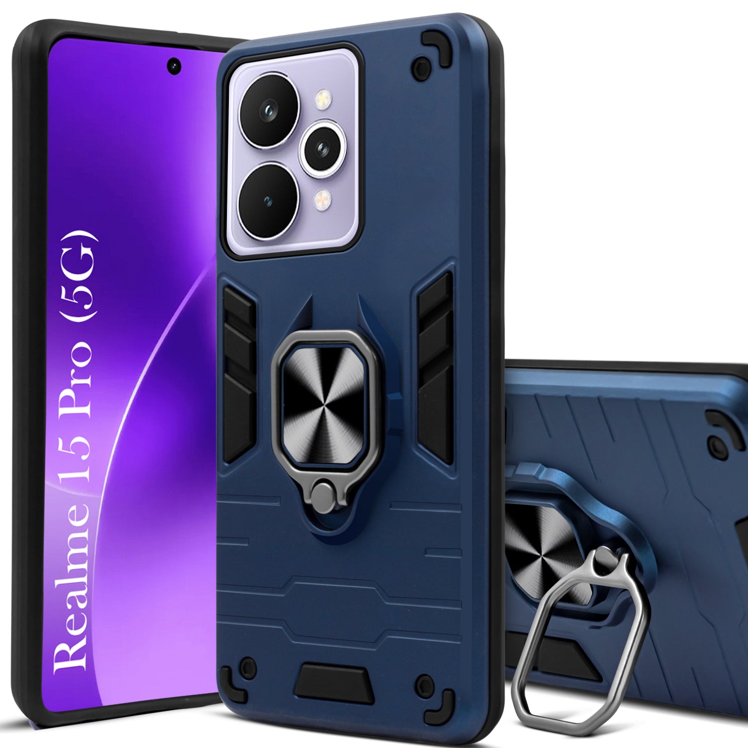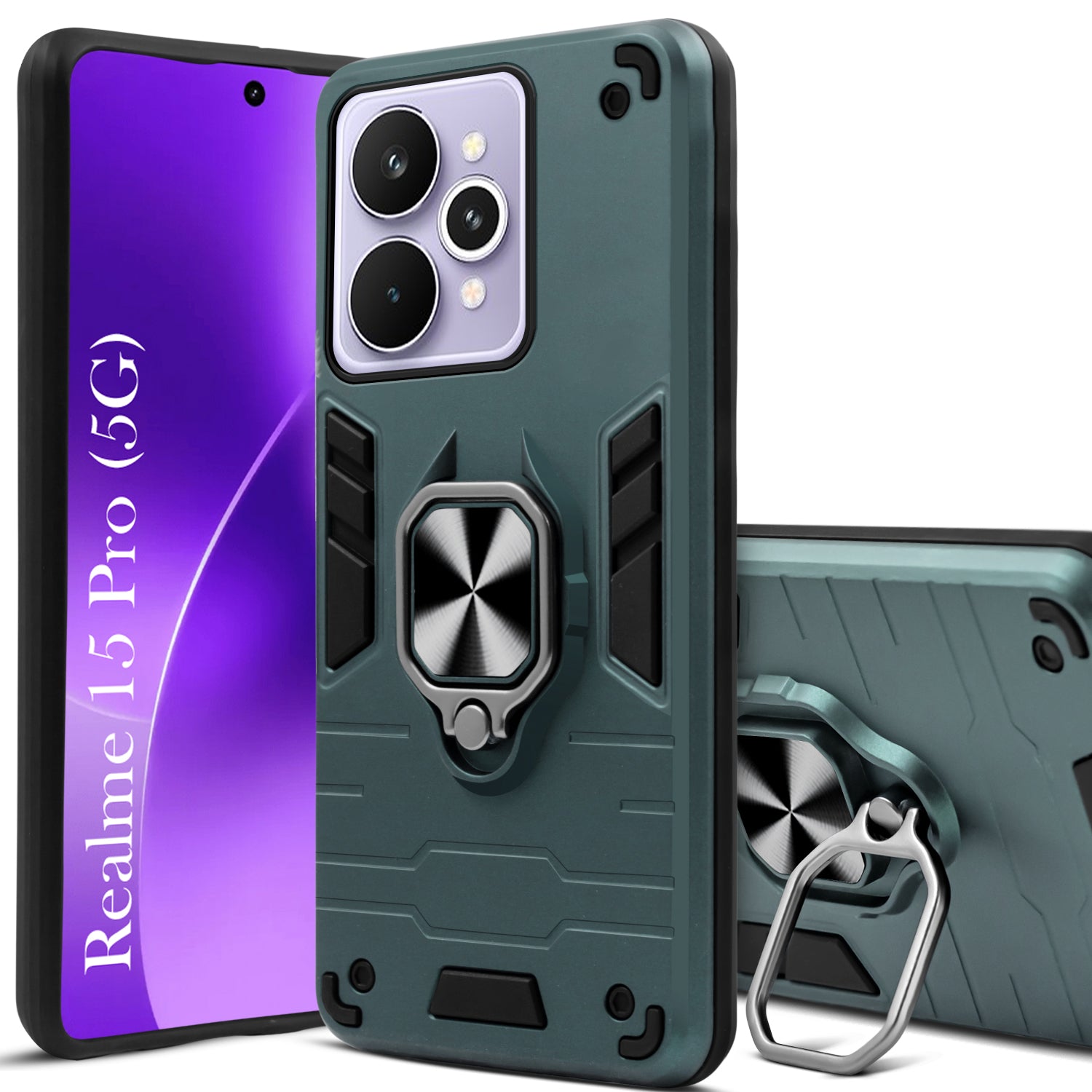 For Realme 15 Pro Back Cover Case Hybrid Armor (Shockproof Dual Layer Polycarbonate |Ring Holder Kickstand)