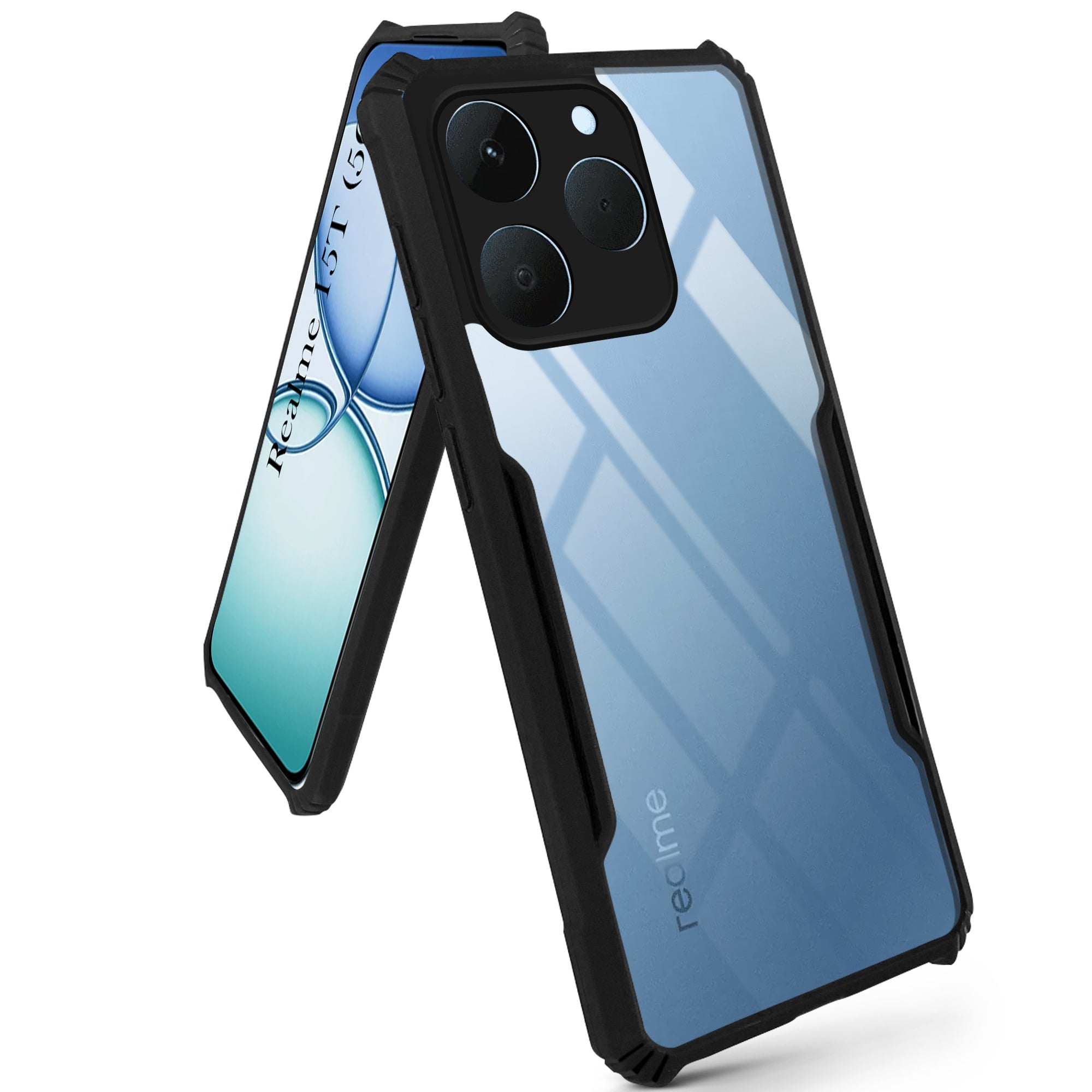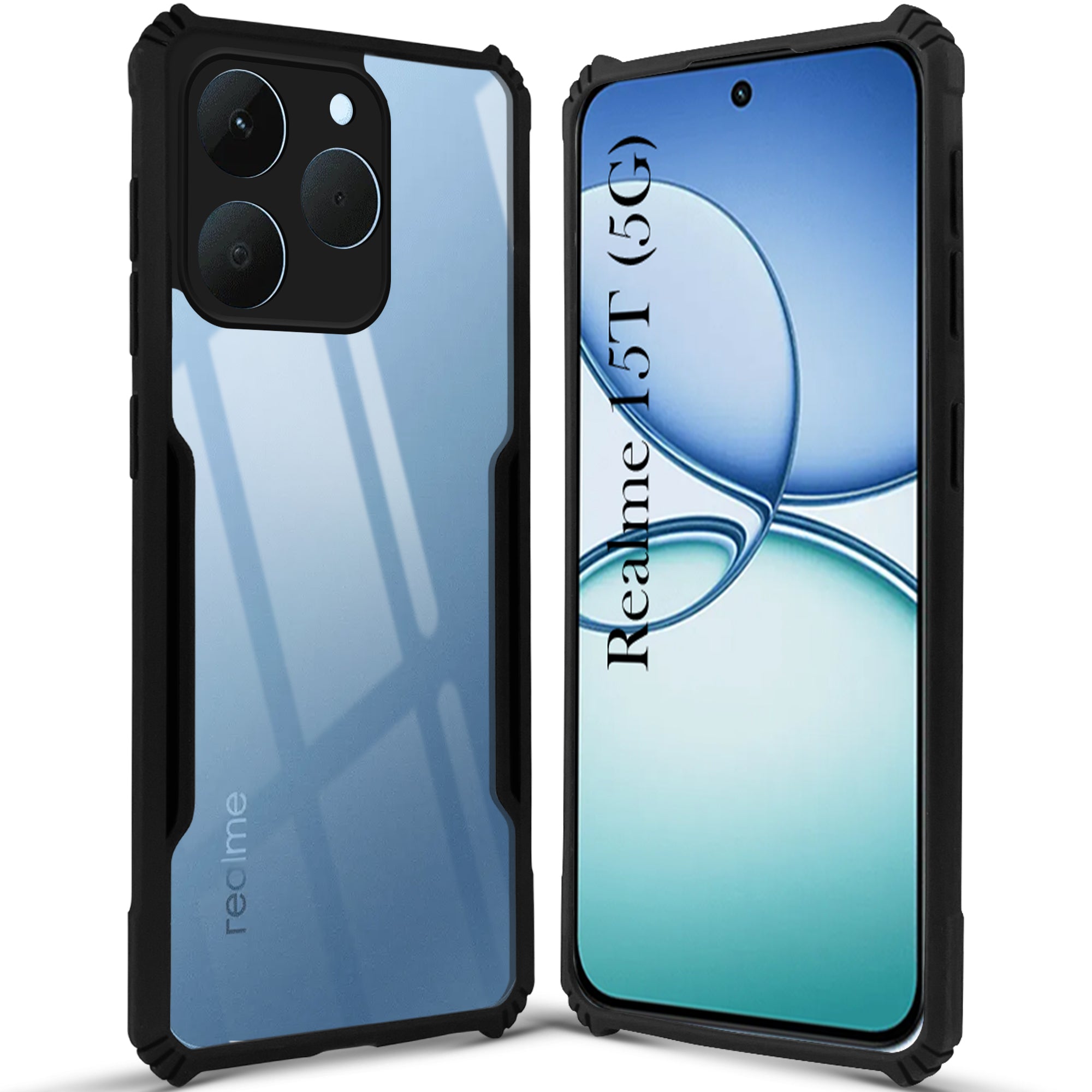 For Realme 15T Back Case Cover (Shockproof with Polycarbonate Clear Panel | Professional Black)