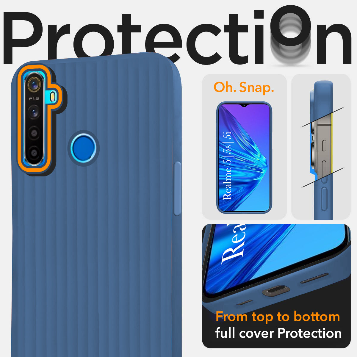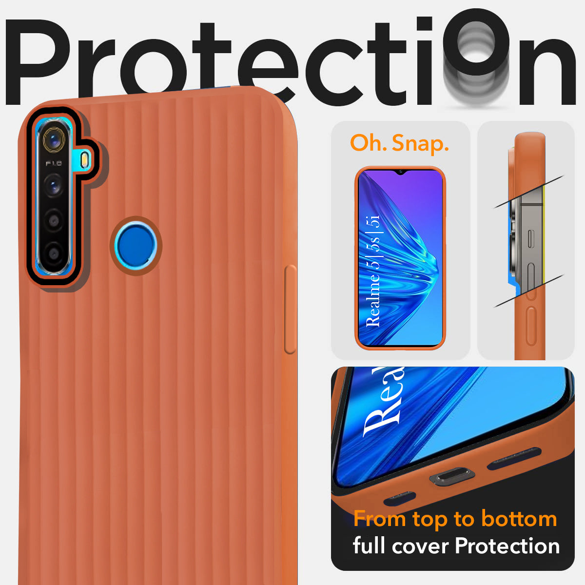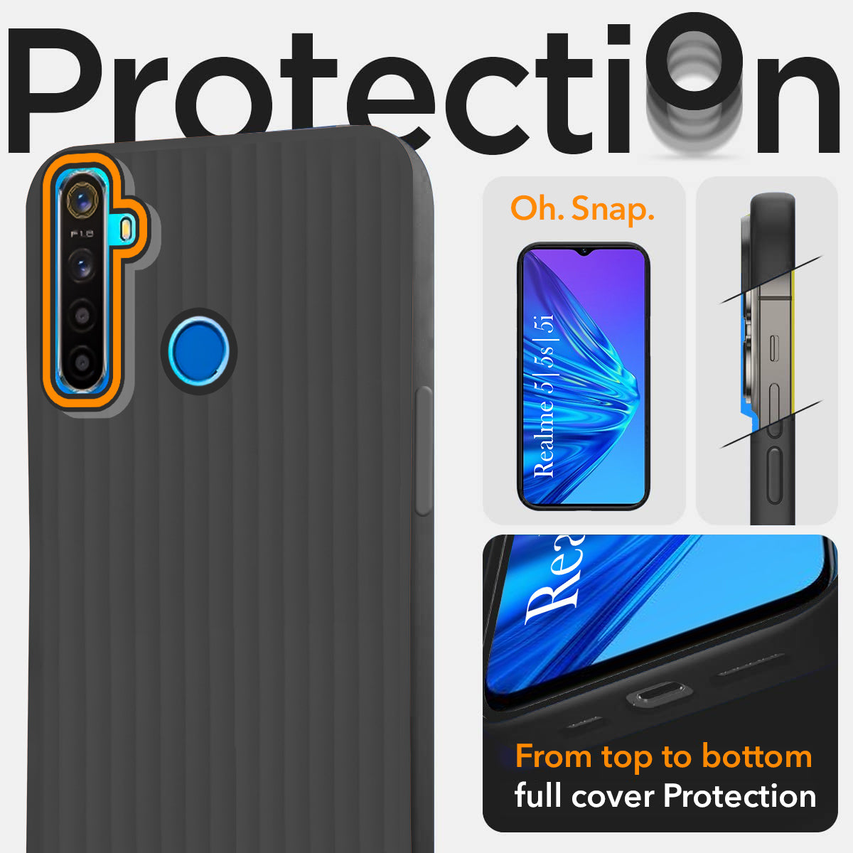 For Realme 5 | 5s | 5i Back Cover Case (Minimalist Professional Look | Inside Fiber Cloth | Camera Protection Bump | Line Texture)