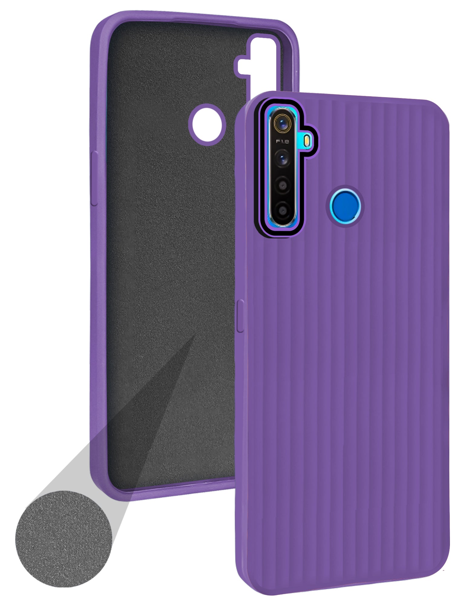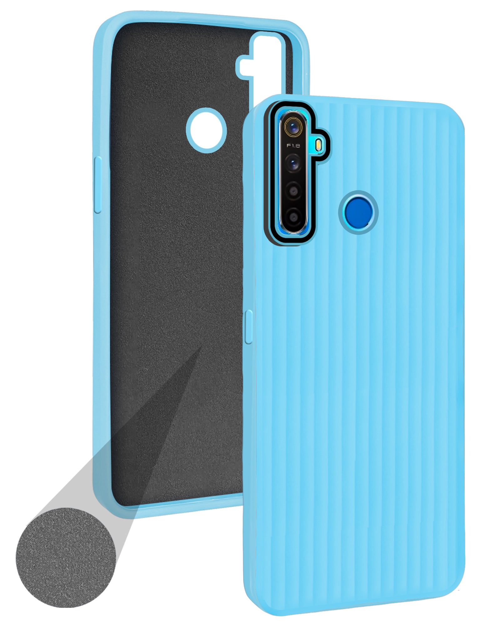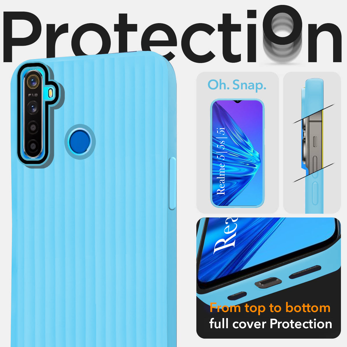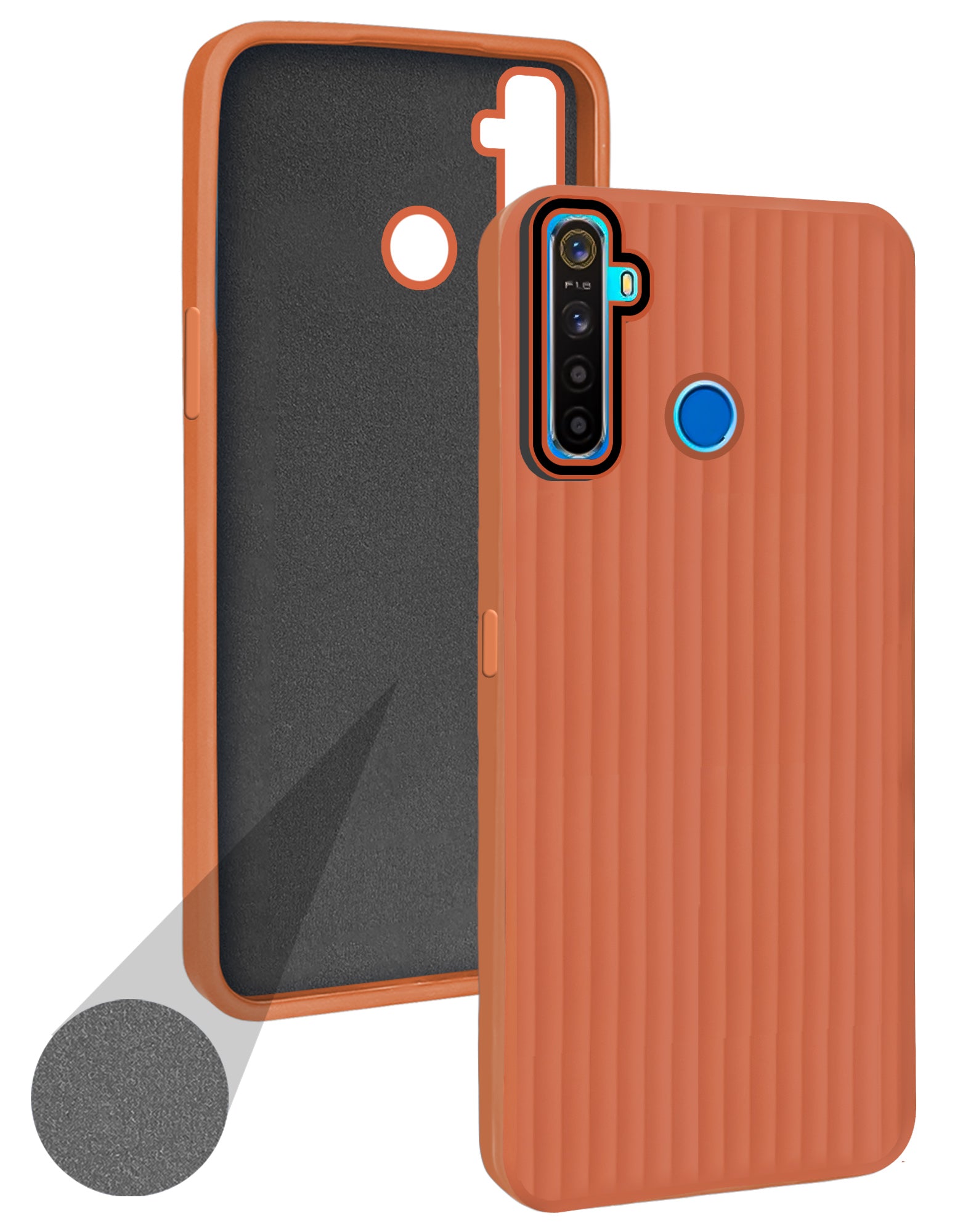 For Realme 5 | 5s | 5i Back Cover Case (Minimalist Professional Look | Inside Fiber Cloth | Camera Protection Bump | Line Texture)