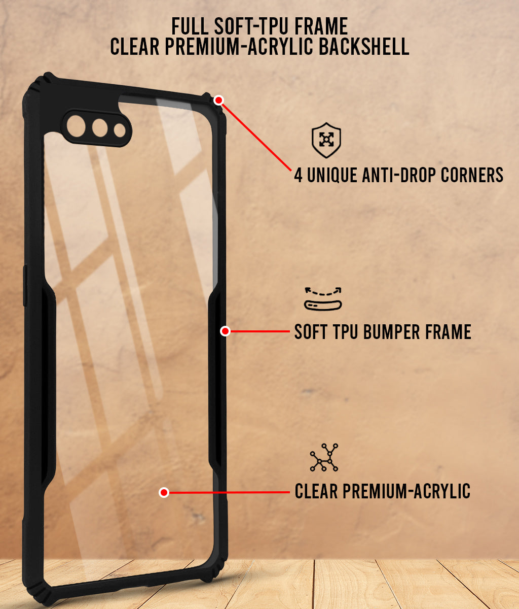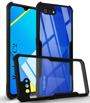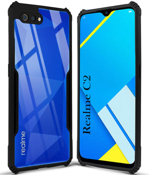 For Realme C2 Back Cover Case ( Shockproof with Polycarbonate Clear Panel | Professional Black)