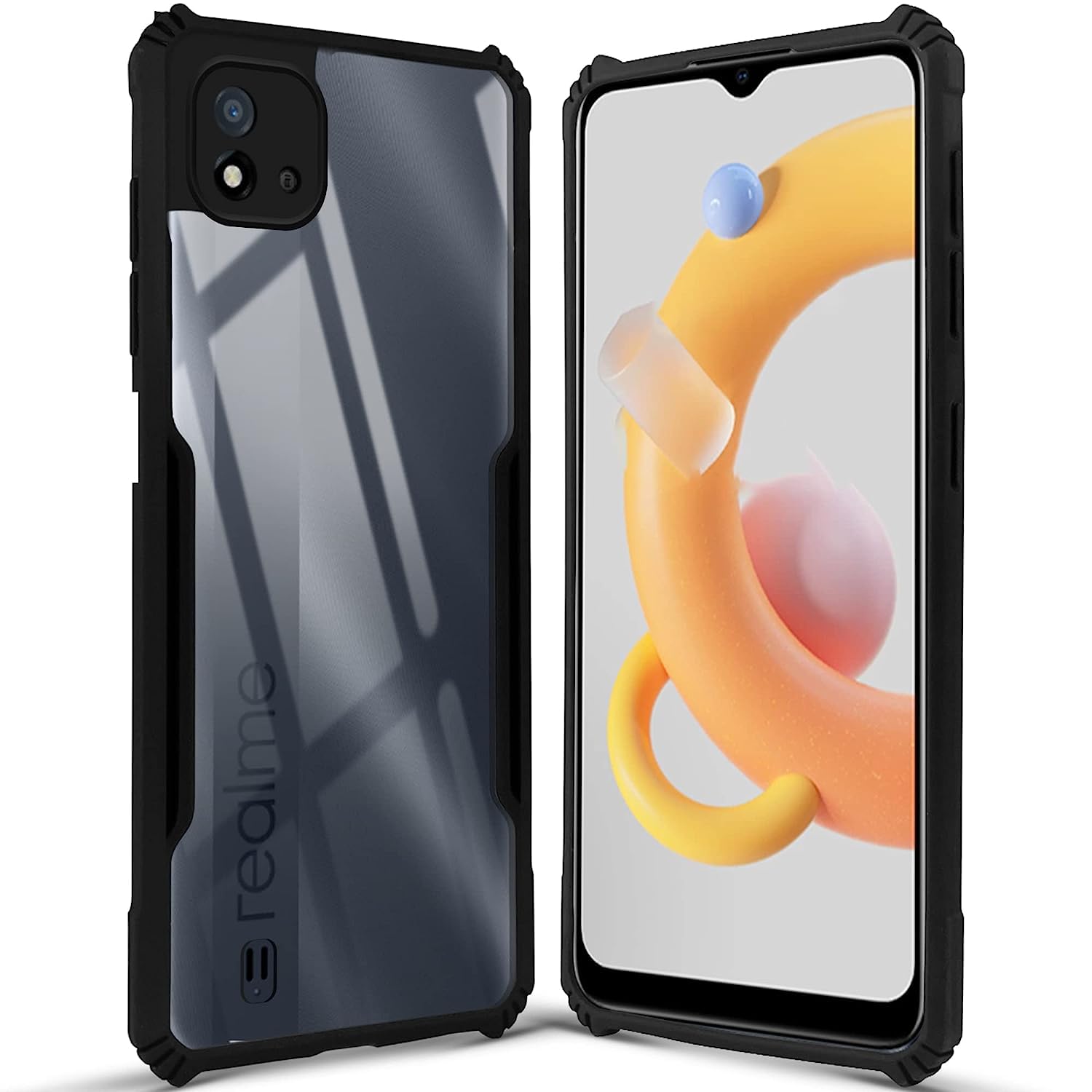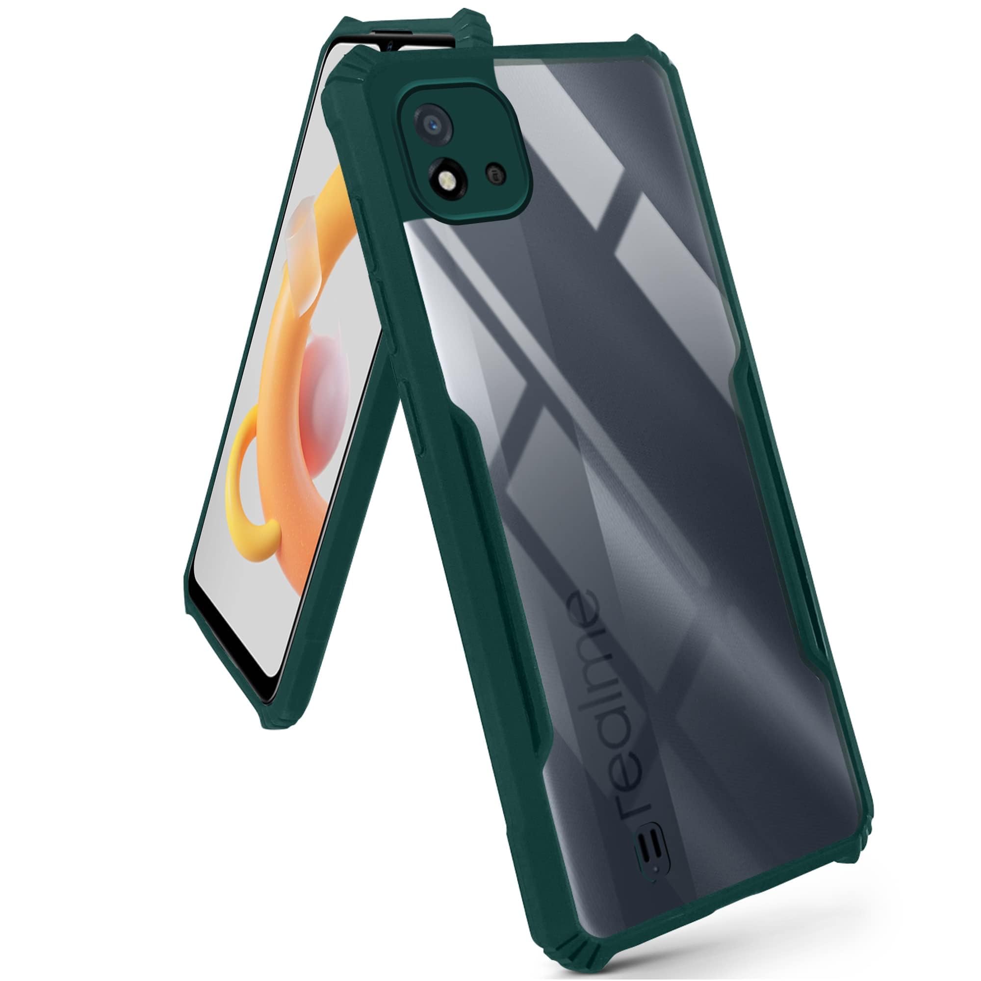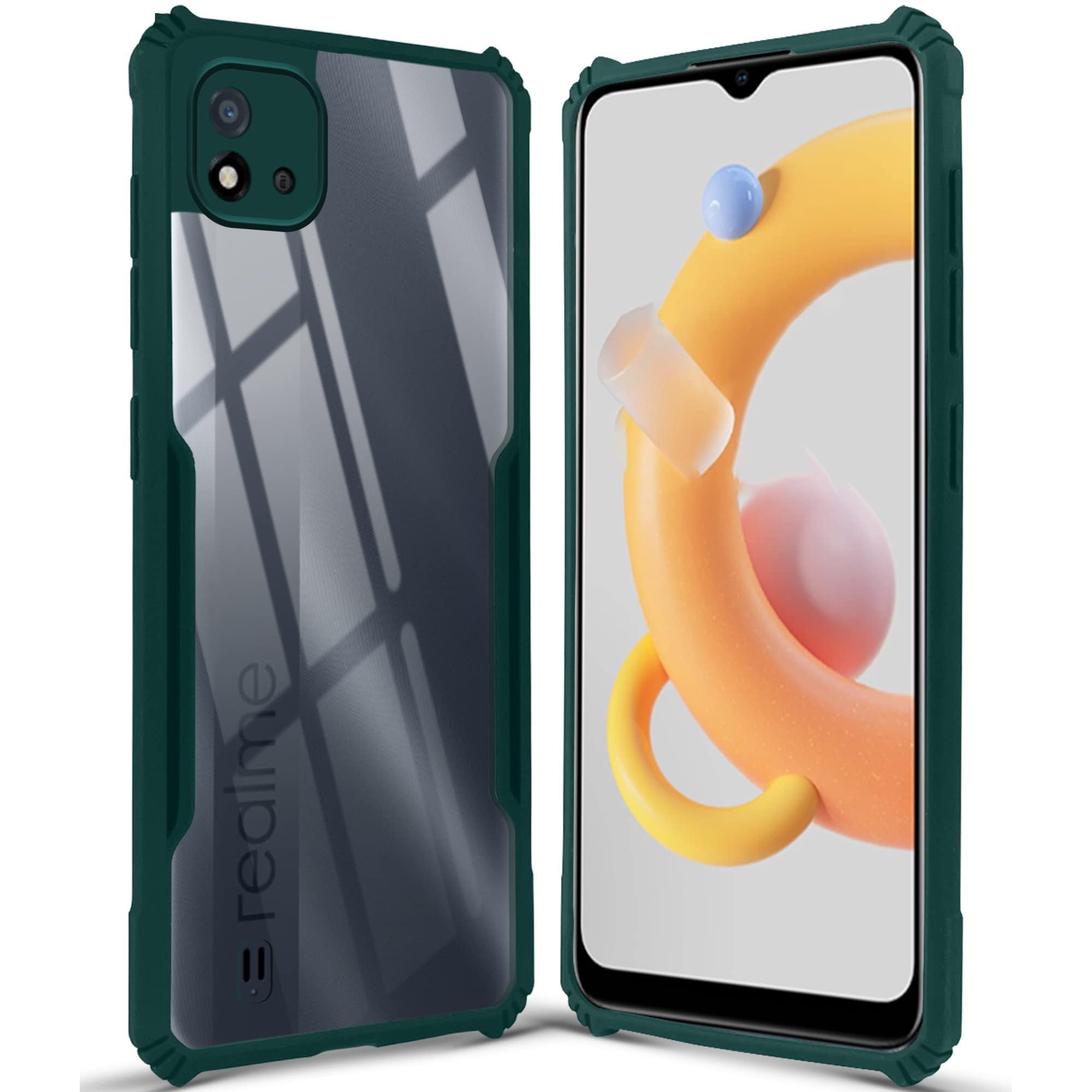 For Realme C20 | Realme C20A Back Cover Case (Crystal Glass Back | Camera Protection | Shockproof Bumpers)