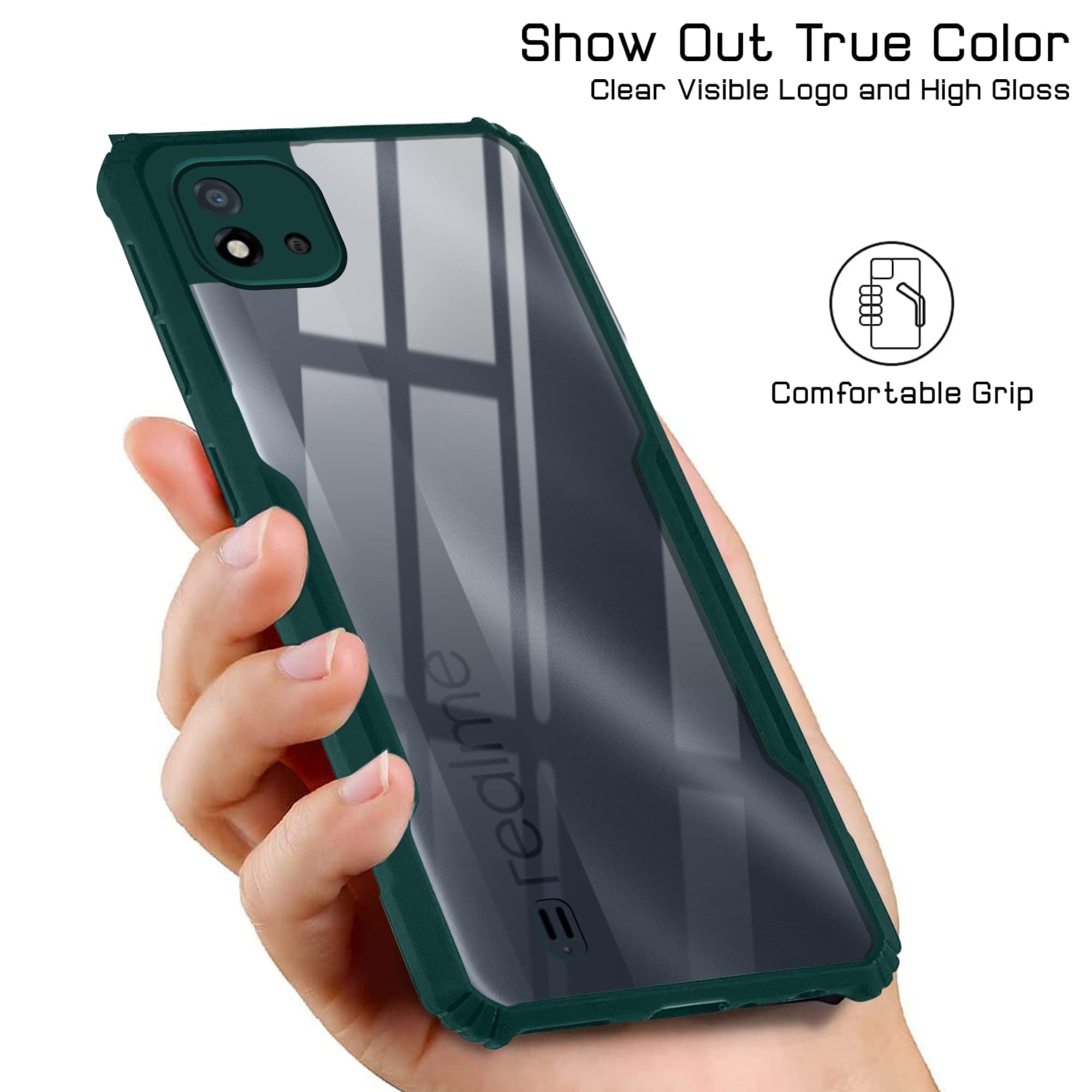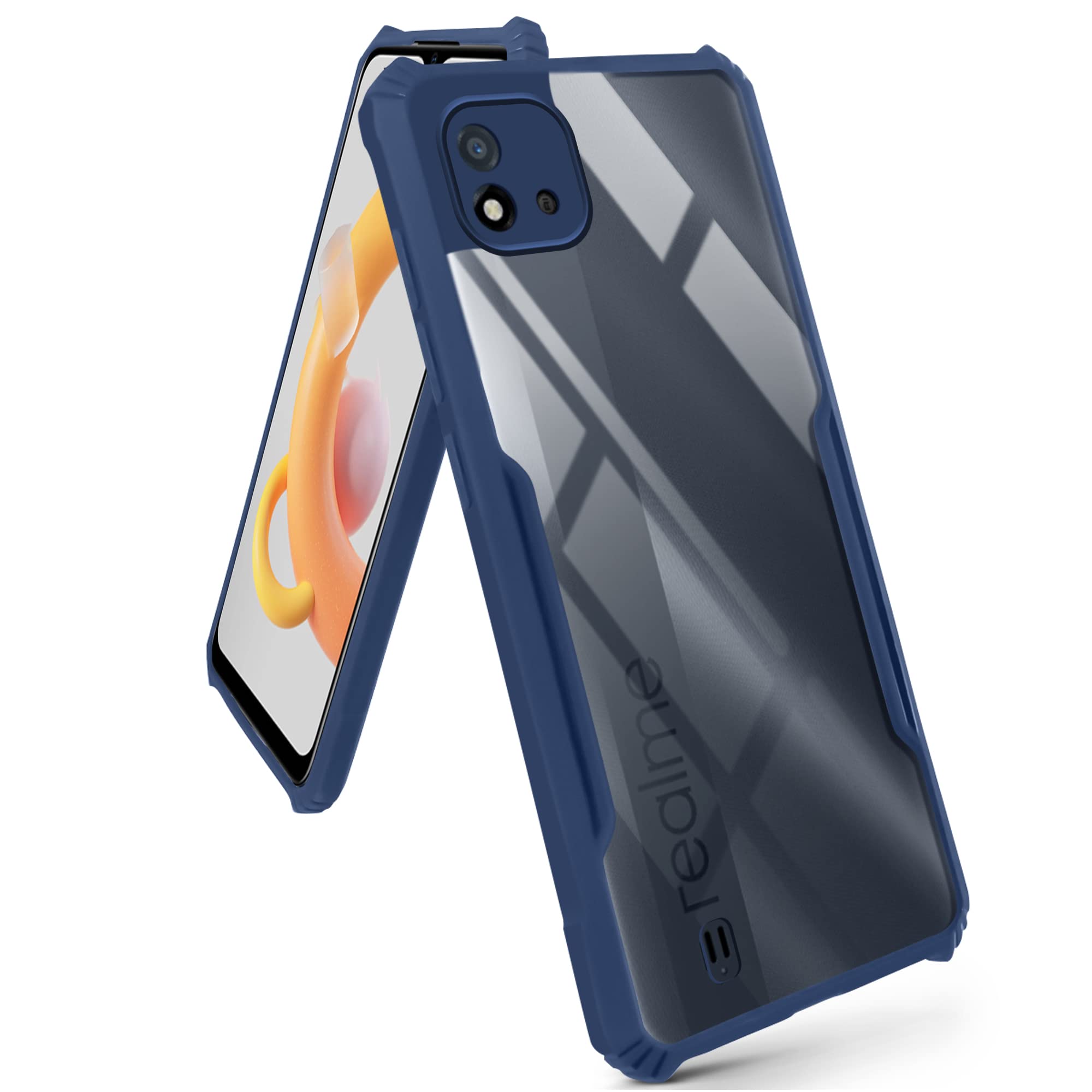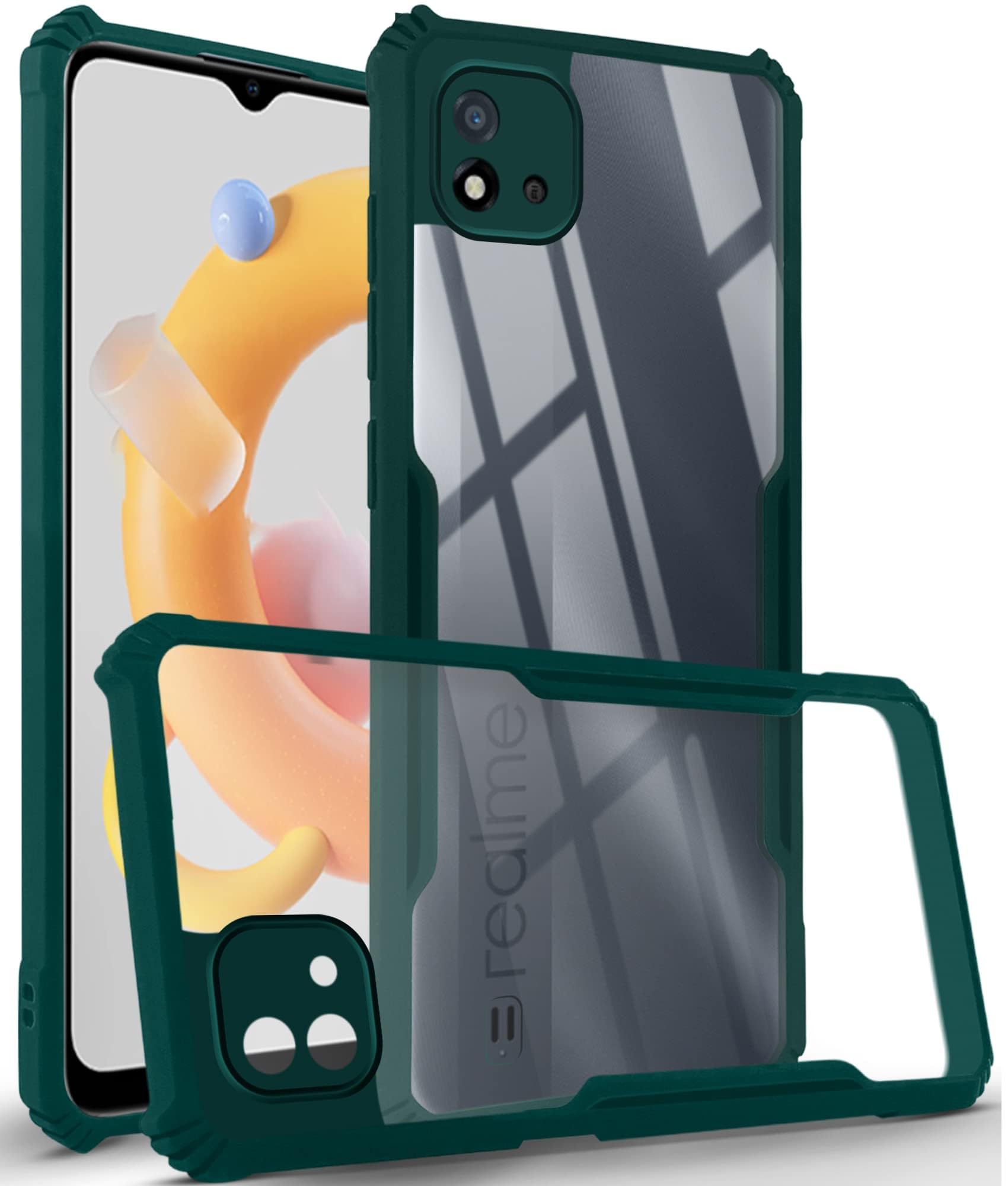 For Realme C20 | Realme C20A Back Cover Case (Crystal Glass Back | Camera Protection | Shockproof Bumpers)