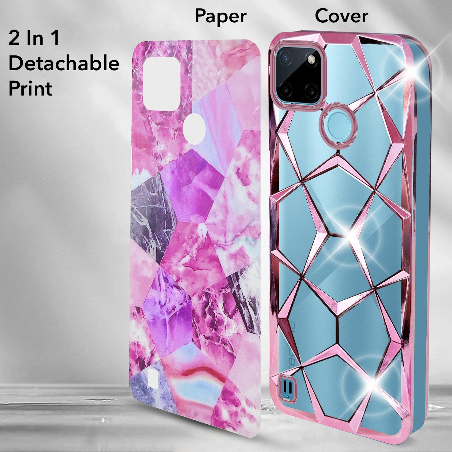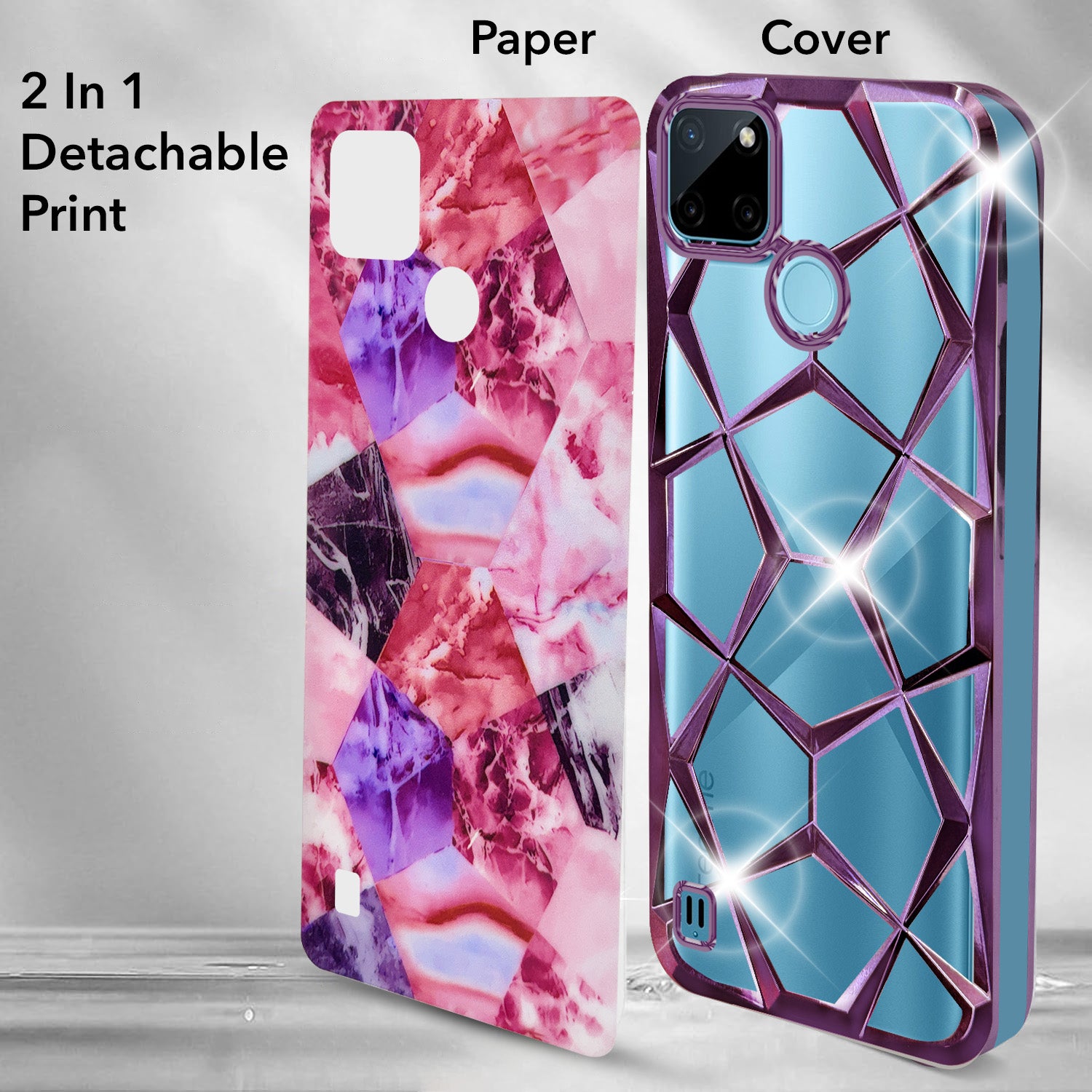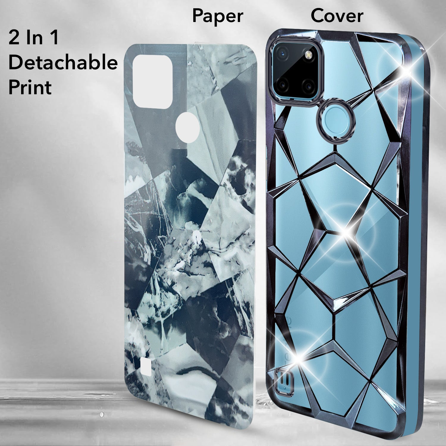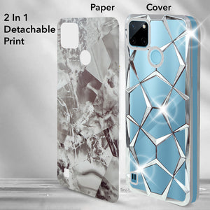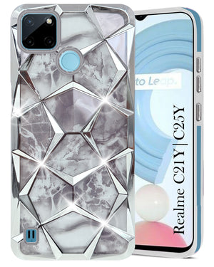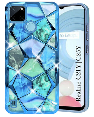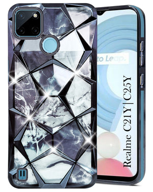 For Realme C21Y | C25Y Back Cover Case ( Dual Design Glitter Sparkle and Detachable Diamond Print Case | Soft and Flexible)