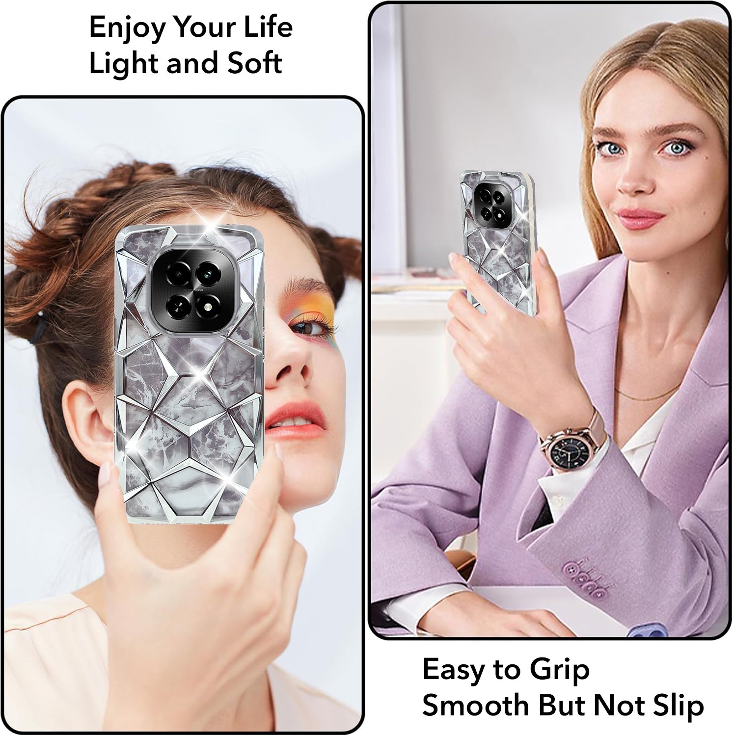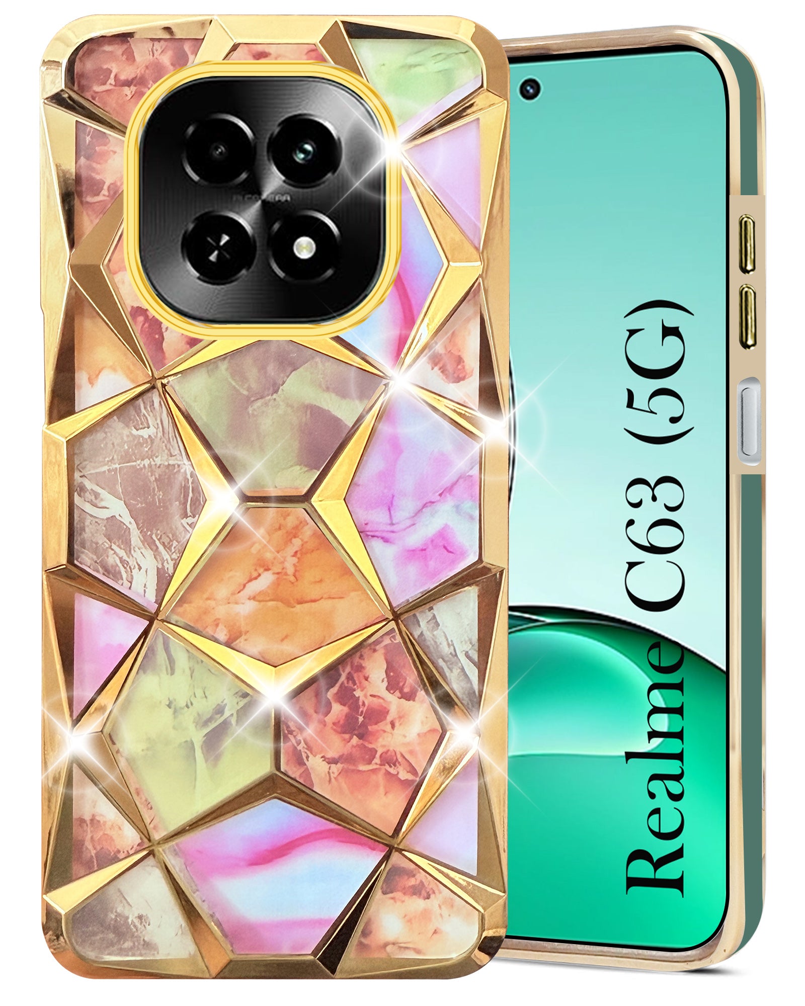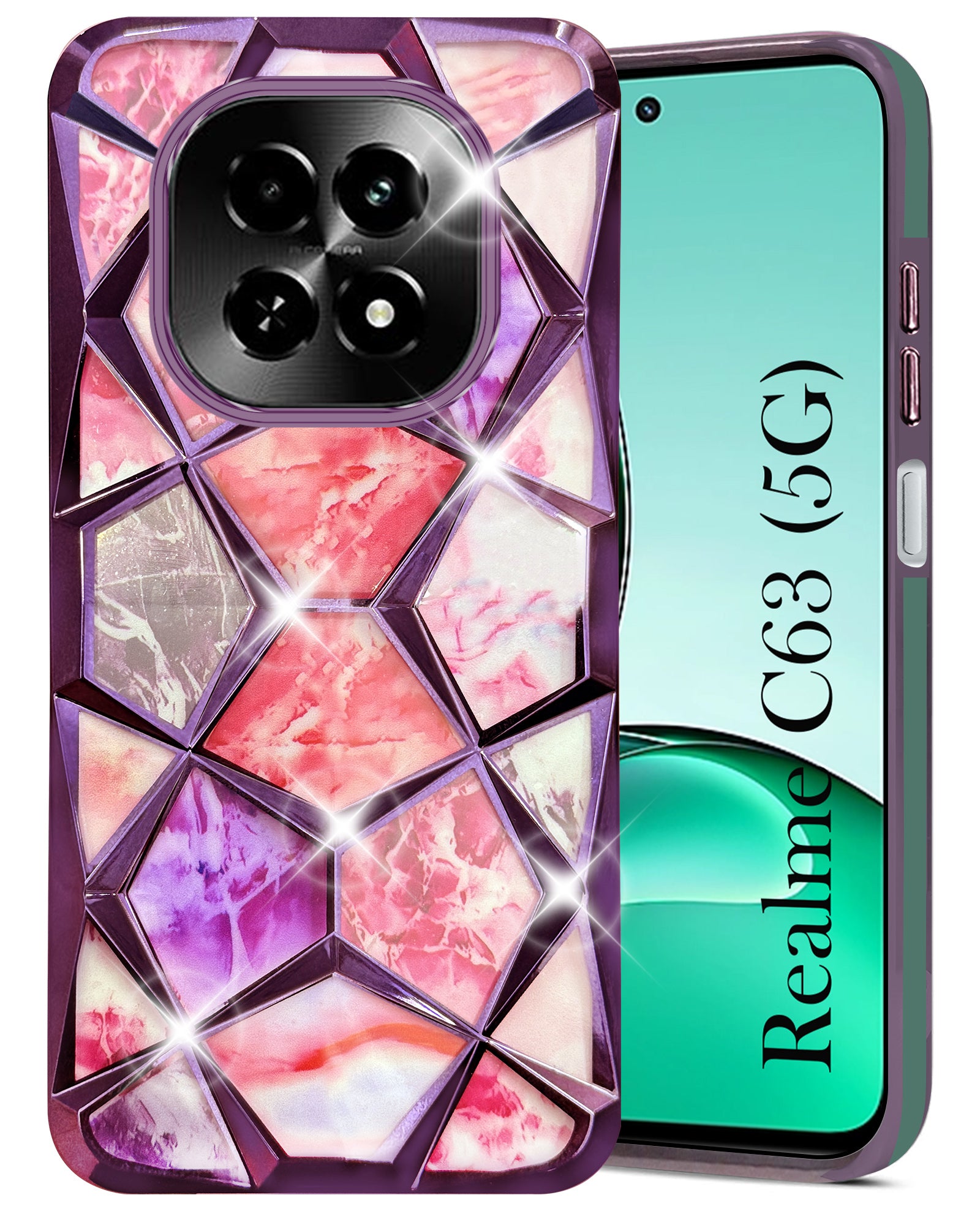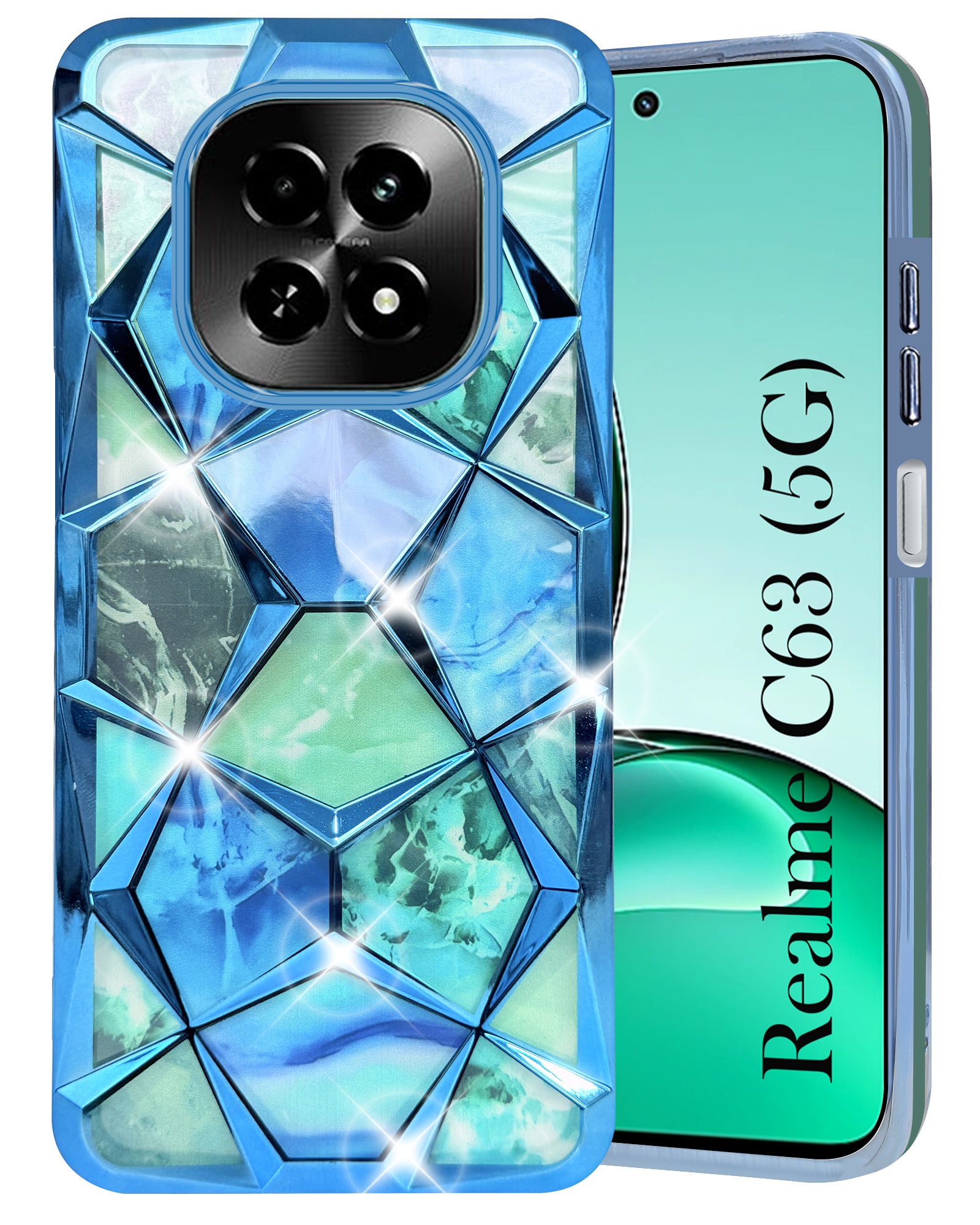 For Realme C63 5G Back Cover Case (Dual Design Glitter Sparkle and Detachable Diamond Print Case | Soft and Flexible)