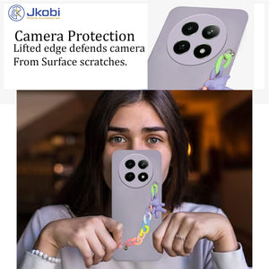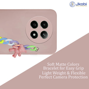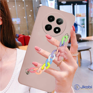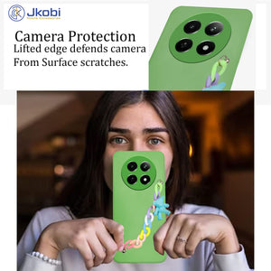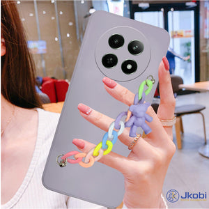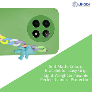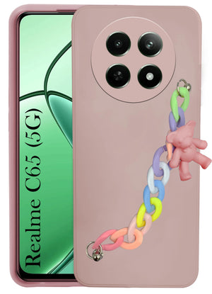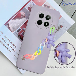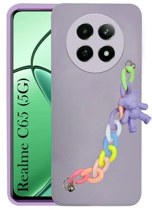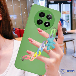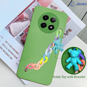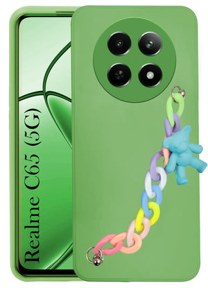 For Realme C65 5G Back Cover Girls Case with Bracelet (Wrist Hanging Chain | Teddy Toy Cartoon | Matte Green)