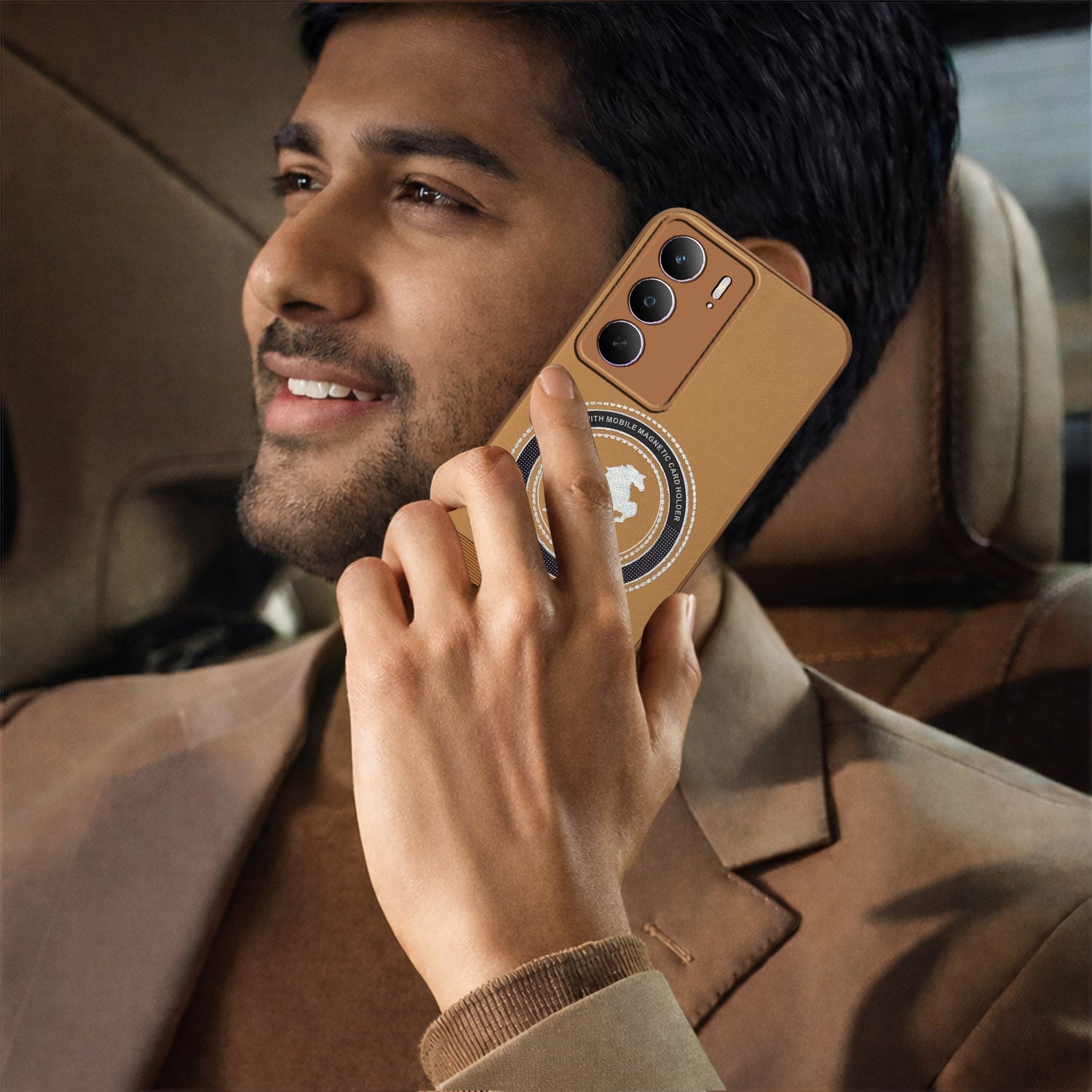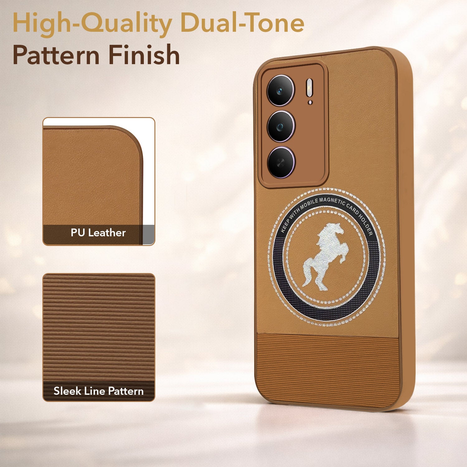 For Realme C75 5G Back Cover Case PU Leather Finish (Professional Minimalist Texture | MagSafe Compatile | Camera Protection | Sleek Sober Formal)