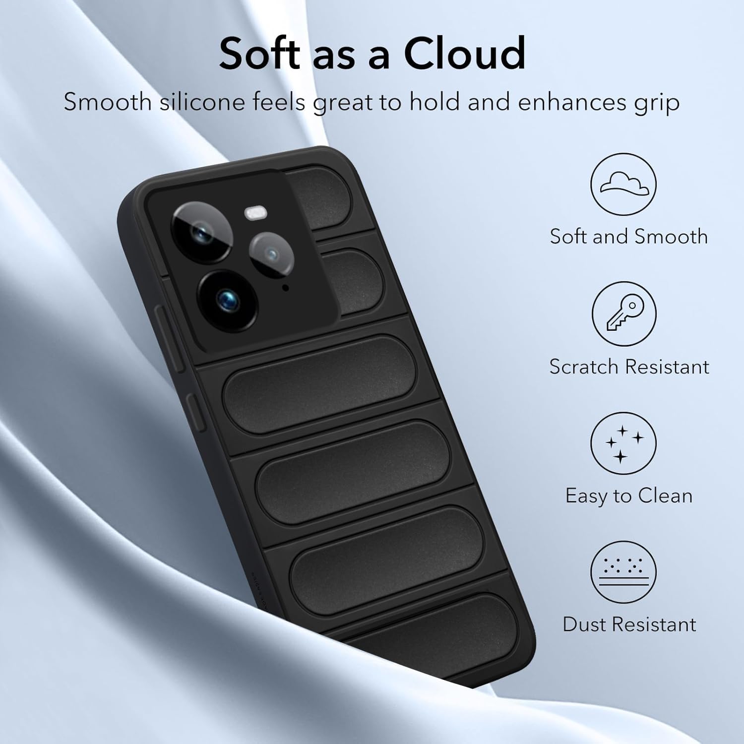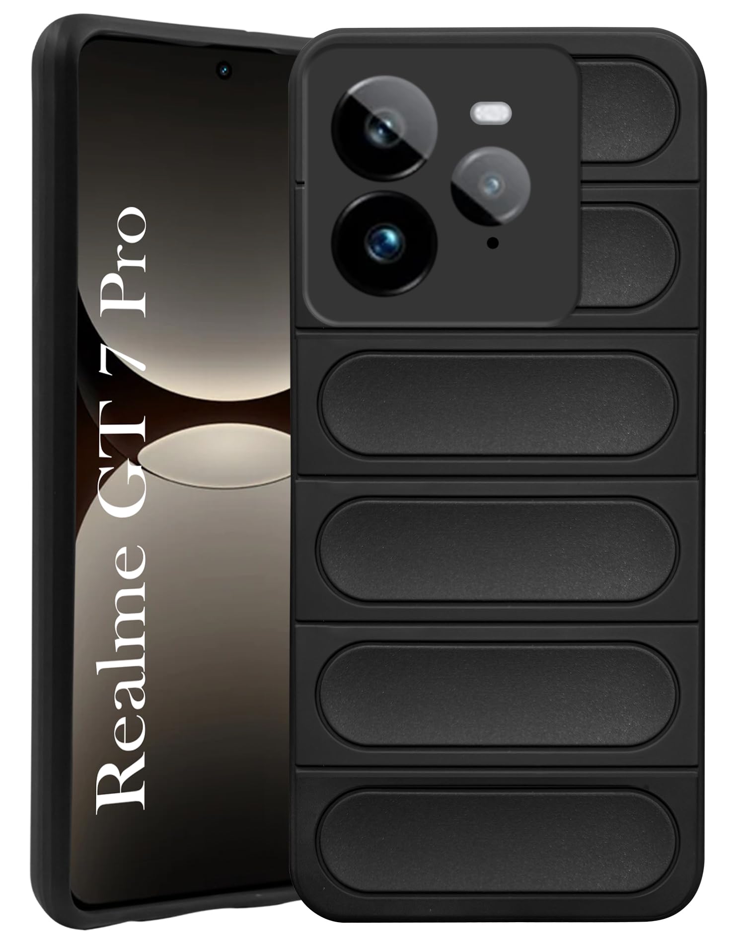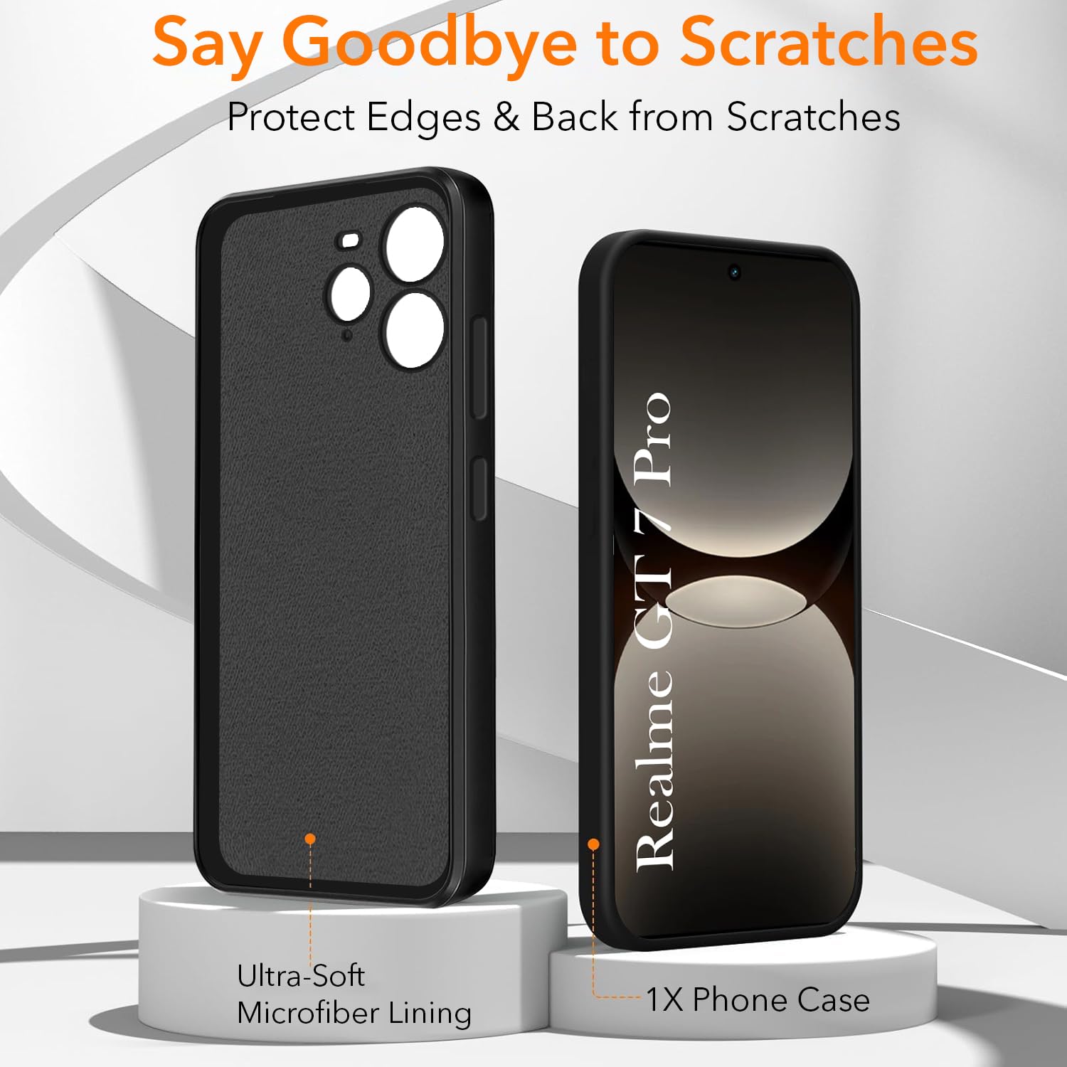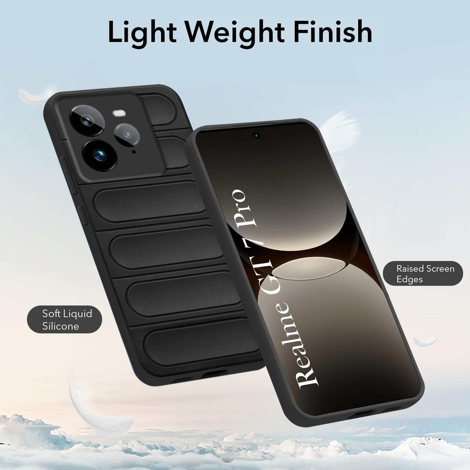 For Realme GT 7 Pro Back Cover Case (Matte Liquid Silicone | Professional Micro-Fiber Cloth Inside | Camera Protection Ring | Wave Black)