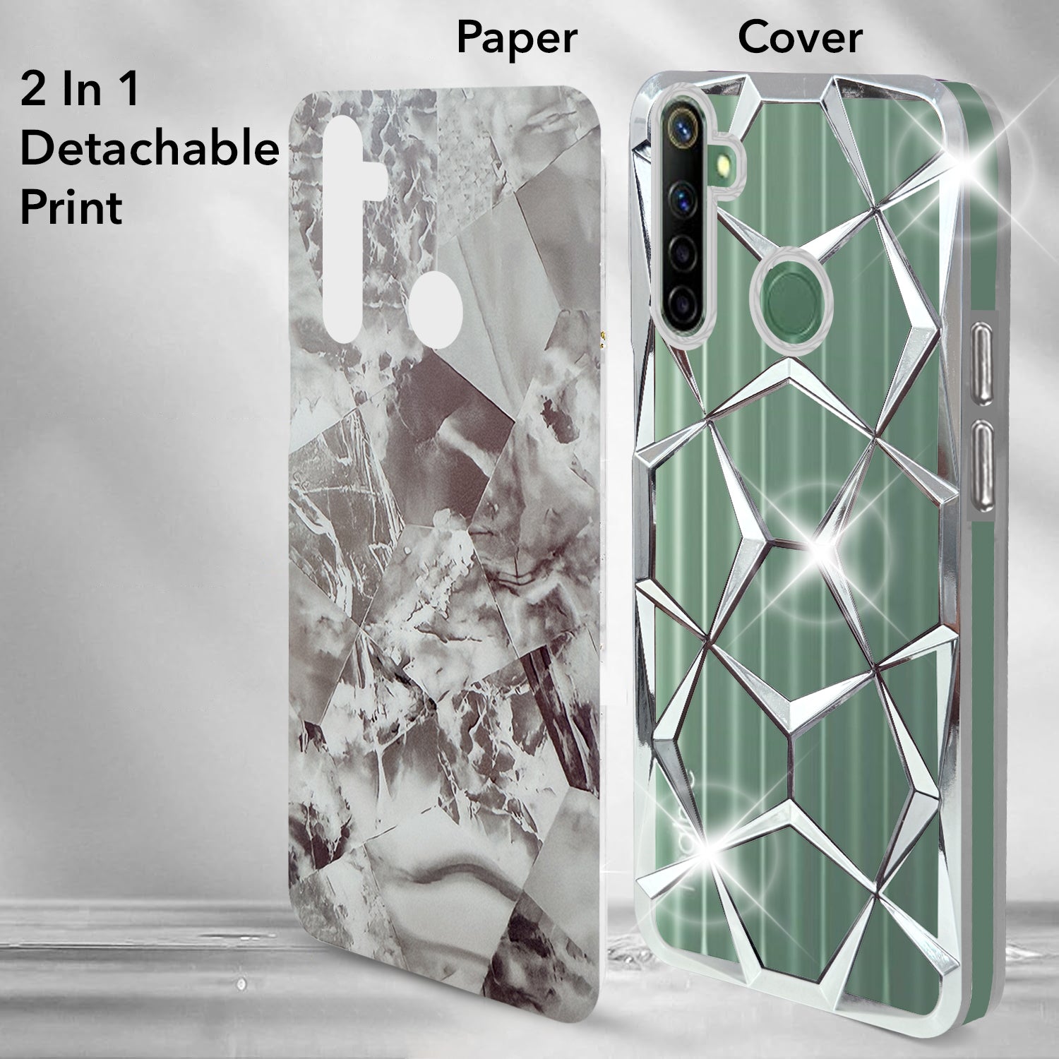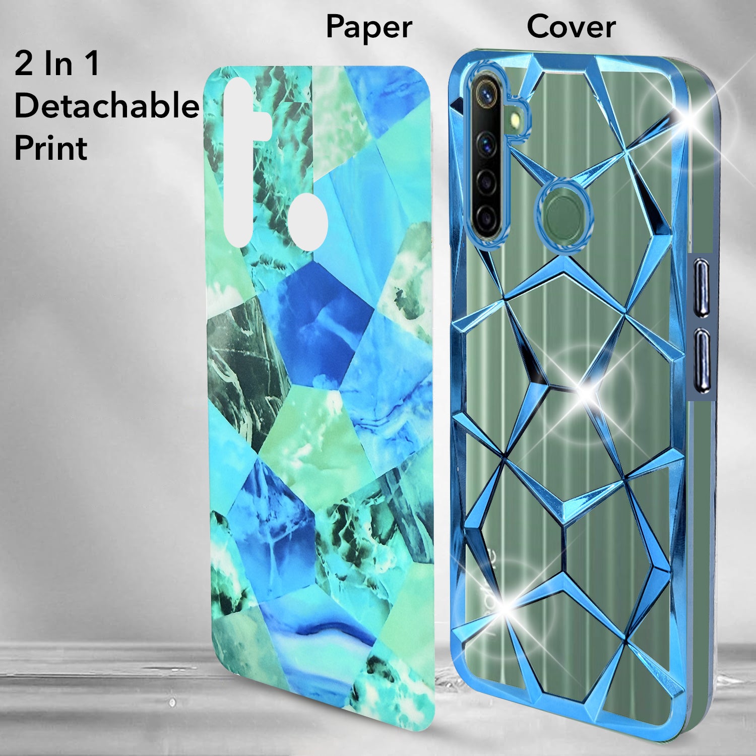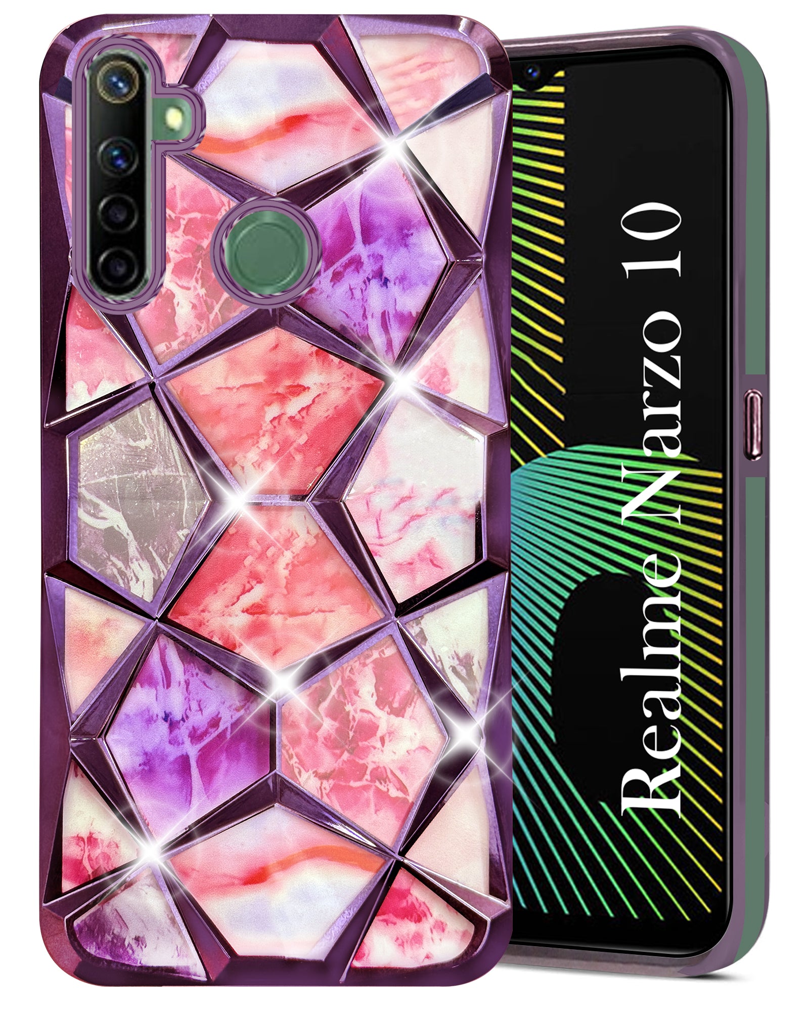 For Realme Narzo 10 Back Cover Case (Dual Design Glitter Sparkle and Detachable Diamond Print Case | Soft and Flexible)