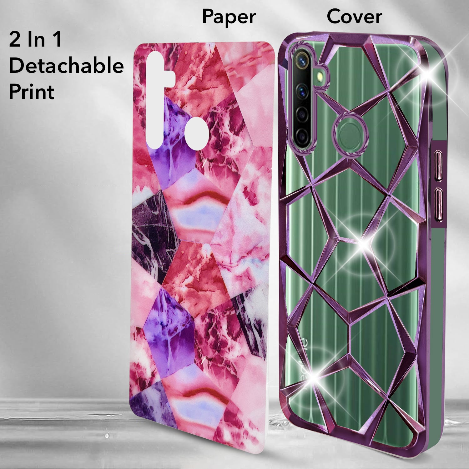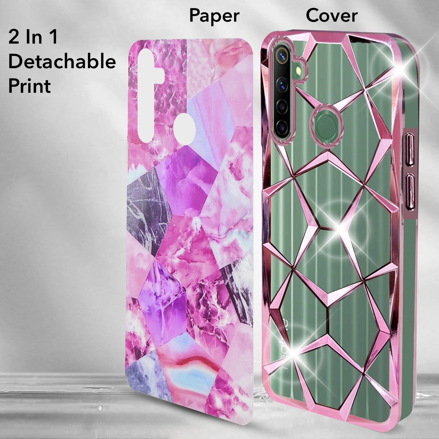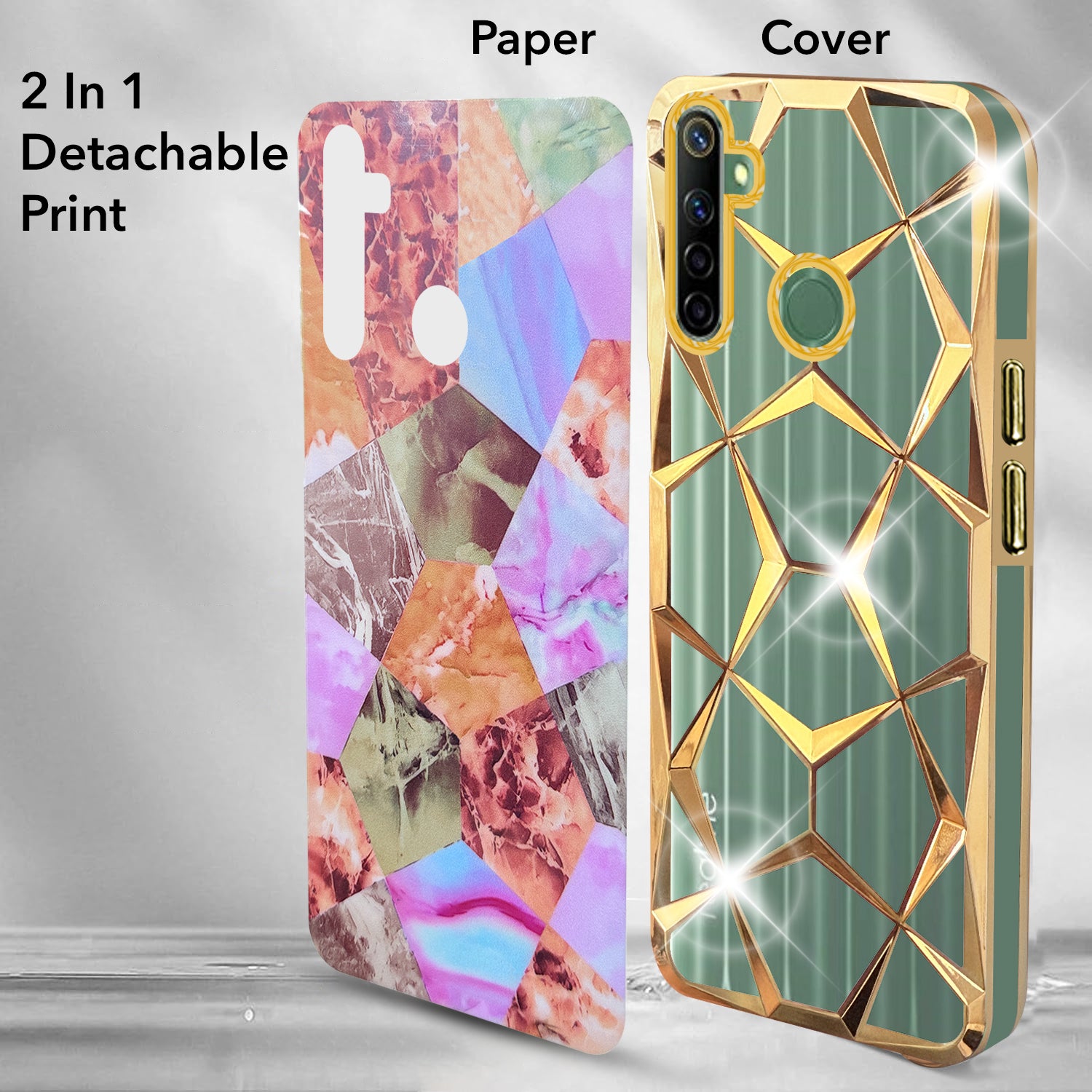 For Realme Narzo 10 Back Cover Case (Dual Design Glitter Sparkle and Detachable Diamond Print Case | Soft and Flexible)