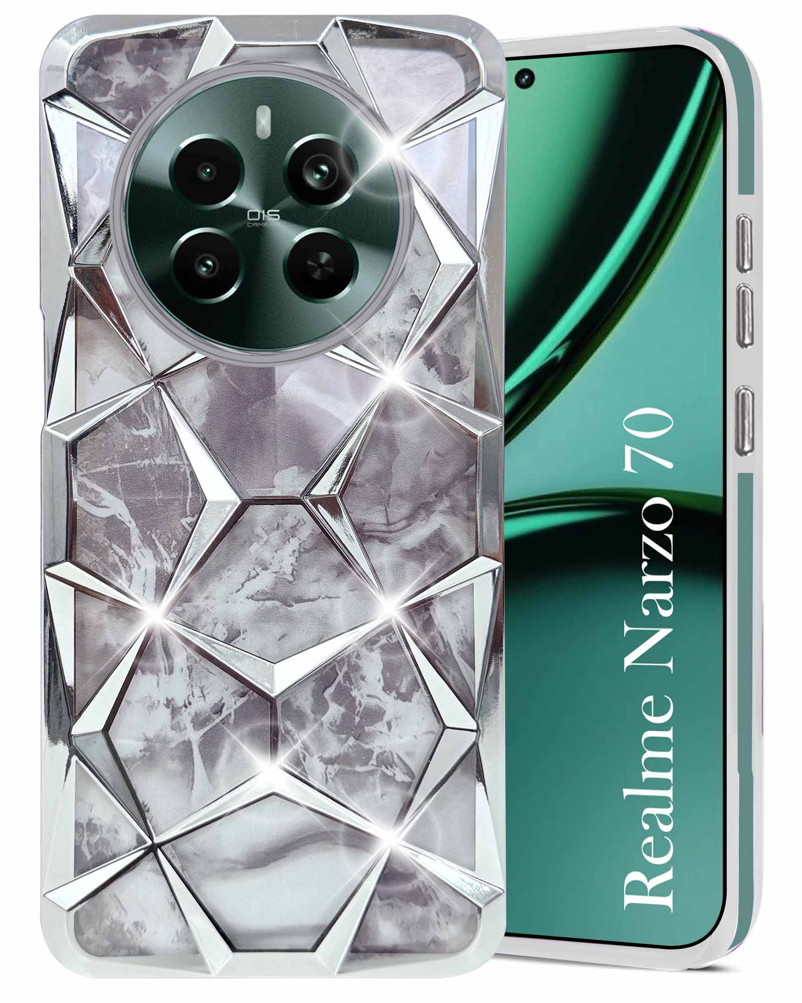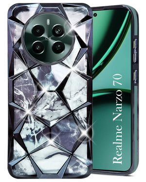 For Realme Narzo 70 5G Back Cover Case ( Dual Design Glitter Sparkle and Detachable Diamond Print Case | Soft and Flexible)