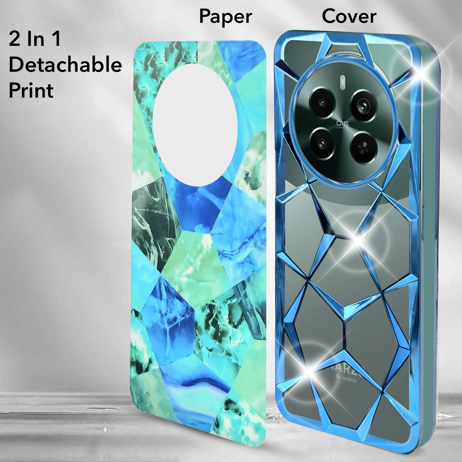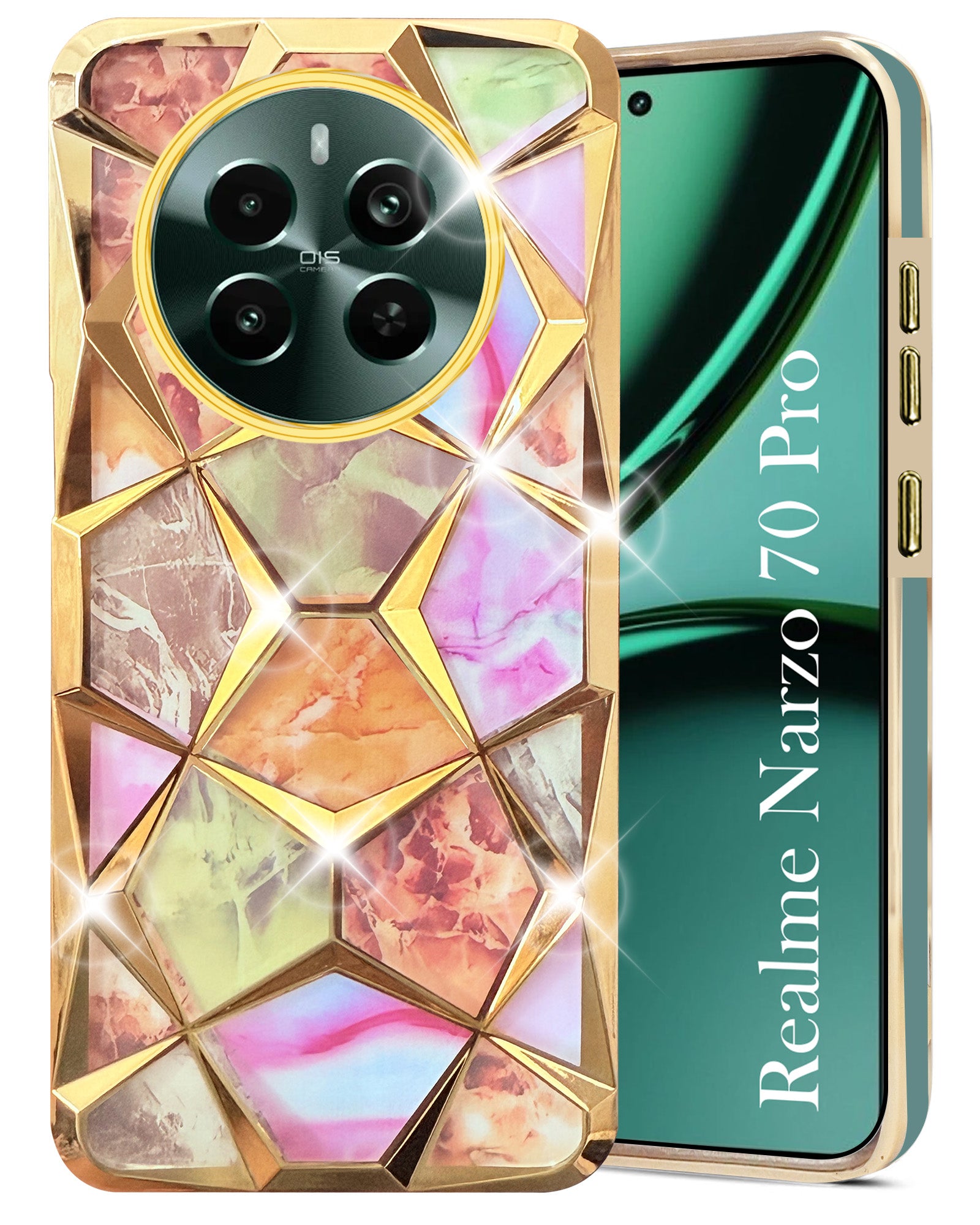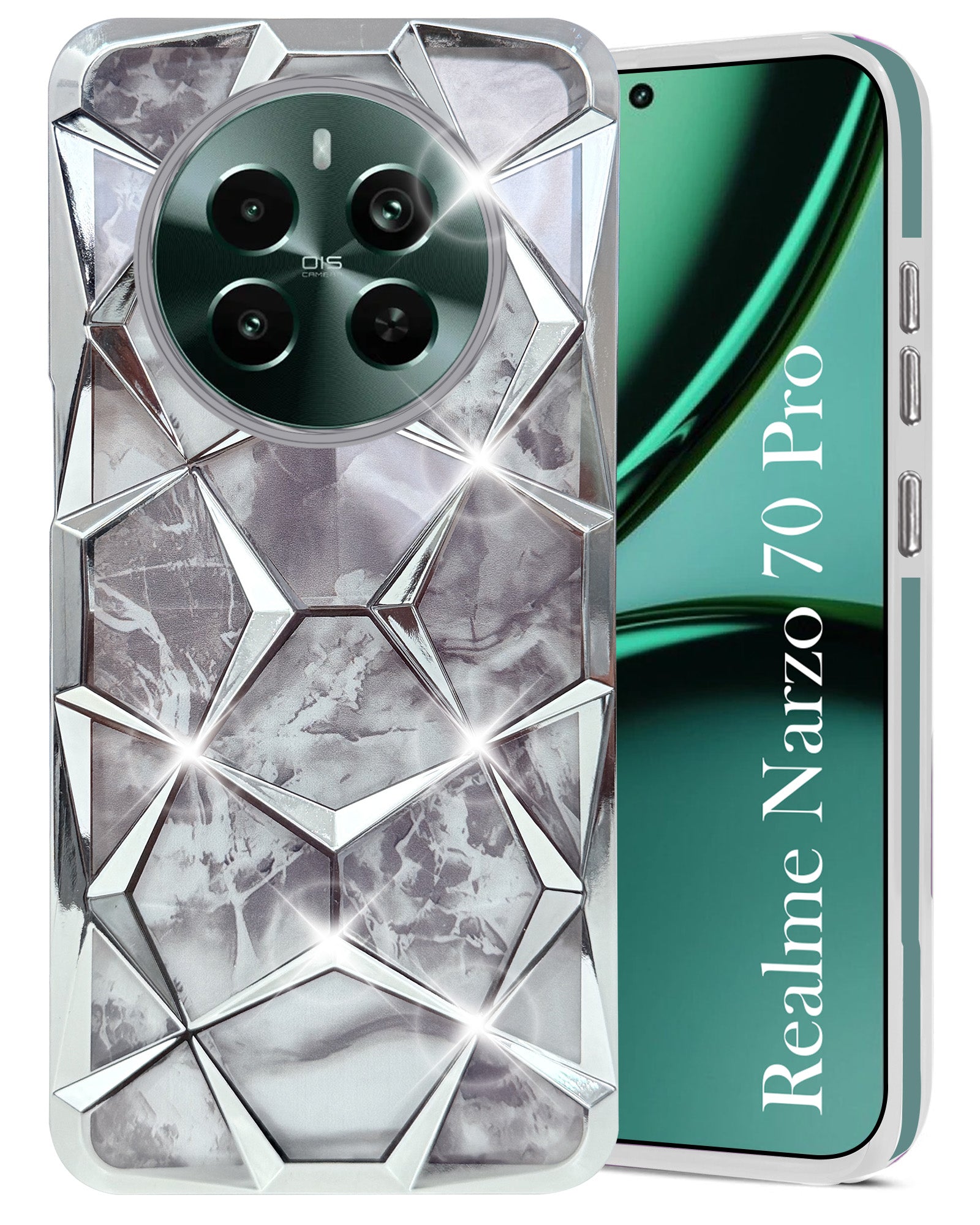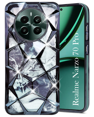 For Realme Narzo 70 Pro Back Cover Case ( Dual Design Glitter Sparkle and Detachable Diamond Print Case | Soft and Flexible)