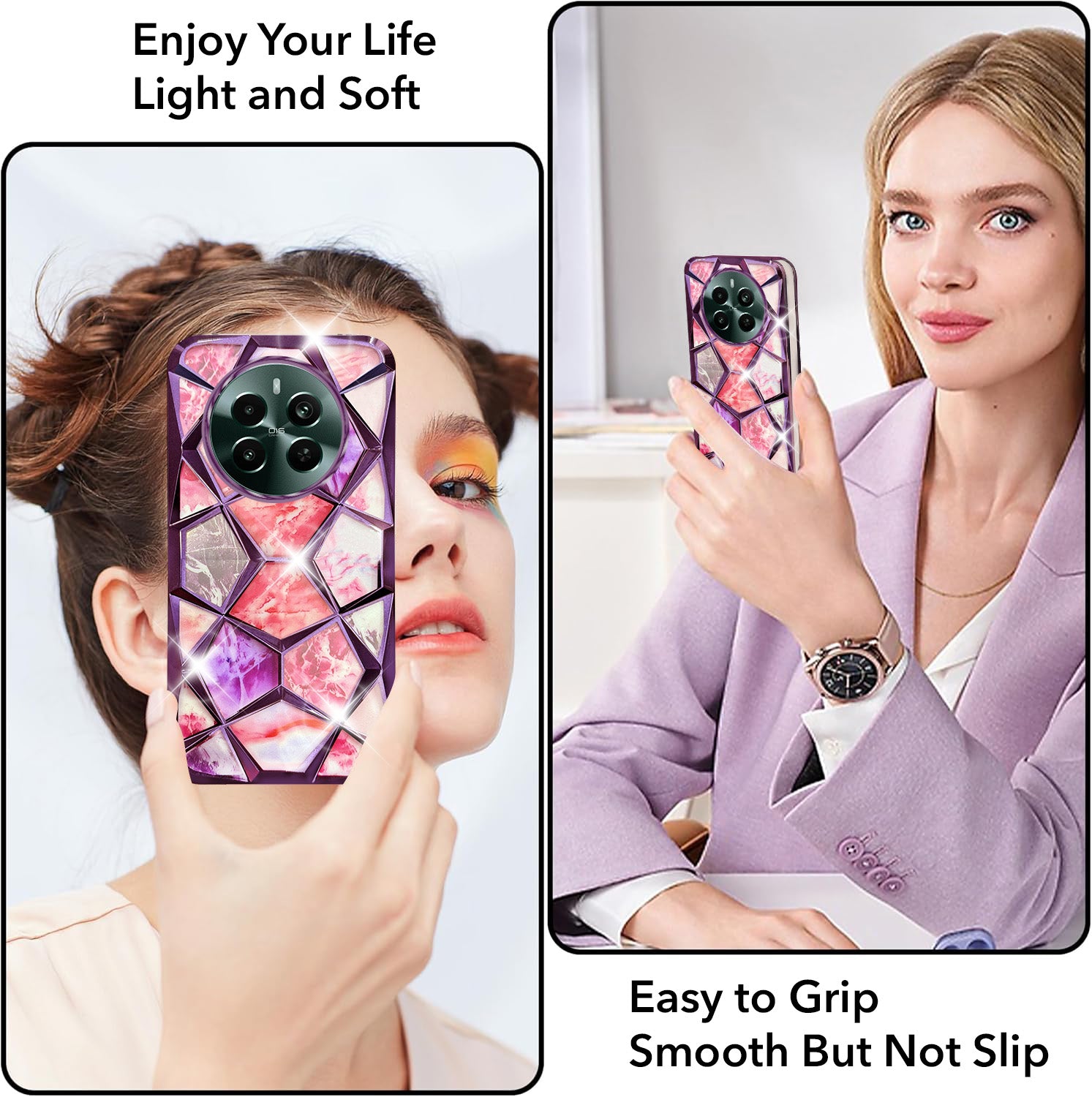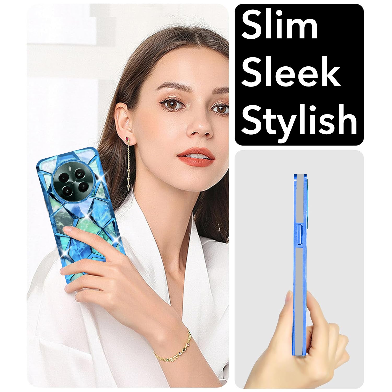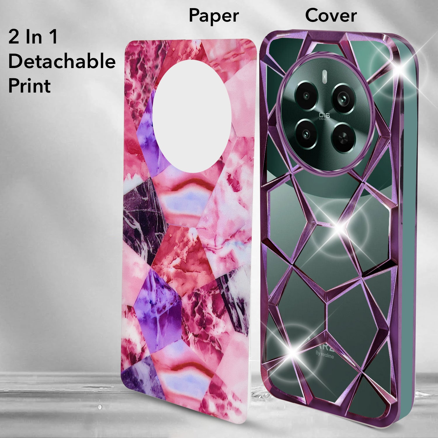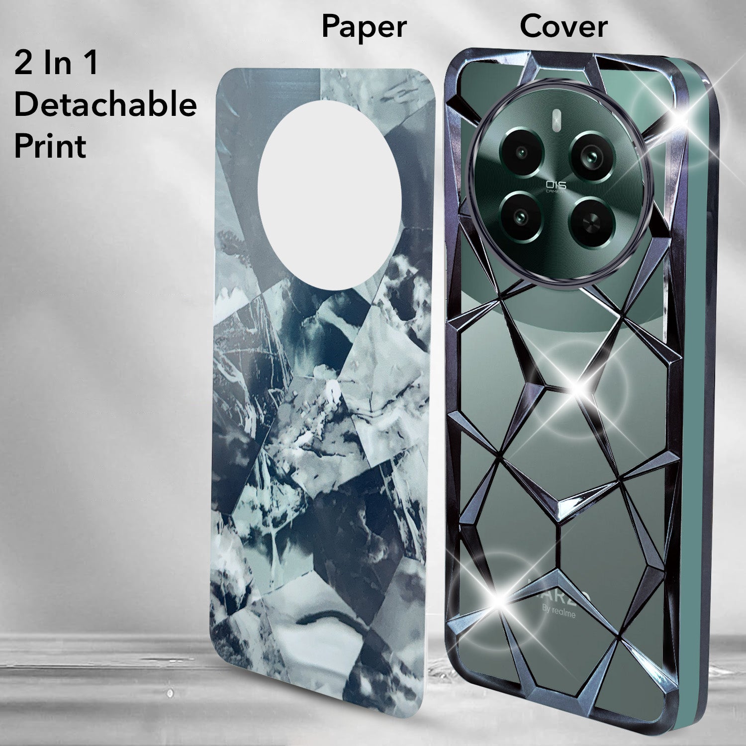 For Realme Narzo 70 Pro Back Cover Case ( Dual Design Glitter Sparkle and Detachable Diamond Print Case | Soft and Flexible)