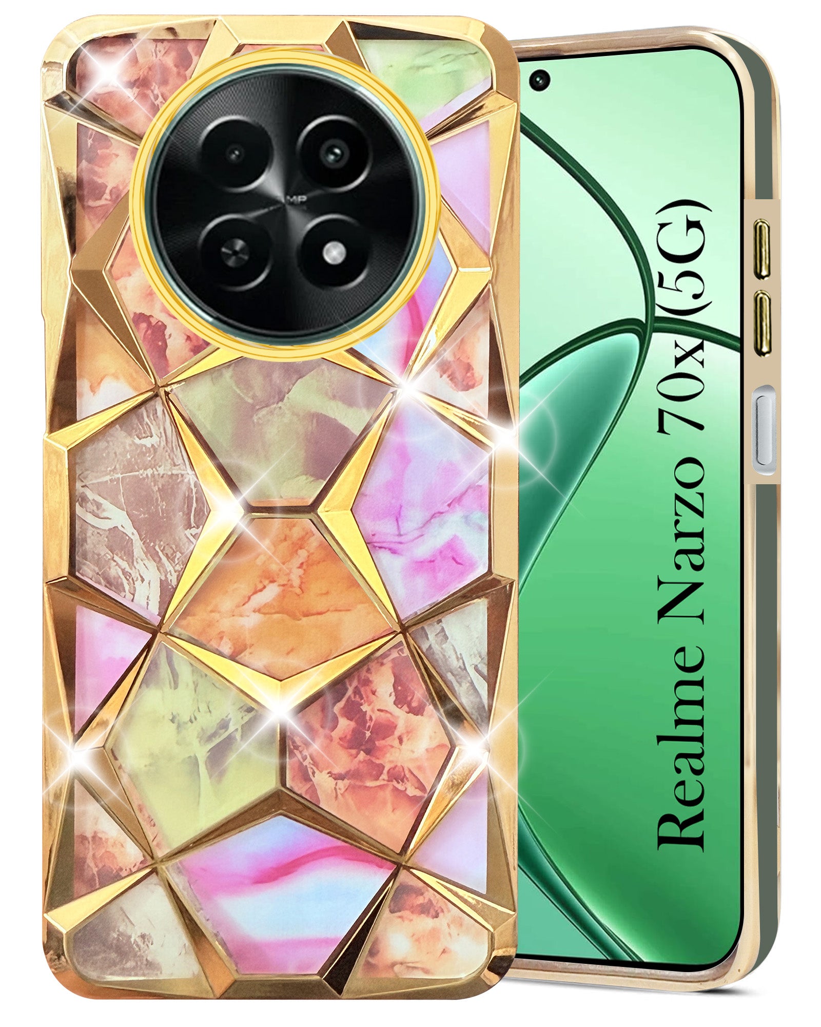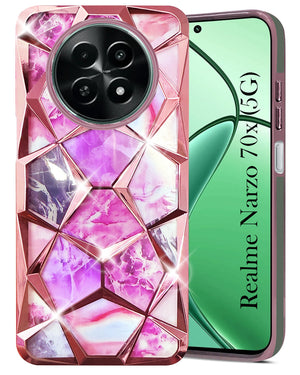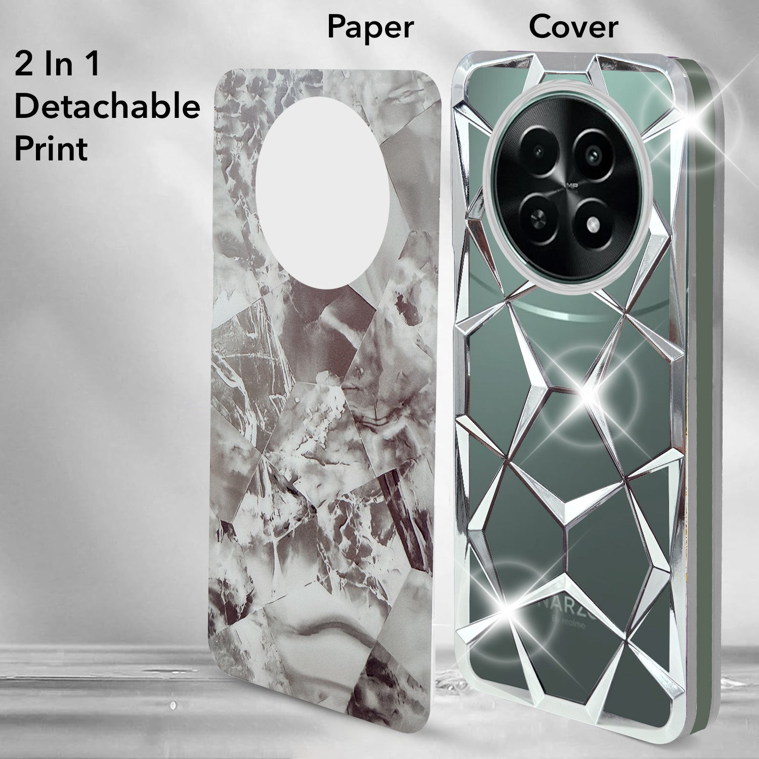 For Realme Narzo 70x 5G Back Cover Case ( Dual Design Glitter Sparkle and Detachable Diamond Print Case | Soft and Flexible)