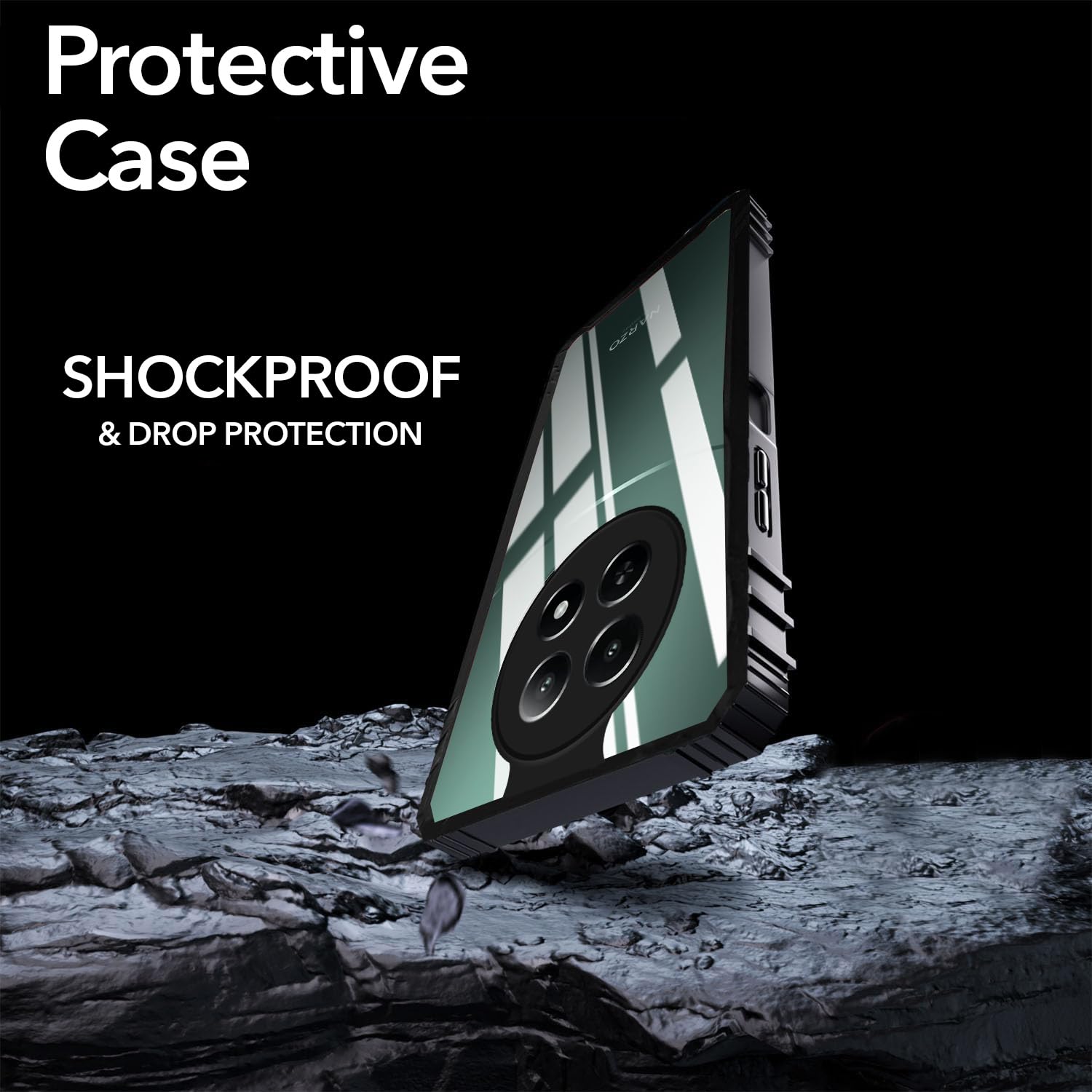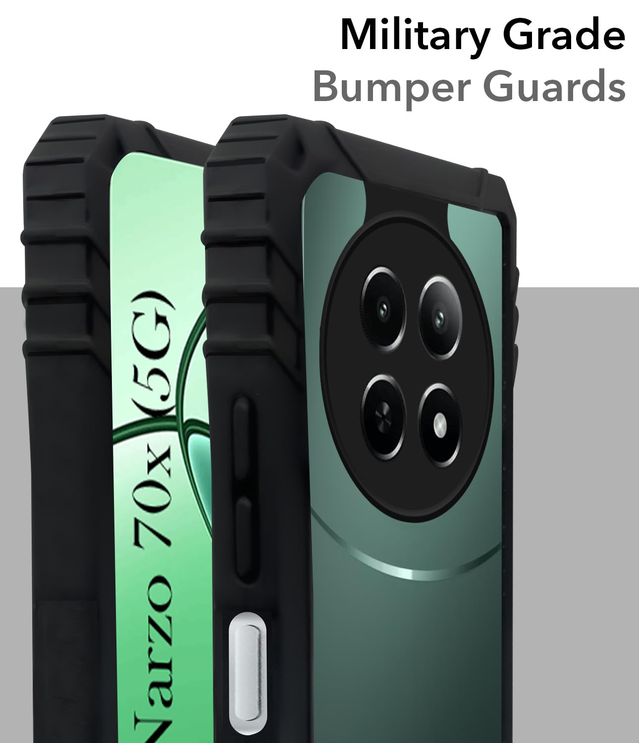 For Realme Narzo 70x 5G Back Cover Case (Ultimate Shockproof Bumpers | Anti Yellow | Rugged Armor | Hybrid PC | Black )