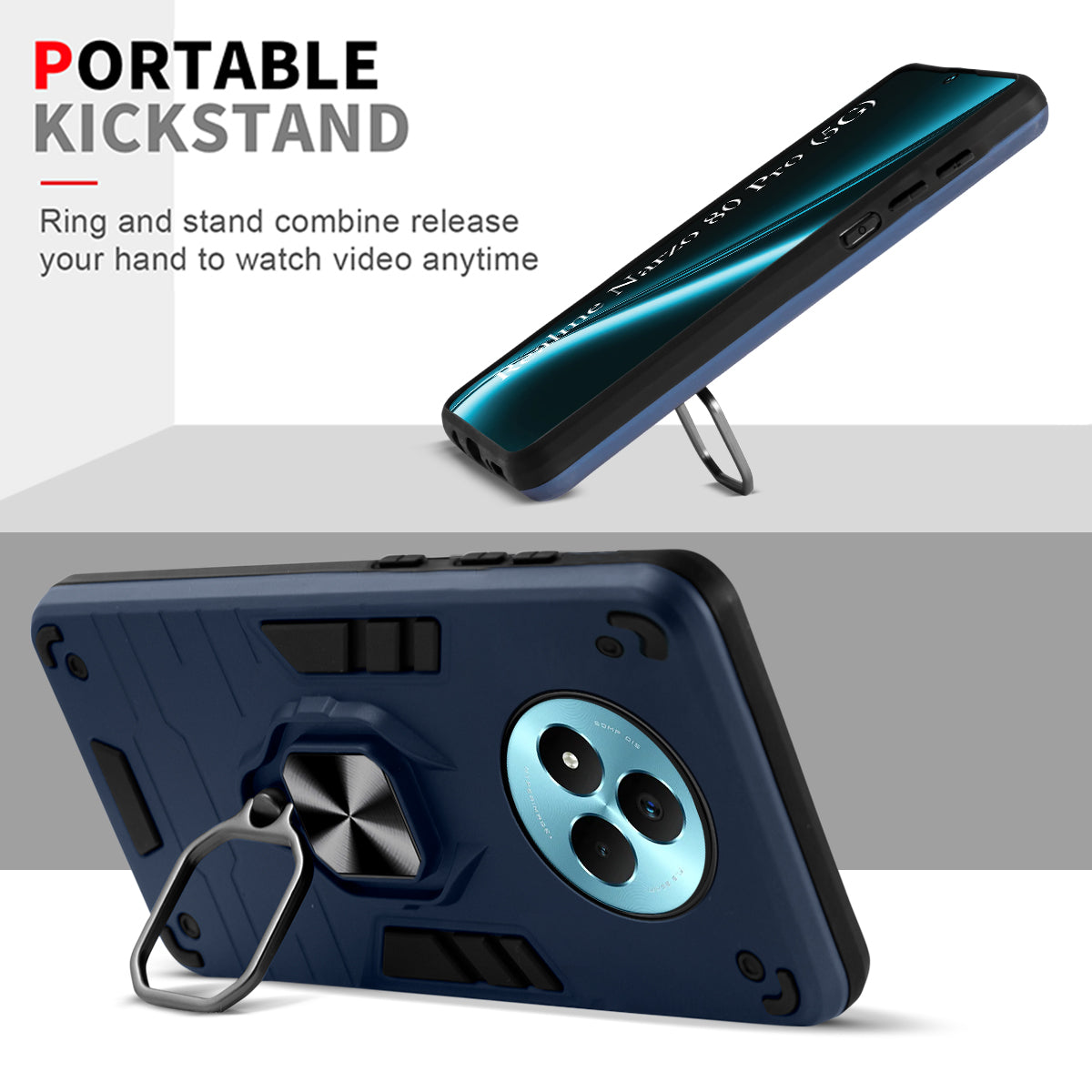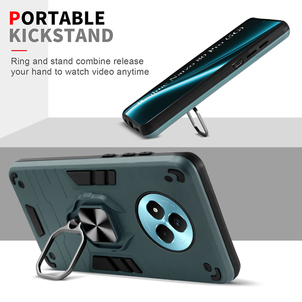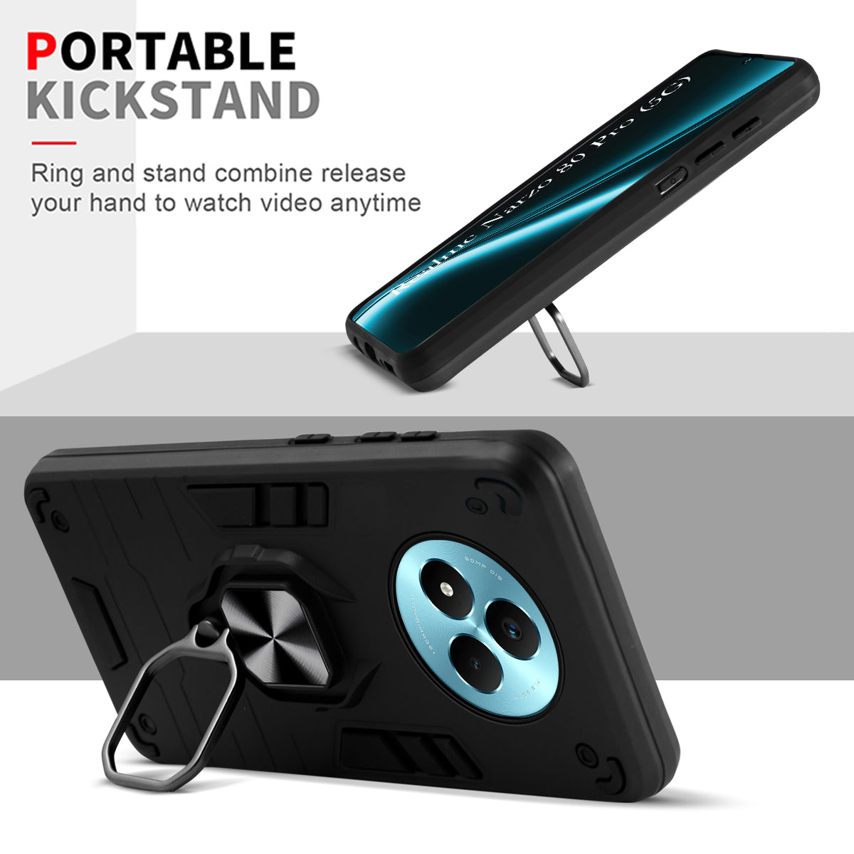 For Realme Narzo 80 Pro Back Cover Case (Shockproof Dual Layer Polycarbonate |Ring Holder Kickstand)