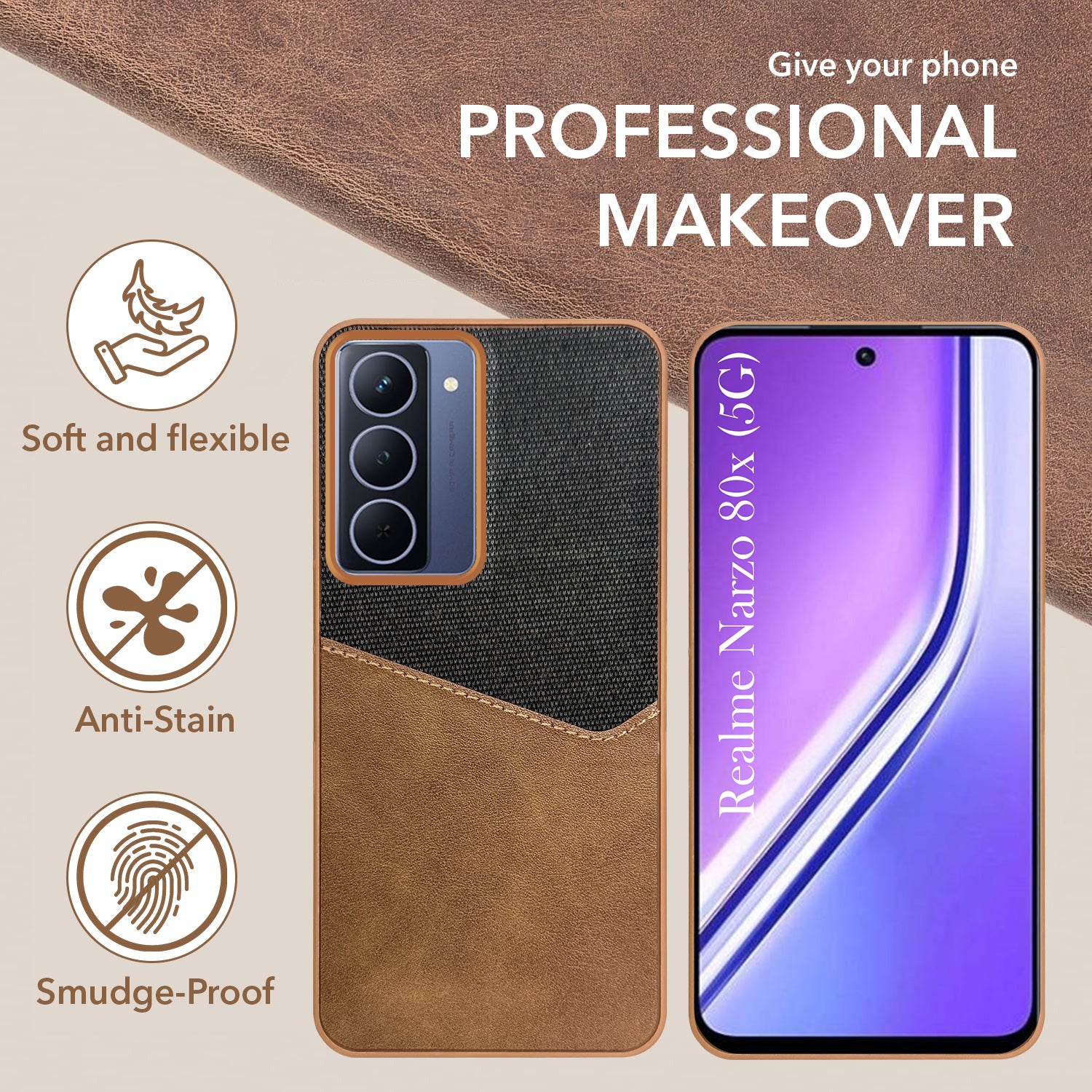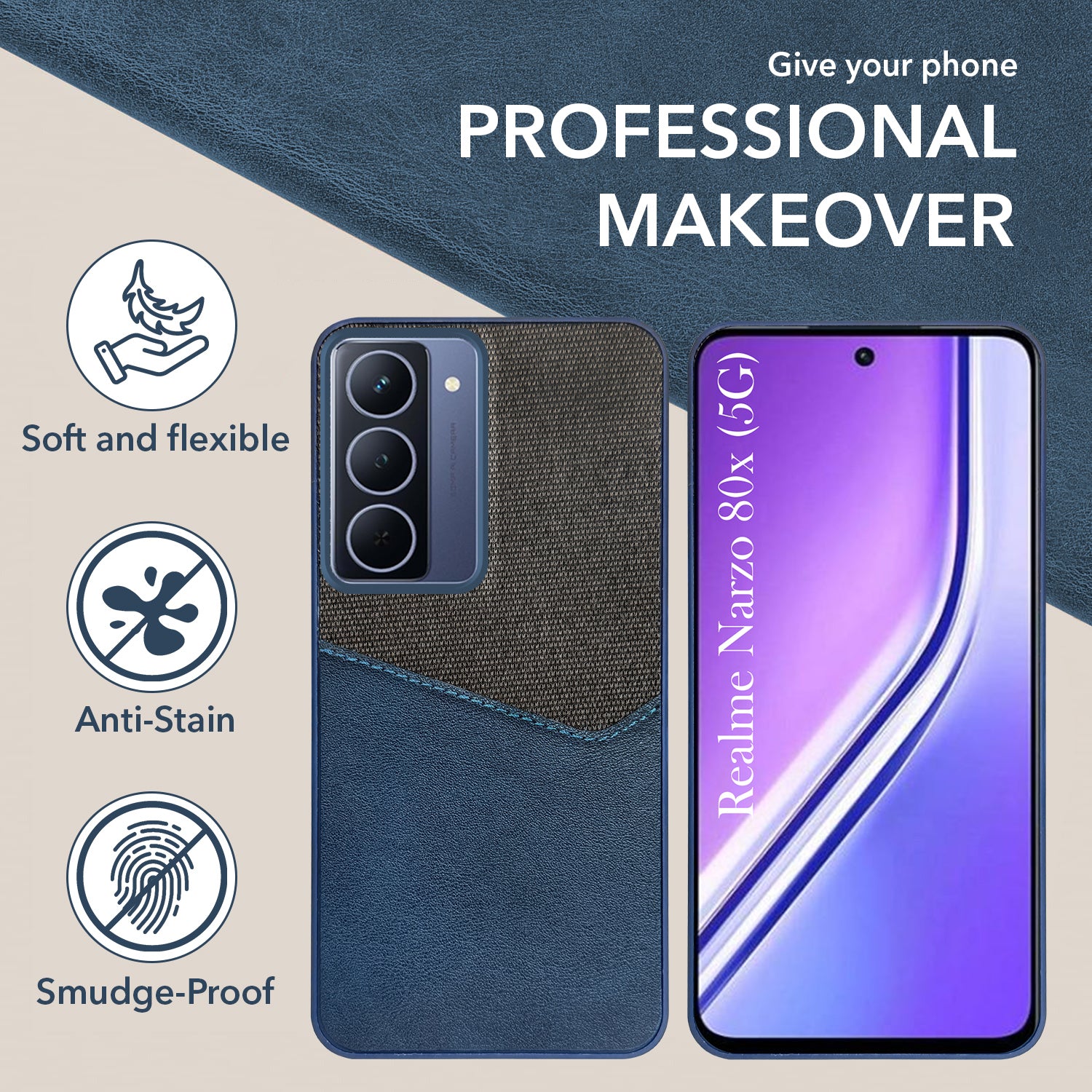 For Realme Narzo 80x Back Cover Case (Dual PU Leather Stitch | Professional Minimalist | Soft and Flexible)