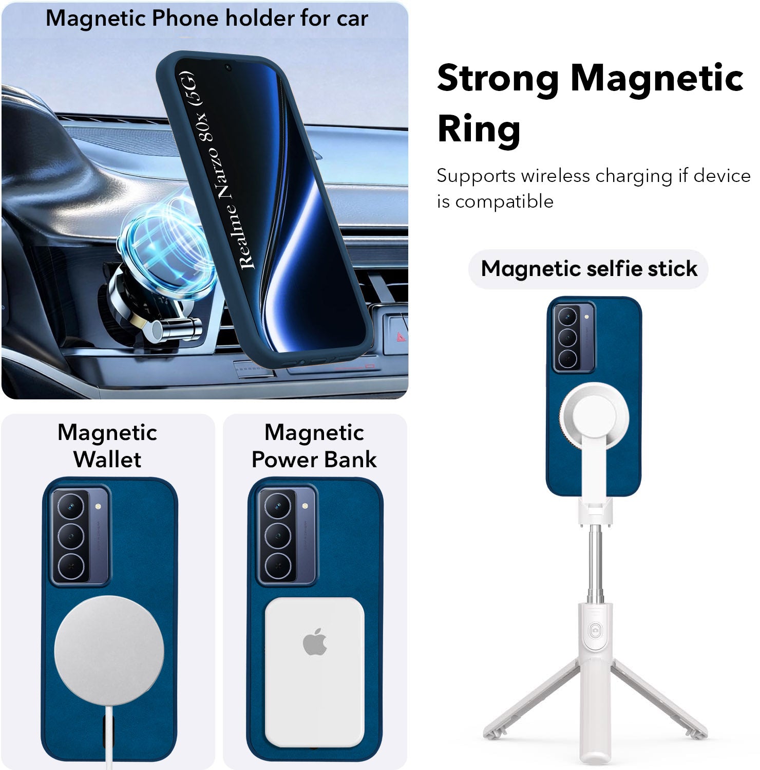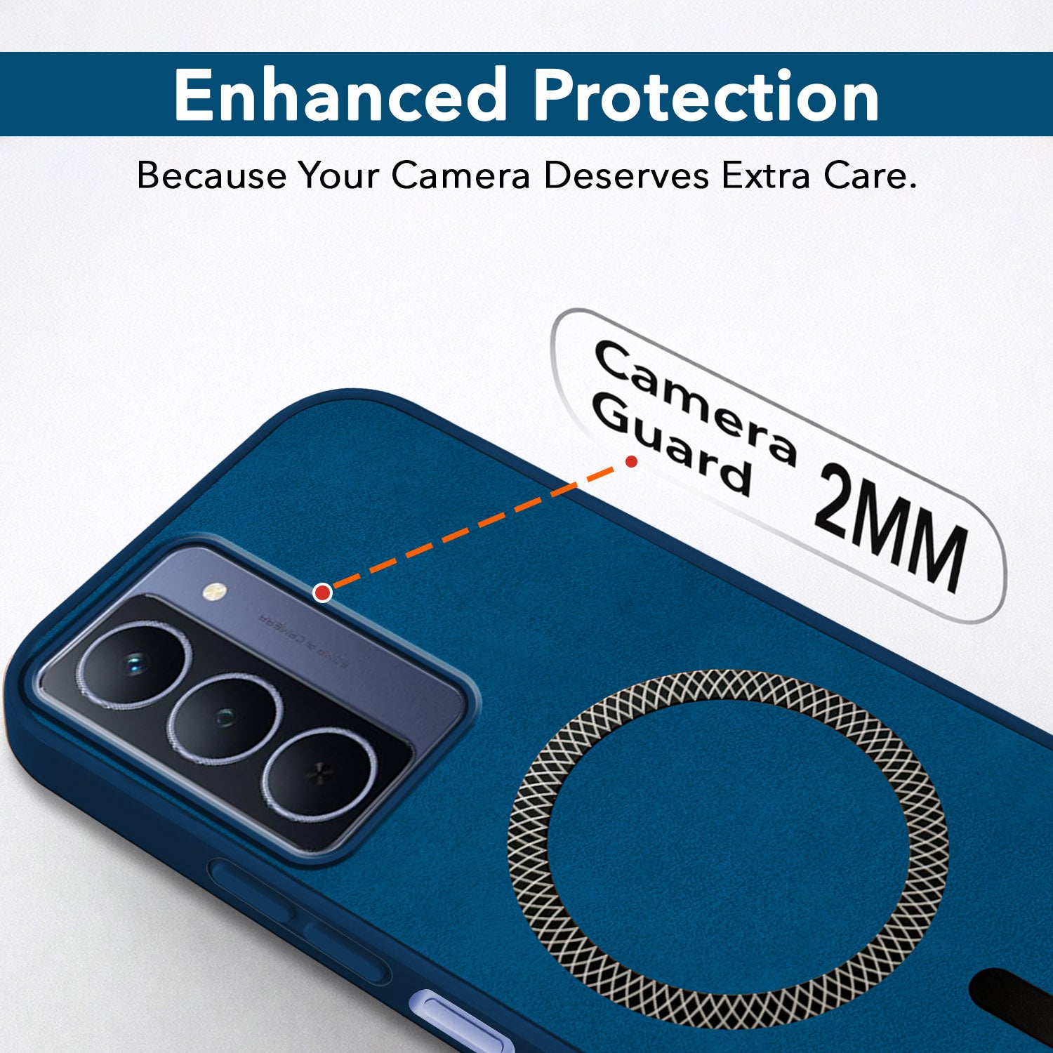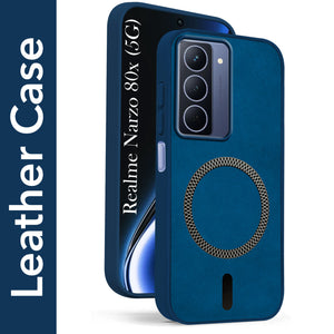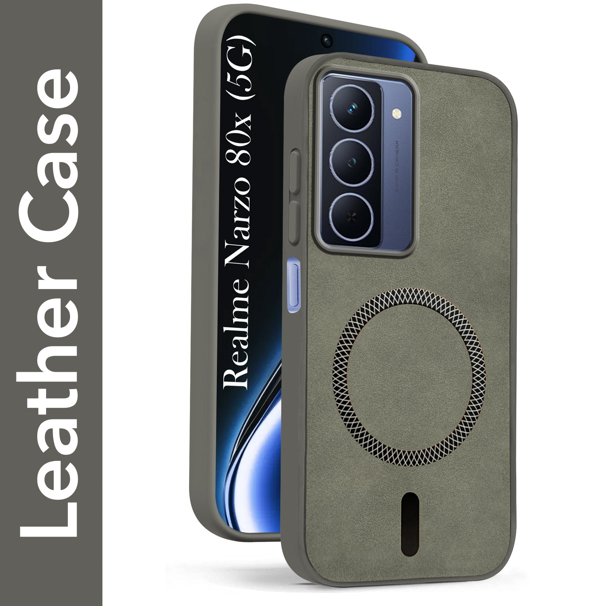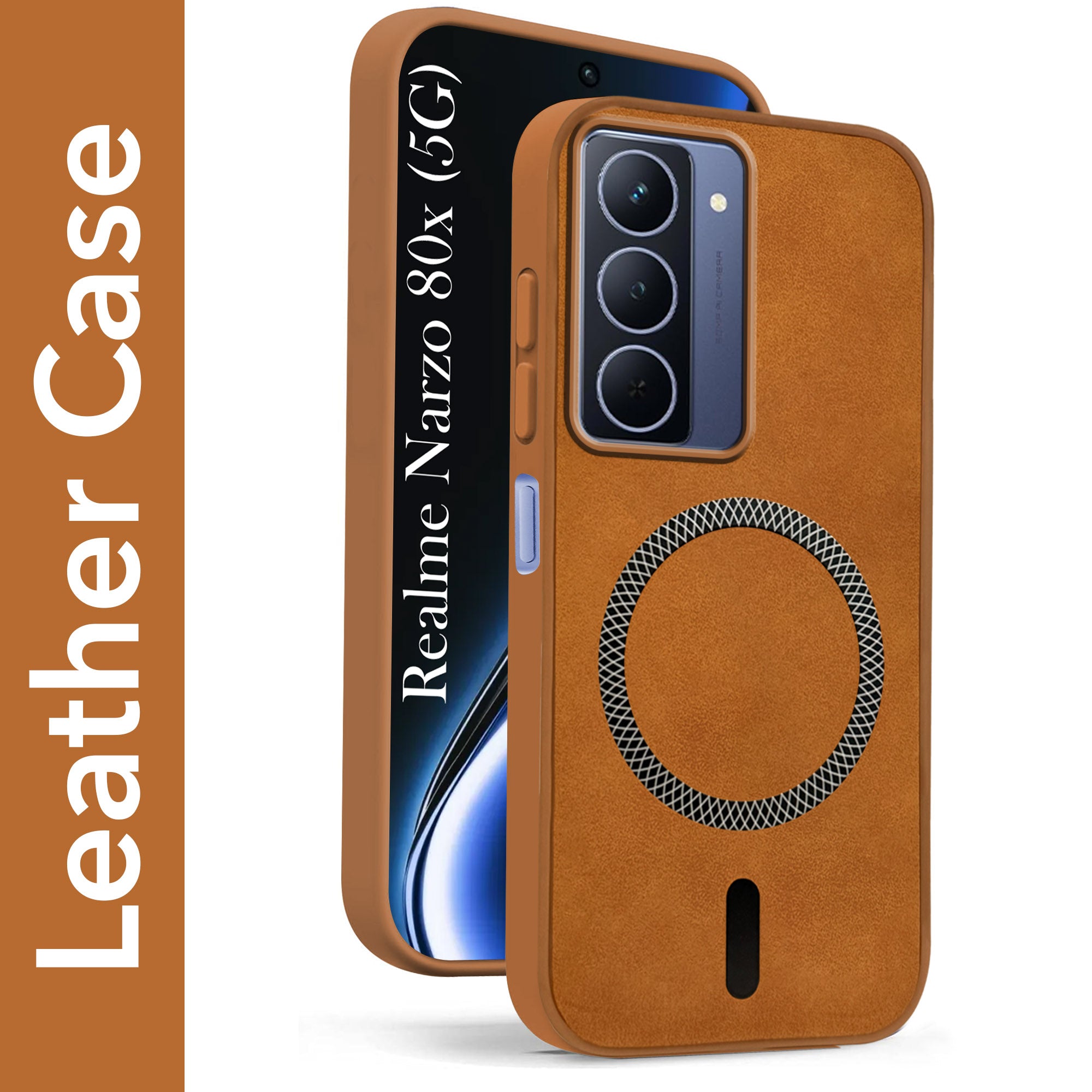 For Realme Narzo 80x Back Cover Case Leather Finish (MagSafe Compatible Wireless Charging | Soft Touch | Camera Bump Protection)