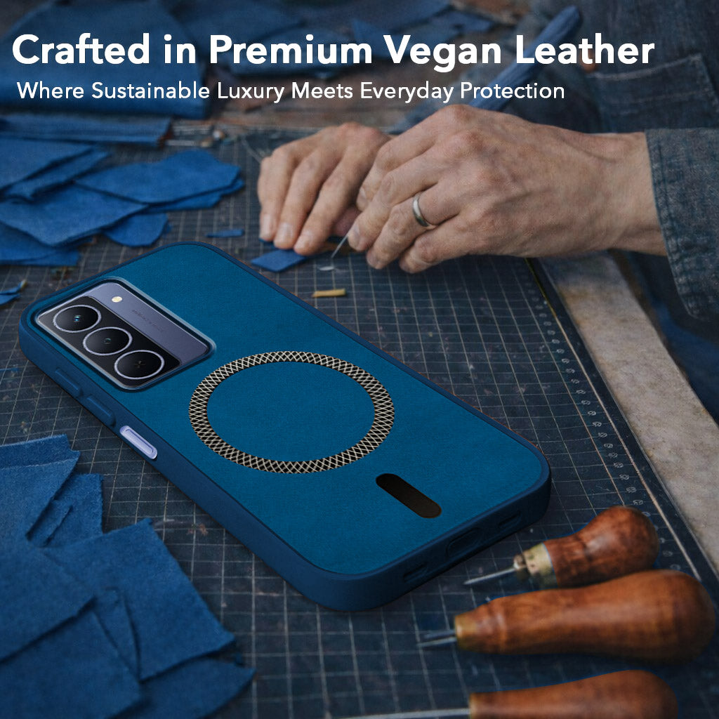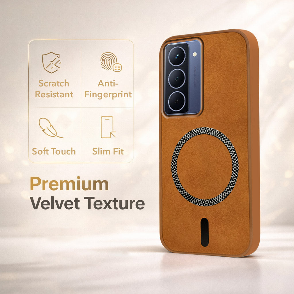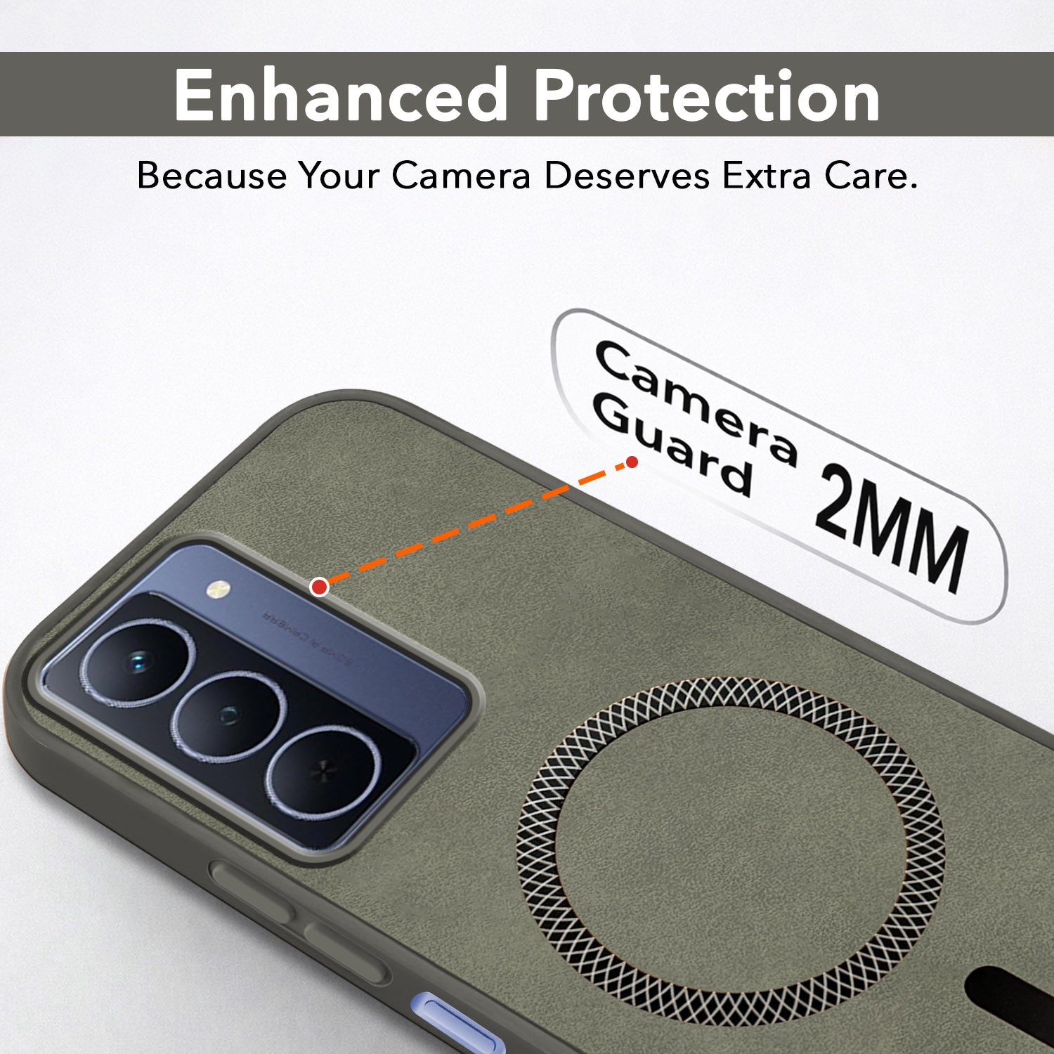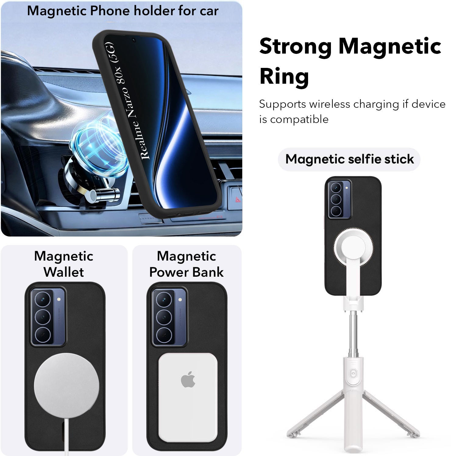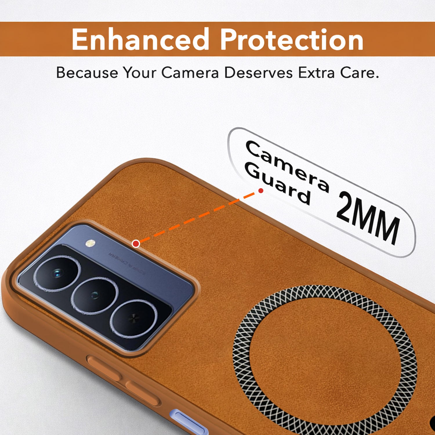 For Realme Narzo 80x Back Cover Case Leather Finish (MagSafe Compatible Wireless Charging | Soft Touch | Camera Bump Protection)