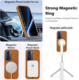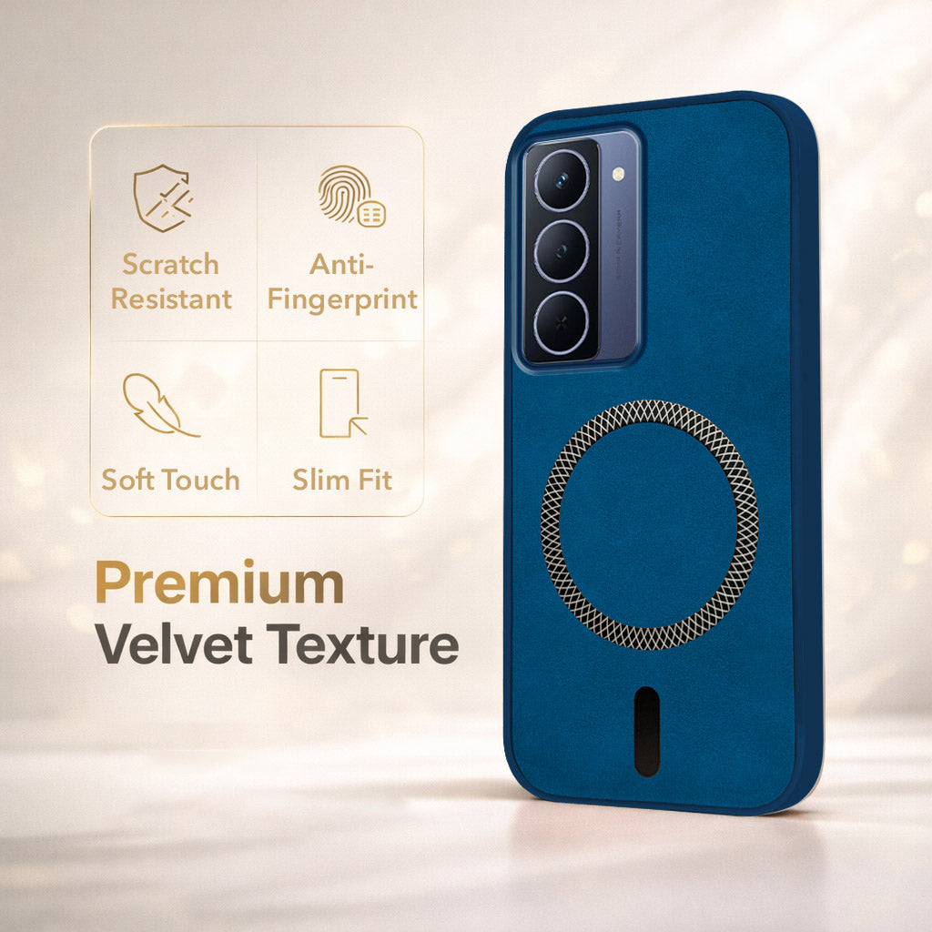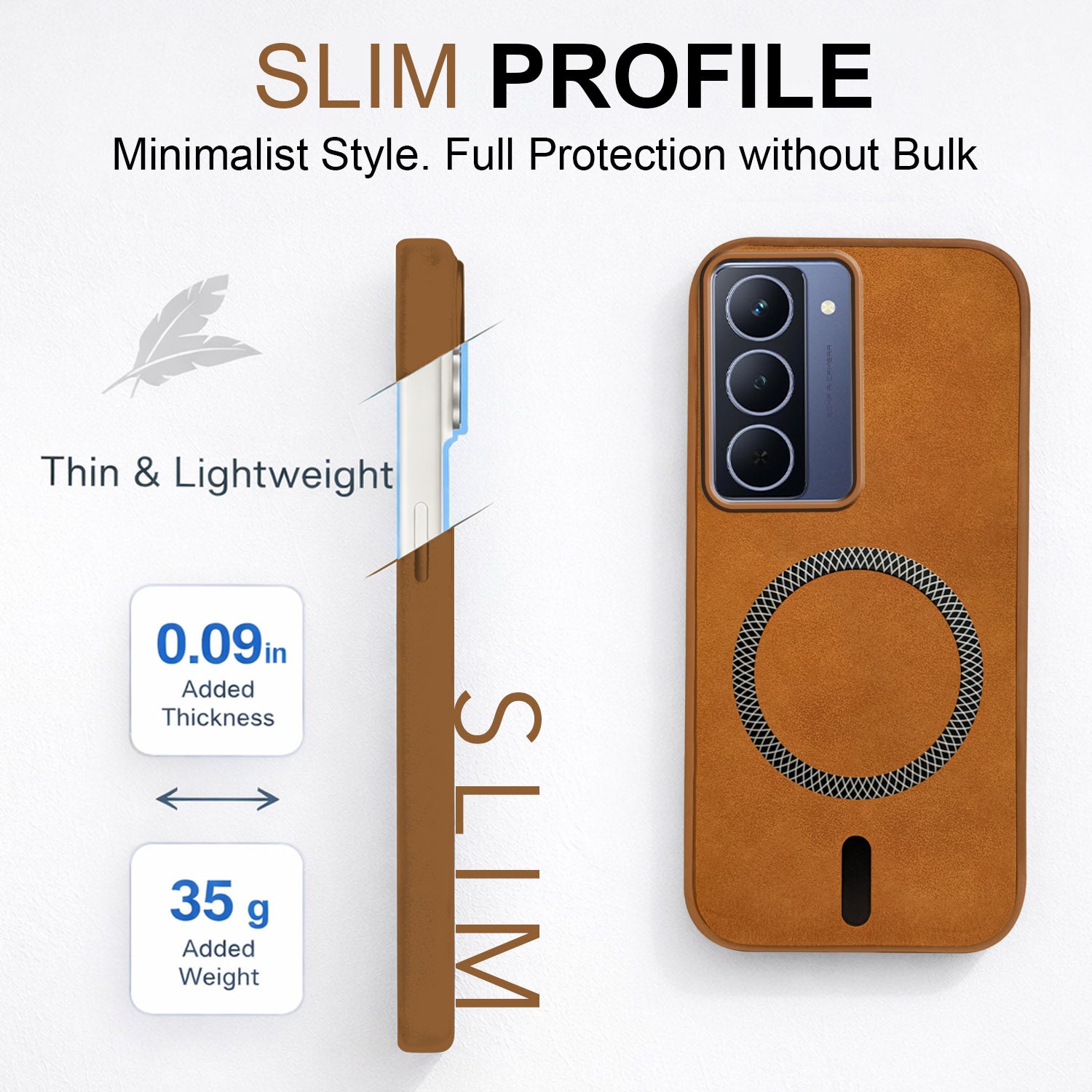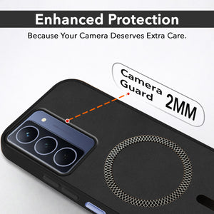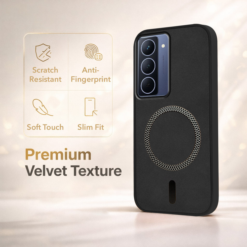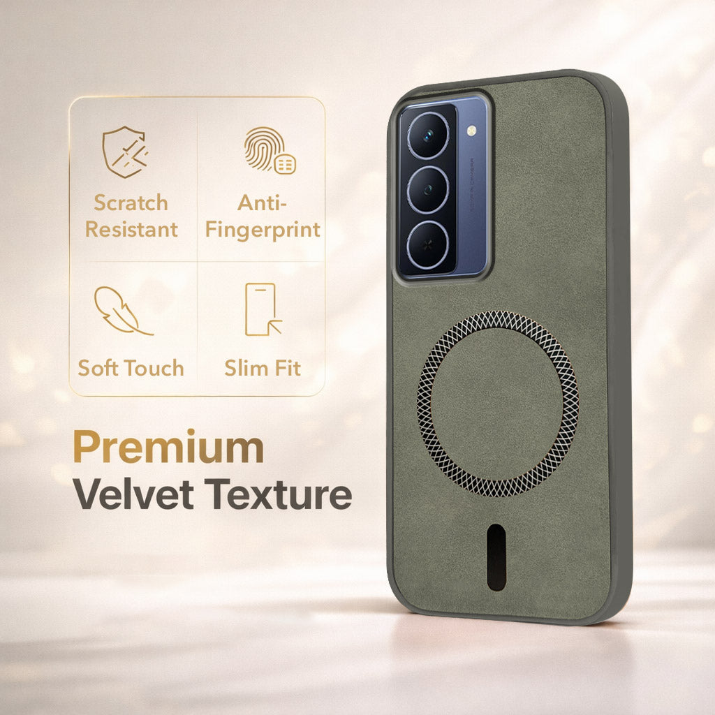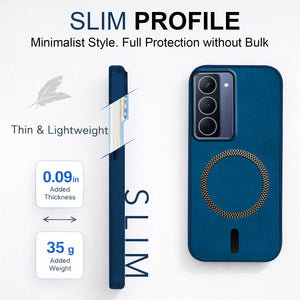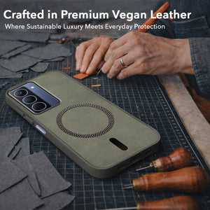 For Realme Narzo 80x Back Cover Case Leather Finish (MagSafe Compatible Wireless Charging | Soft Touch | Camera Bump Protection)