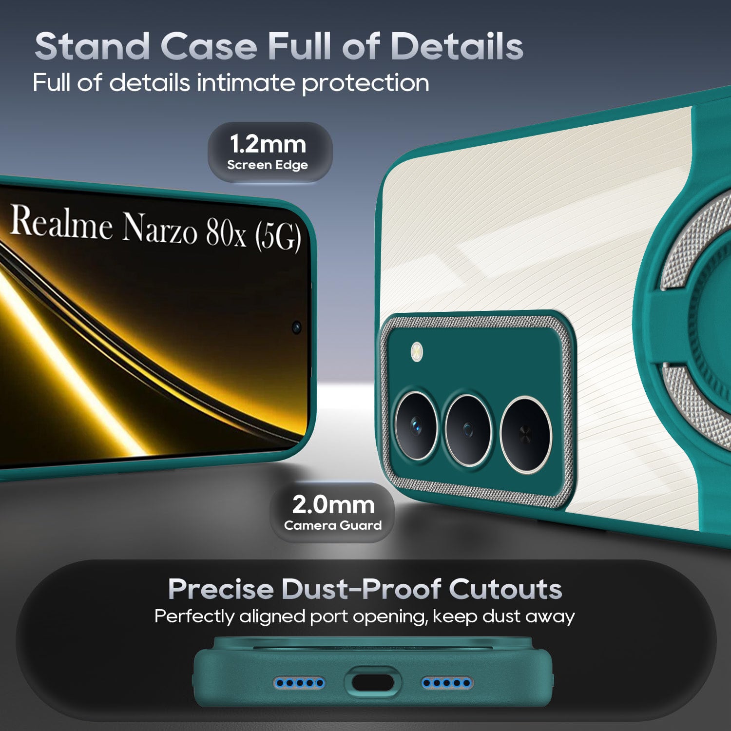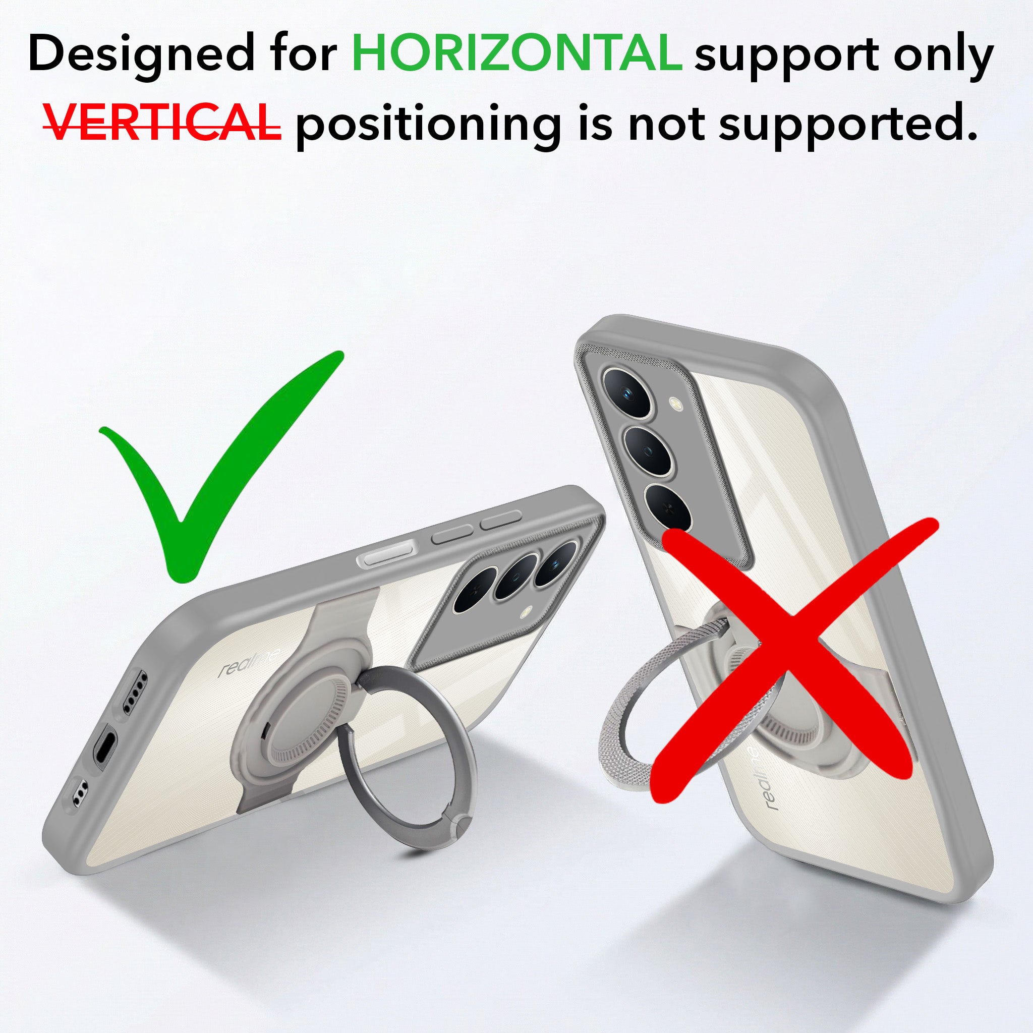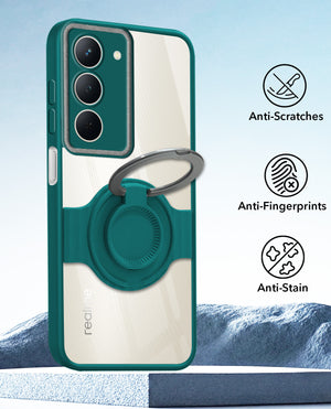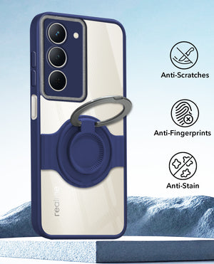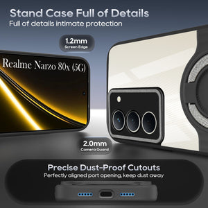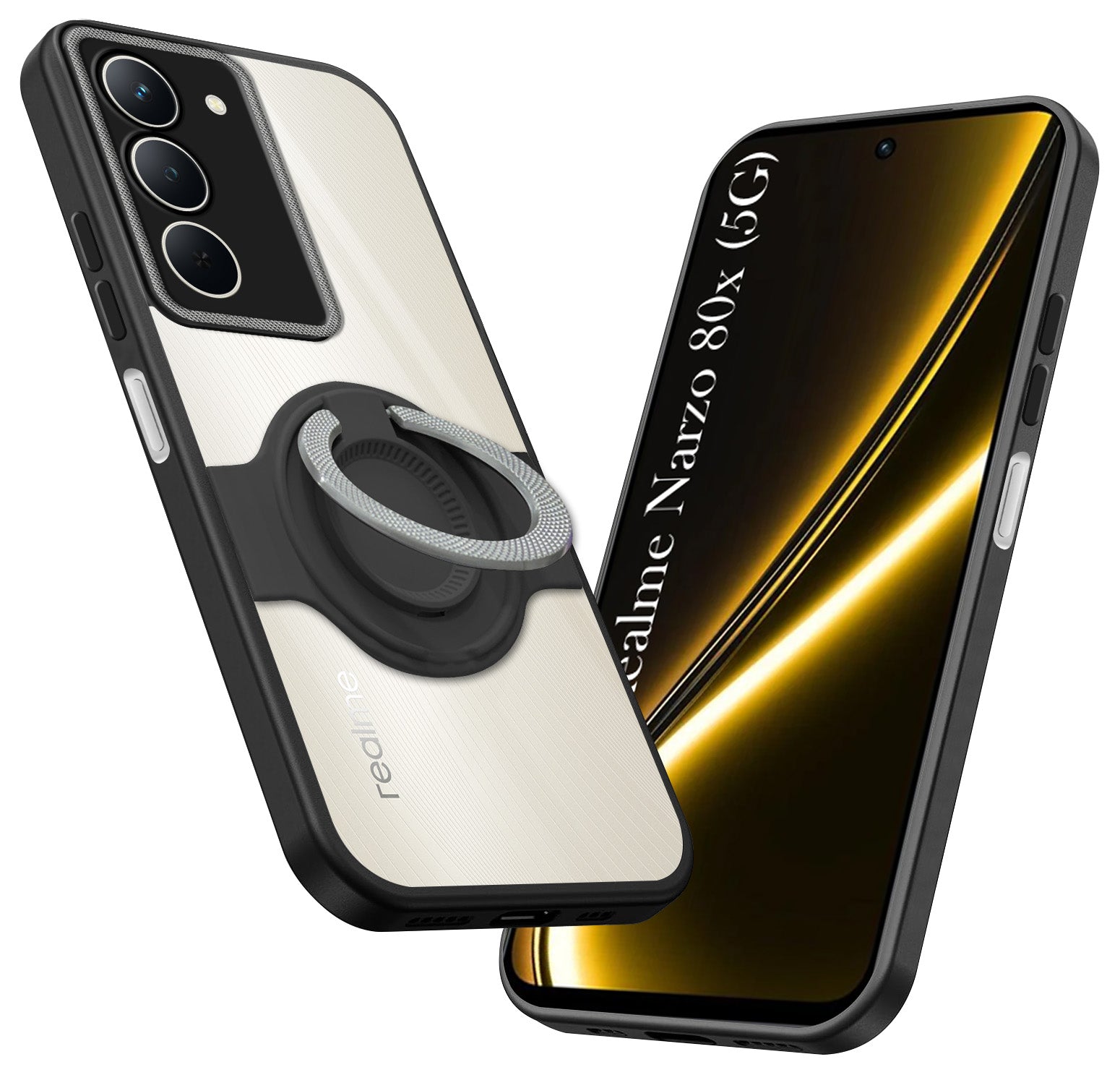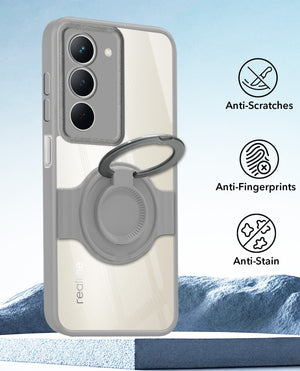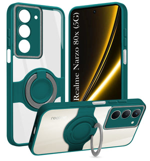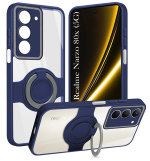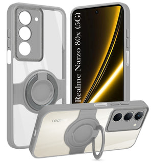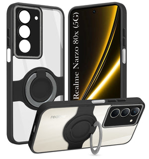 For Realme Narzo 80x Back Cover Case with stand (Built-in Ring Holder Kickstand | Lifetime Anti Yellow | Camera Protection)