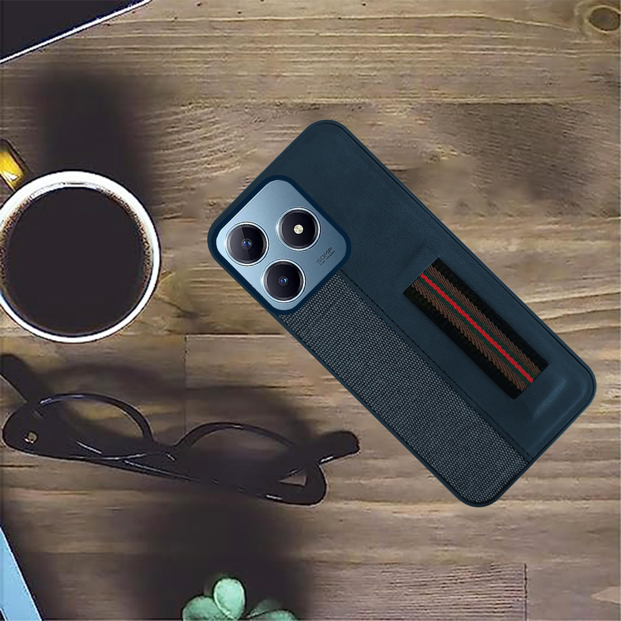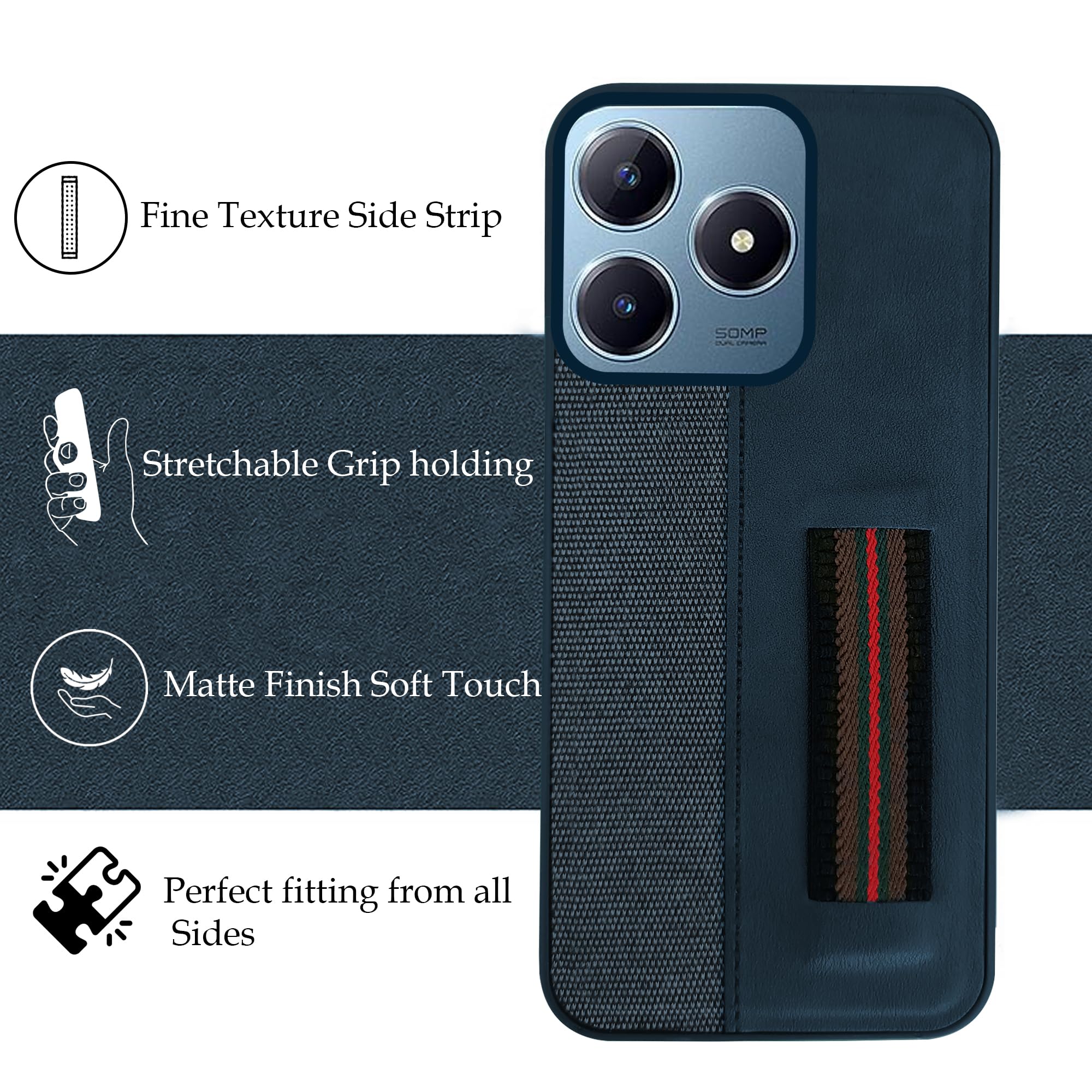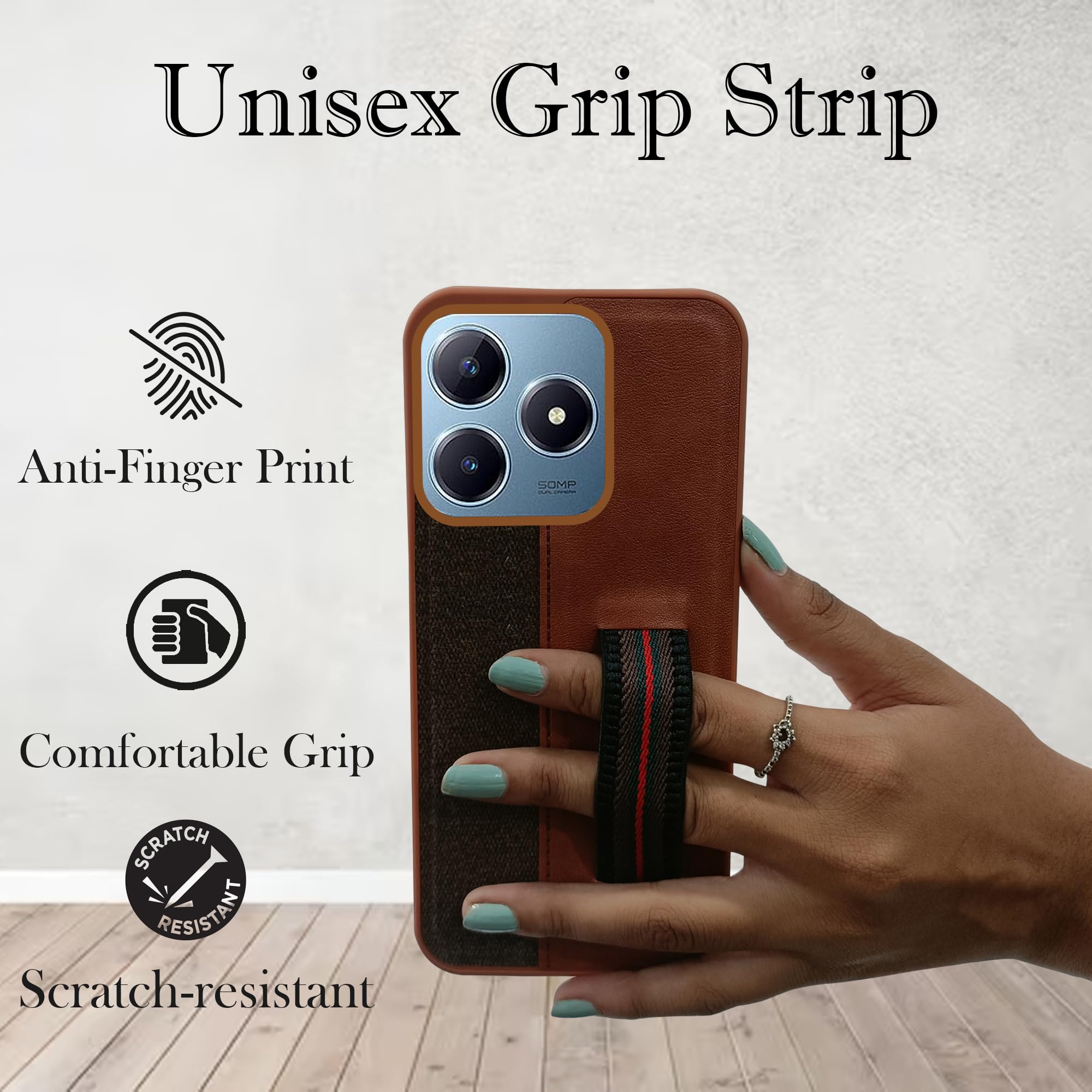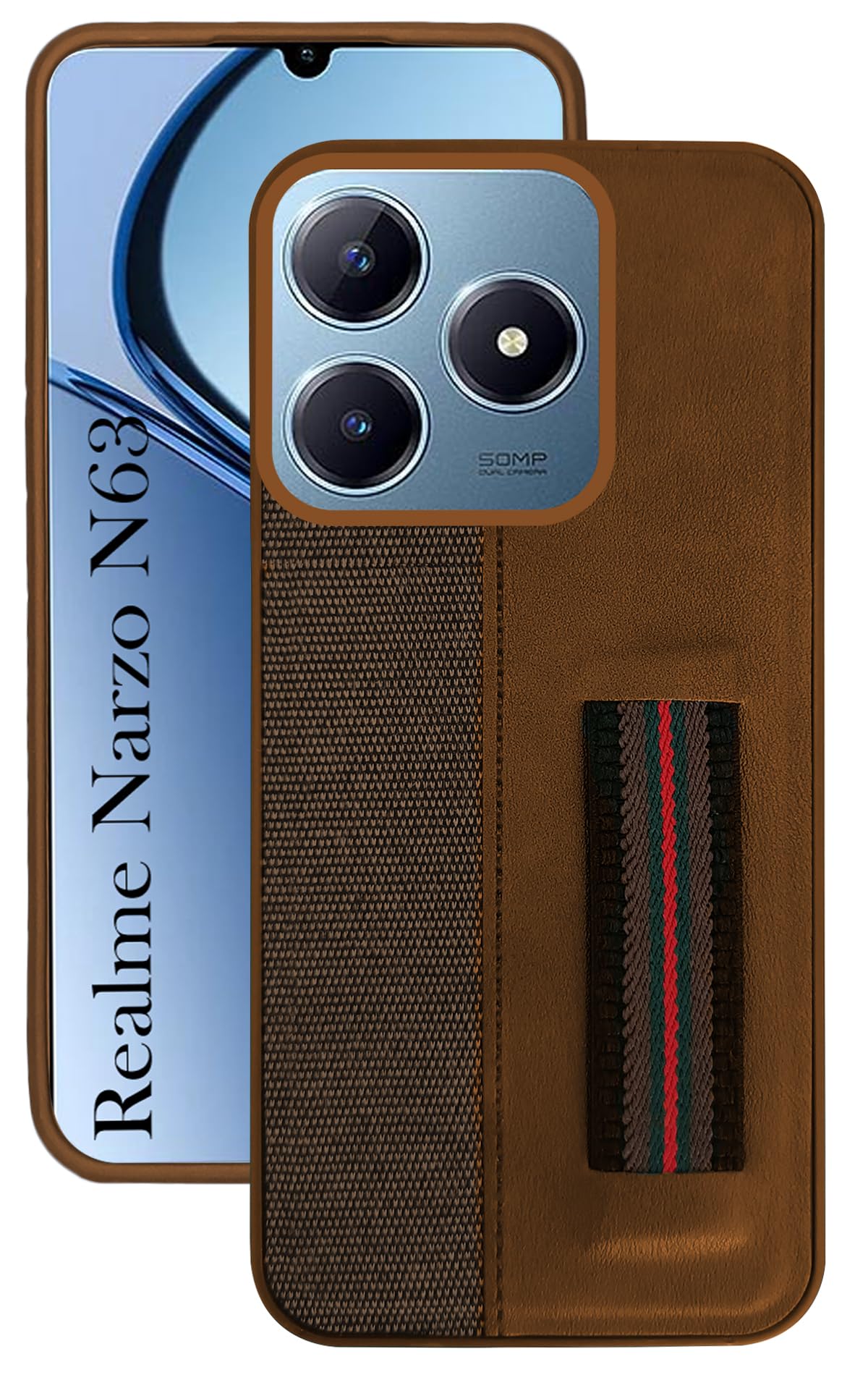 For Realme Narzo N63 Back Cover Case( Professional PU Leather | Strip Chain Holder Socket)