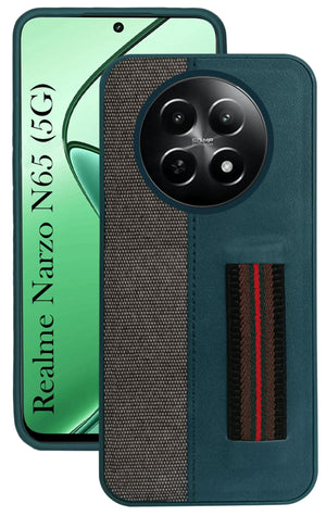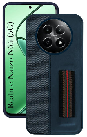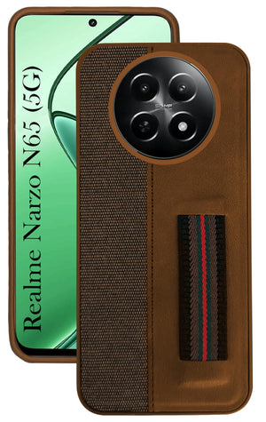 For Realme Narzo N65 5G Back Cover Case ( Professional PU Leather | Strip Chain Holder Socket | Black )
