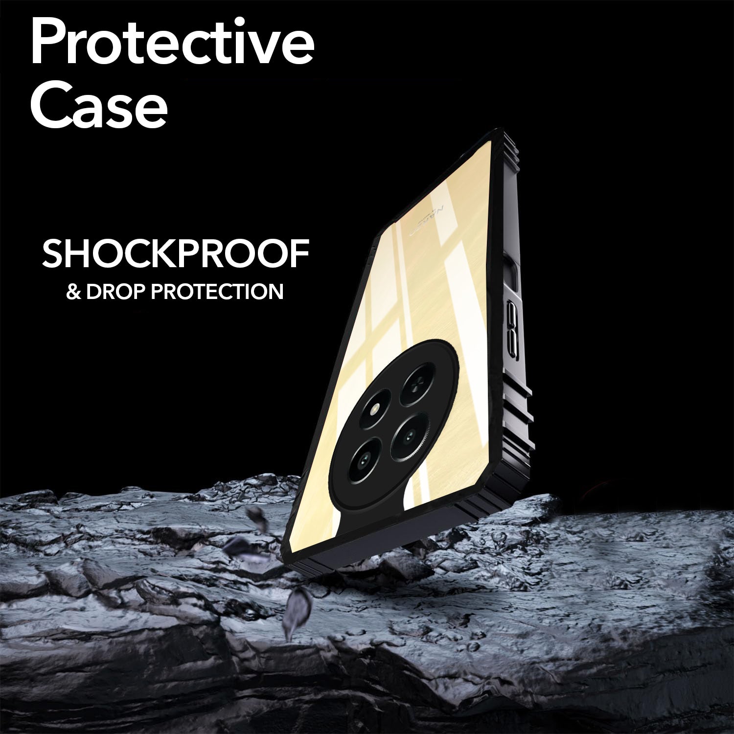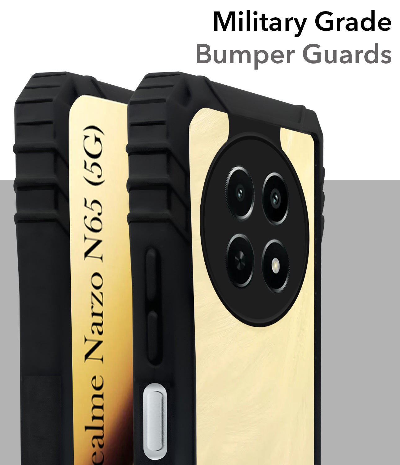 For Realme Narzo N65 5G Back Cover Case (Ultimate Shockproof Bumpers | Anti Yellow | Rugged Armor | Hybrid PC | Black )