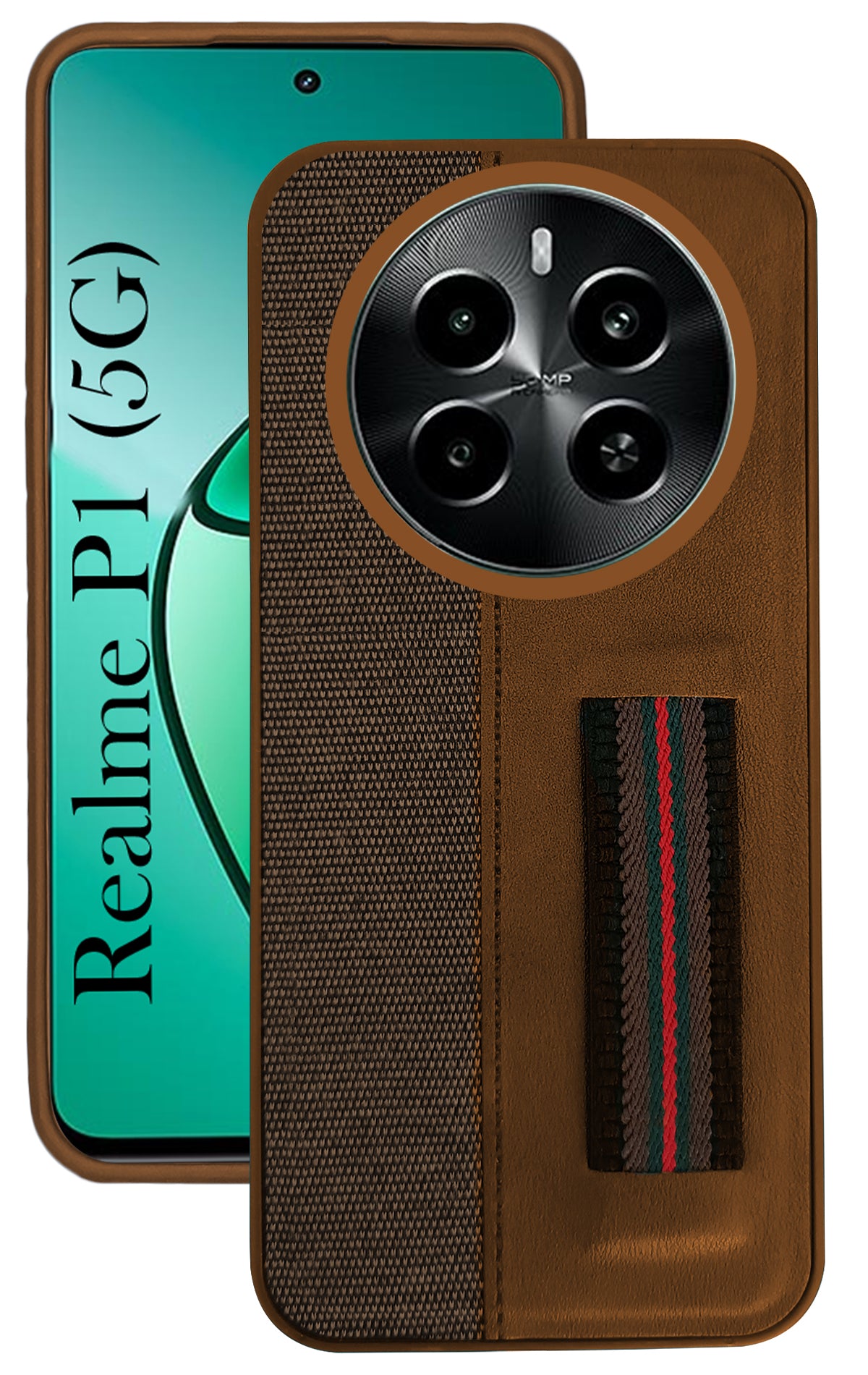 For Realme P1 5G Back Cover Case (Professional PU Leather | Strip Chain Holder Socket)