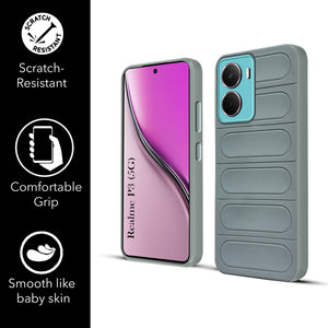 For Realme P3 Back Case Cover (Matte Liquid Silicone| Professional Wave Design | Camera Protection Ring | Shockproof Anti Slip Grip)