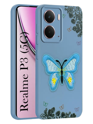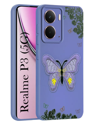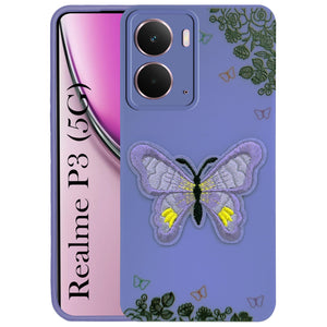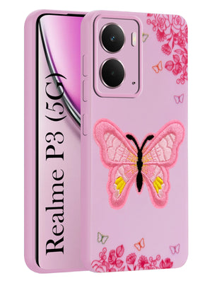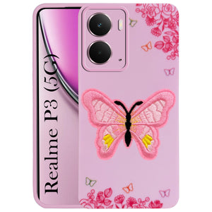 For Realme P3 Back Cover Case (Soft Butterfly Embroidery | Women Teen Girls | Camera Protection| Matte Silicone)