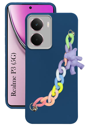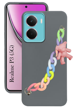 For Realme P3 Back Cover Case ( Wrist Hanging Chain | Teddy Bracelet Charms | Dual Color Matte Finish | Full Camera Protection | Sleek and Professional)