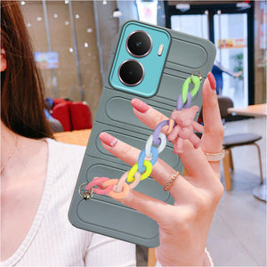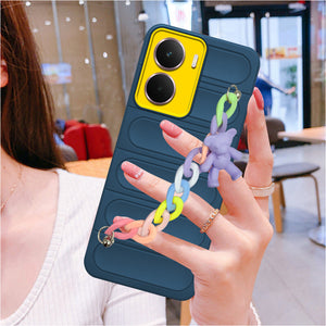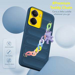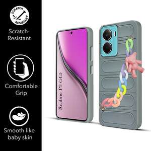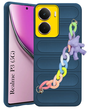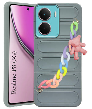 For Realme P3 Back Cover Case (Wrist Hanging Chain | Teddy Bracelet Charms | Matte Liquid Silicone | Camera Protection Ring)