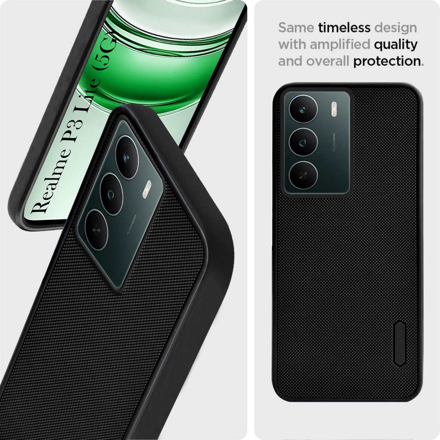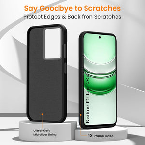 For Realme P3 Lite Rubberised Back Cover Case (Textured Grip Design | Micro-Fiber Cloth Inside | Slim and Light Weight | Soft Touch and Feel)