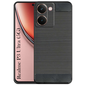 For Realme P3 Ultra Back Cover Case ( Hybrid Armor Case | Carbon Fiber Shockproof | Soft and Flexible | Black )