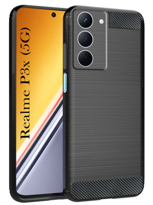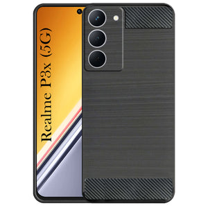 For Realme P3x Back Cover Case ( Hybrid Armor Case | Carbon Fiber Shockproof | Soft and Flexible | Black )