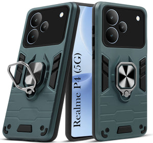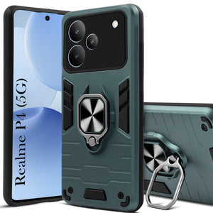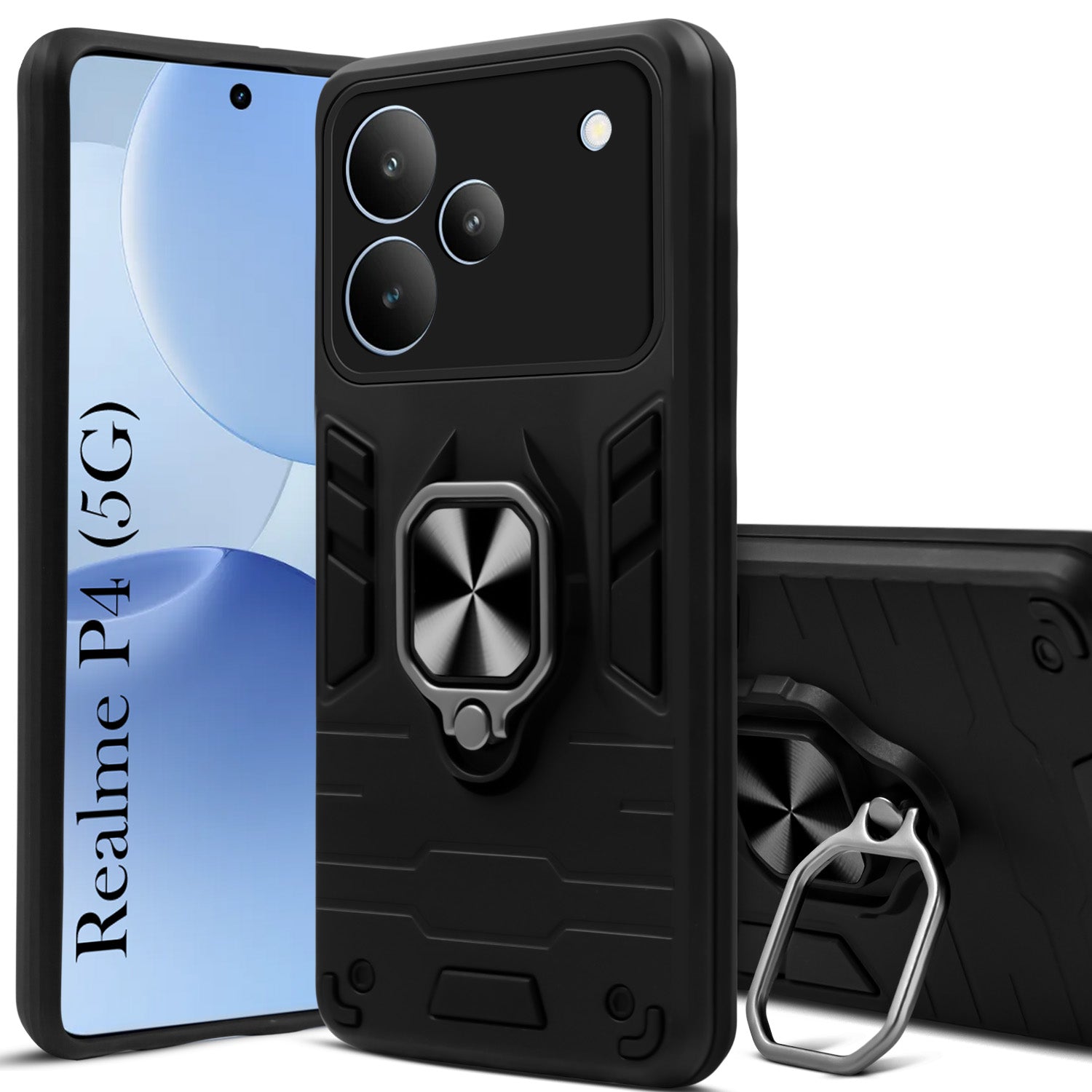 For Realme P4 Back Cover Case (Shockproof Dual Layer Polycarbonate |Ring Holder Kickstand)