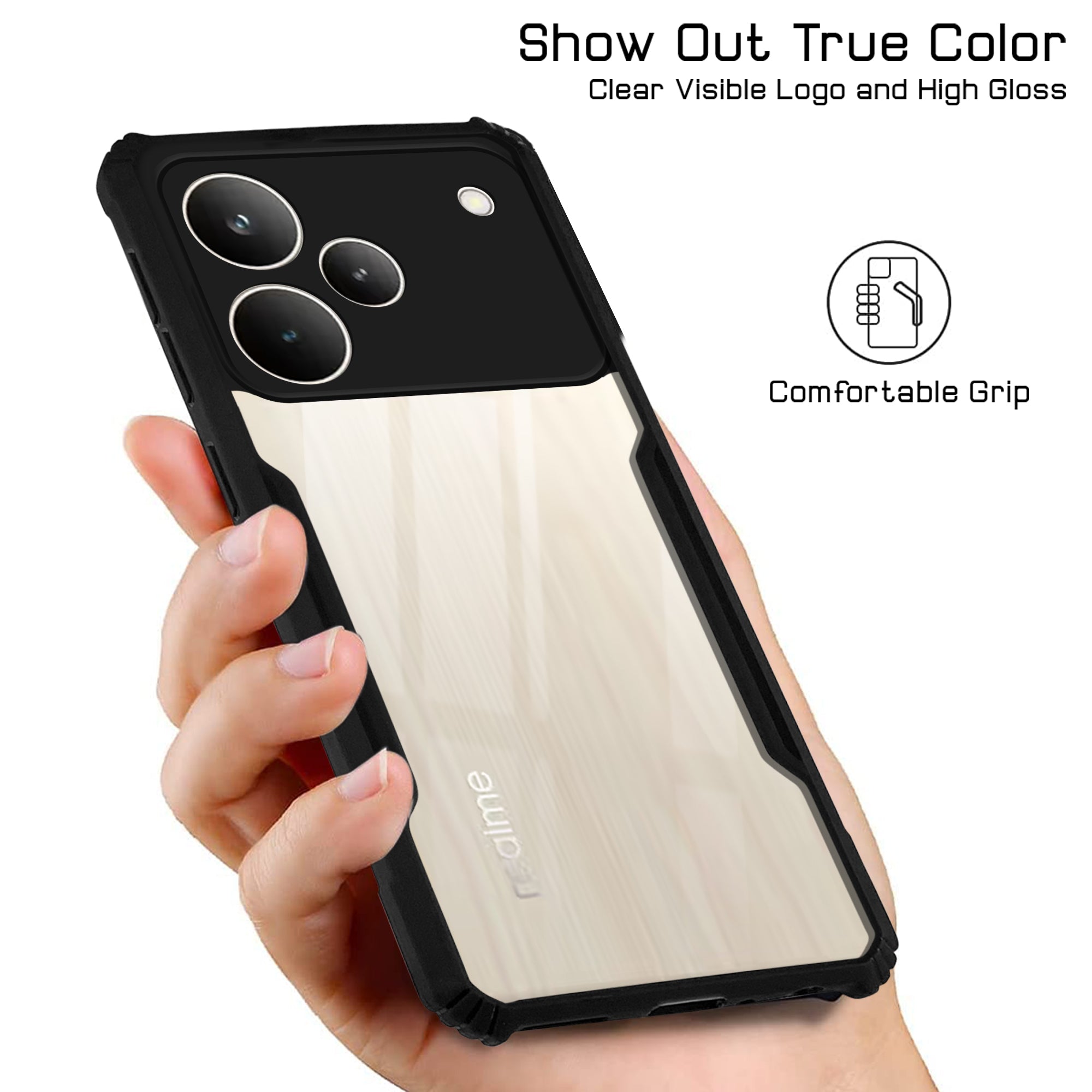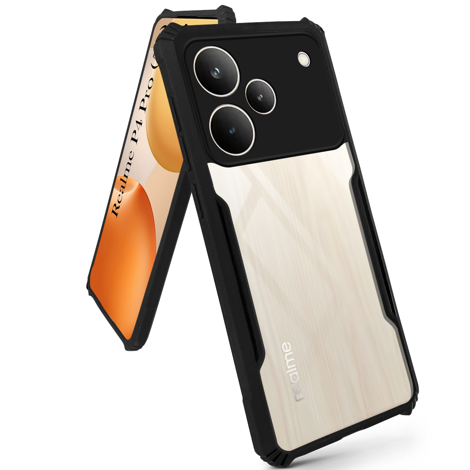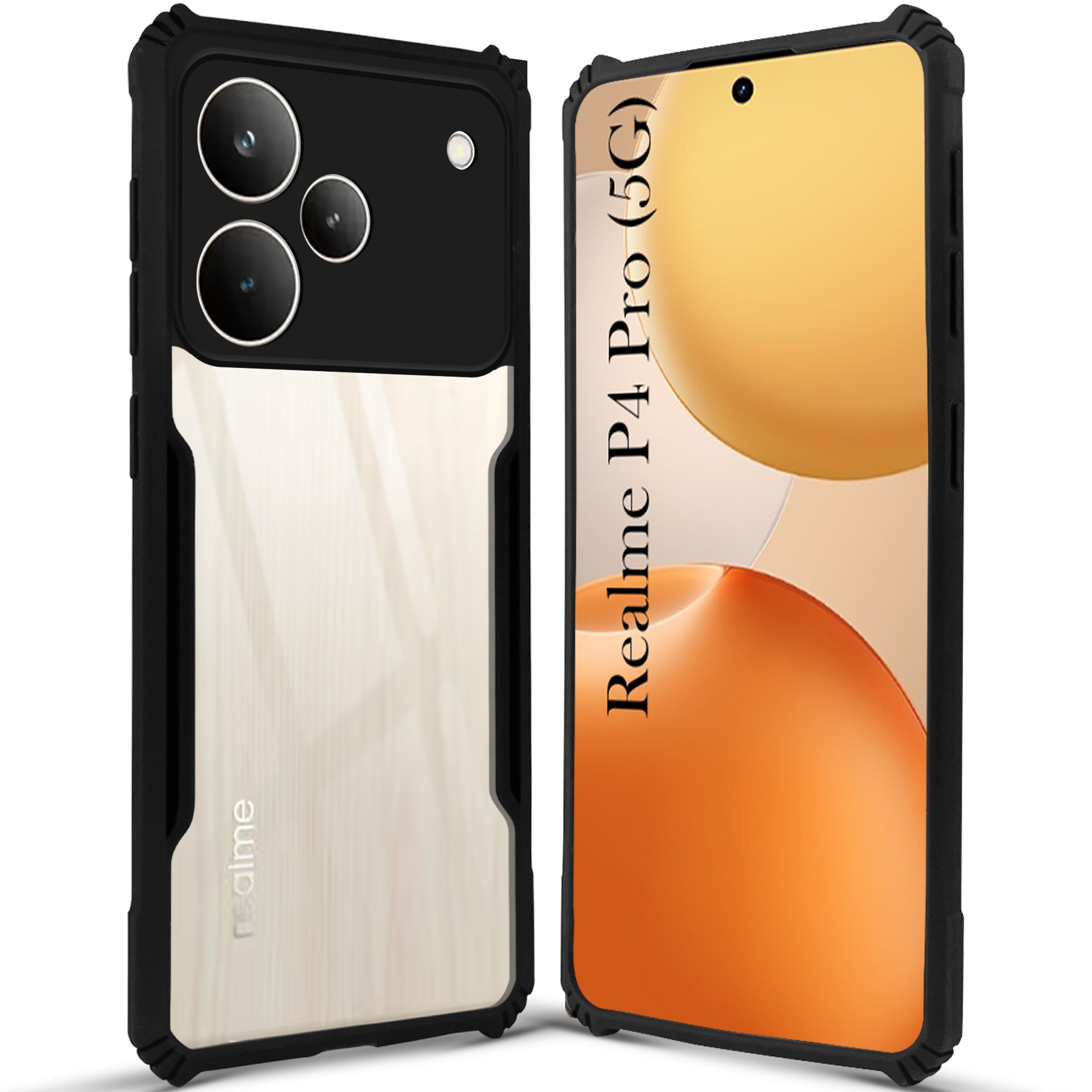 For Realme P4 Pro Back Cover Case (Shockproof with Polycarbonate Clear Panel | Professional Black)