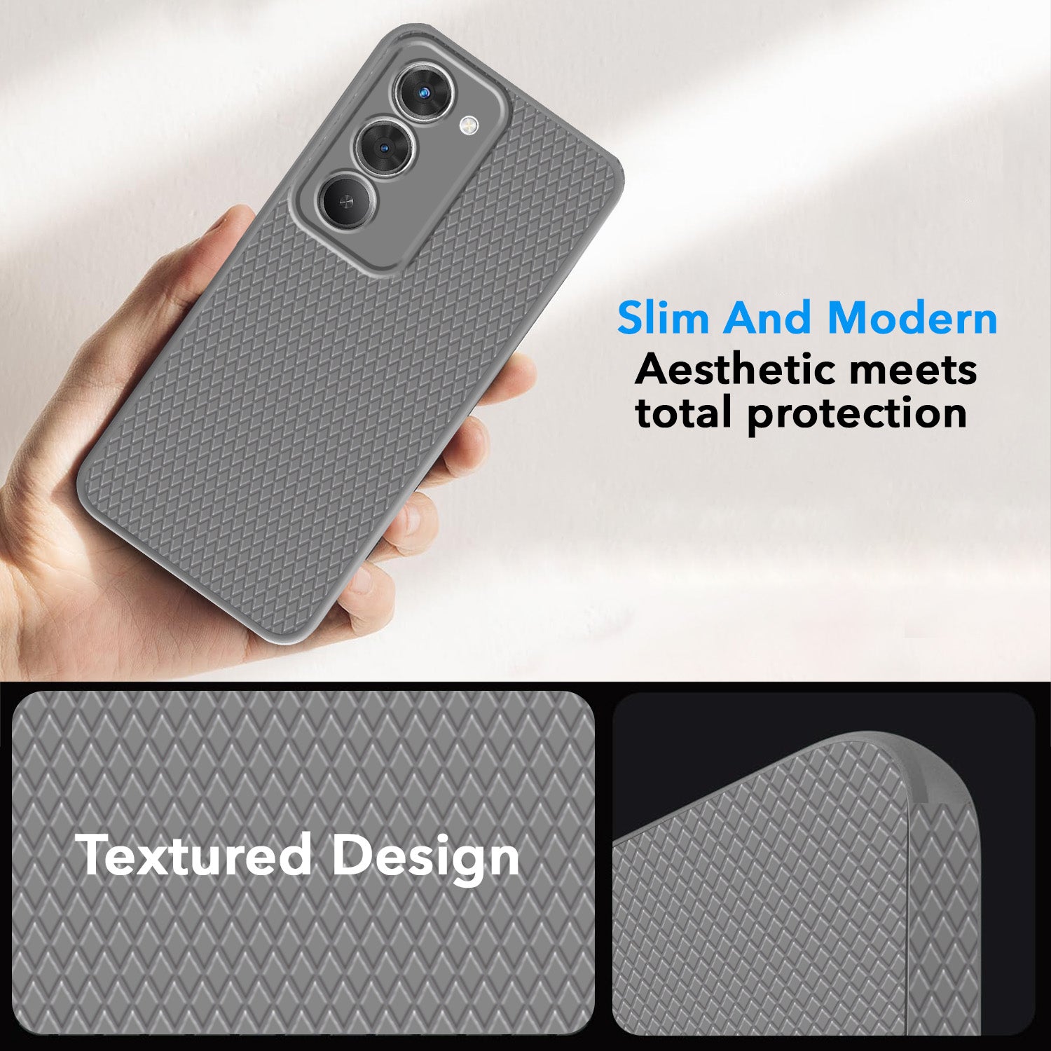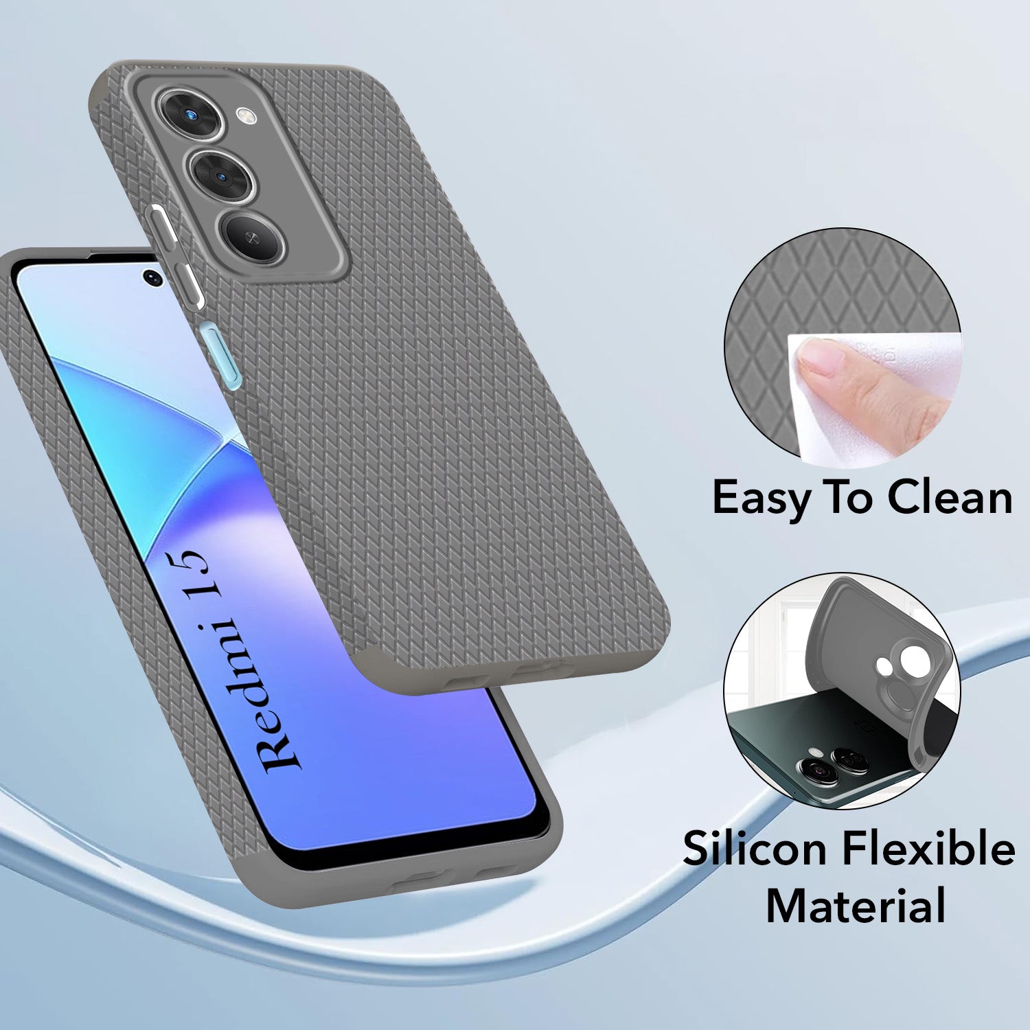 For Redmi 15 Back Cover Case (Camera Protection | Side Grip Texture | Soft and Flexible)