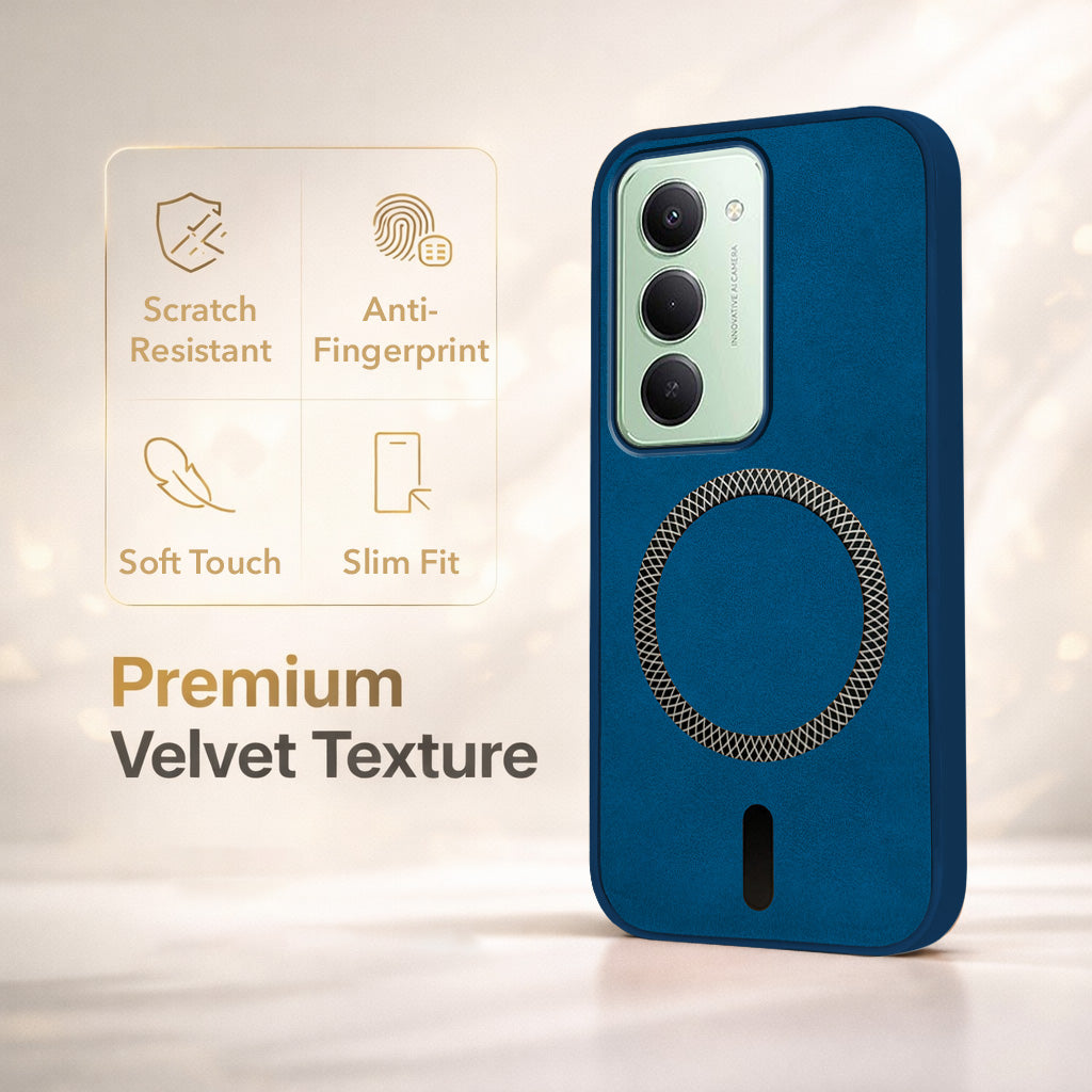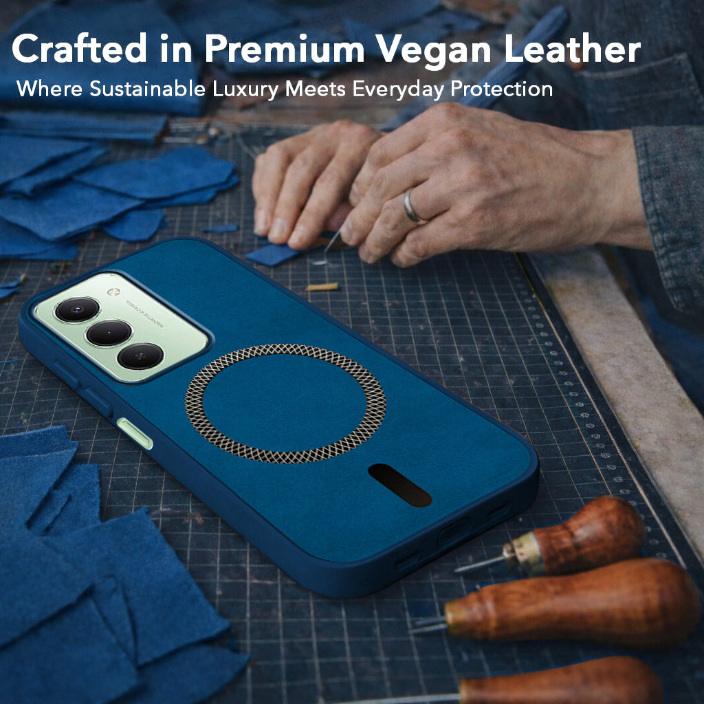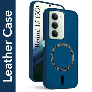For Redmi 15 Back Cover Case Leather Finish (MagSafe Compatible Wireless Charging | Soft Touch | Camera Bump Protection)