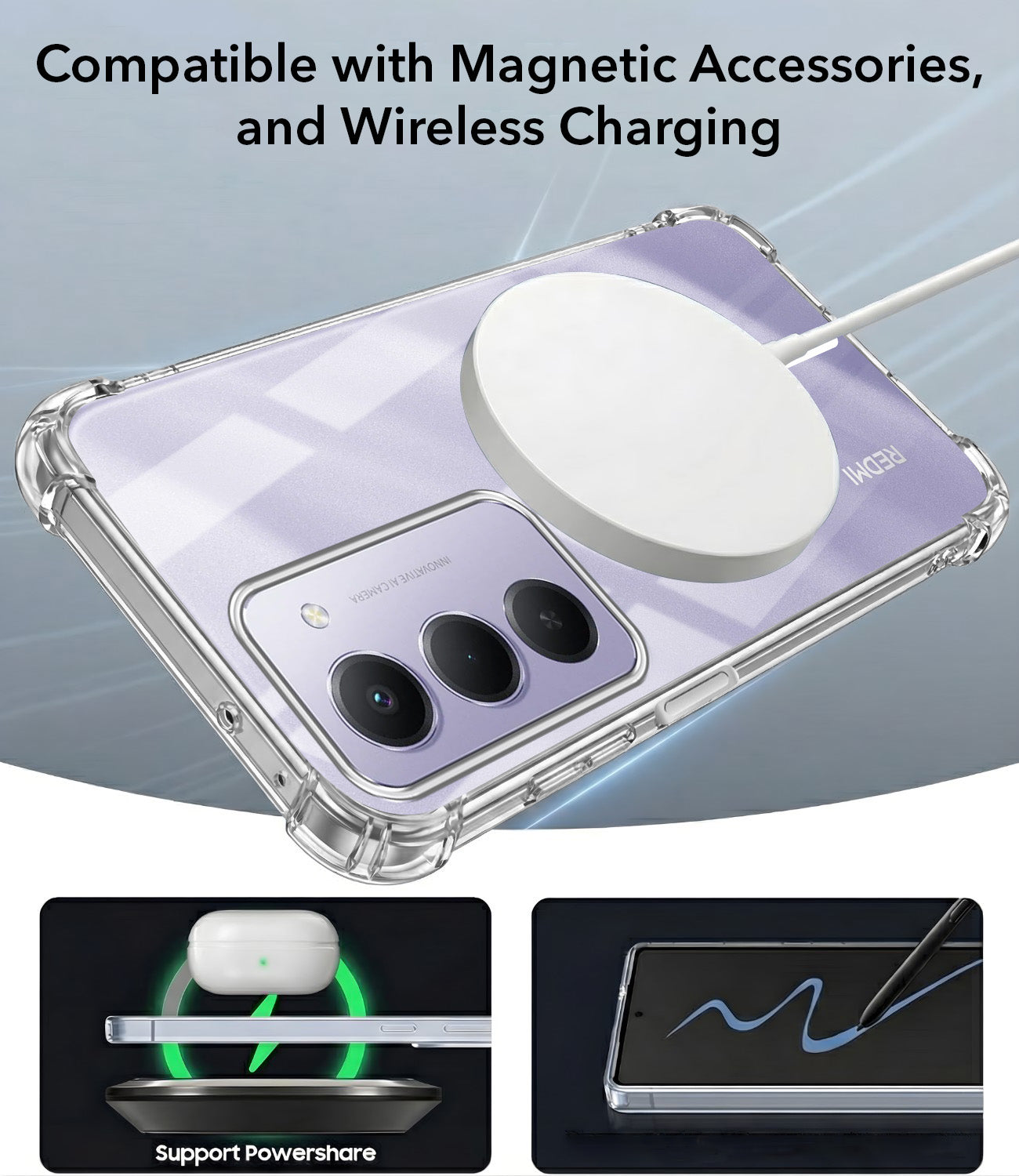 For Redmi 15 Back Cover Shockproof Crystal-Clear (Magsafe Wireless Support | Drop & Camera Protection | Hard Polycarbonate)