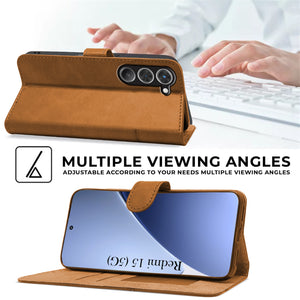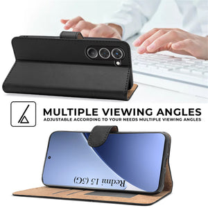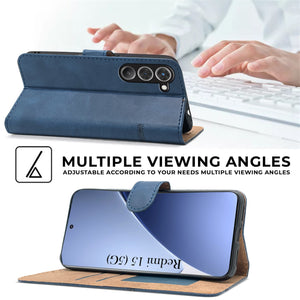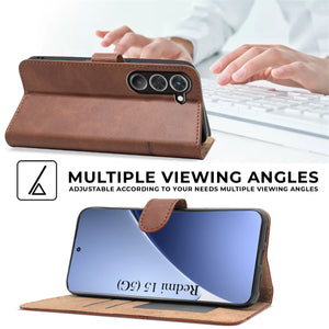 For Redmi 15 Flip Cover Case ( Stitched Leather with Magnetic Closure)