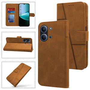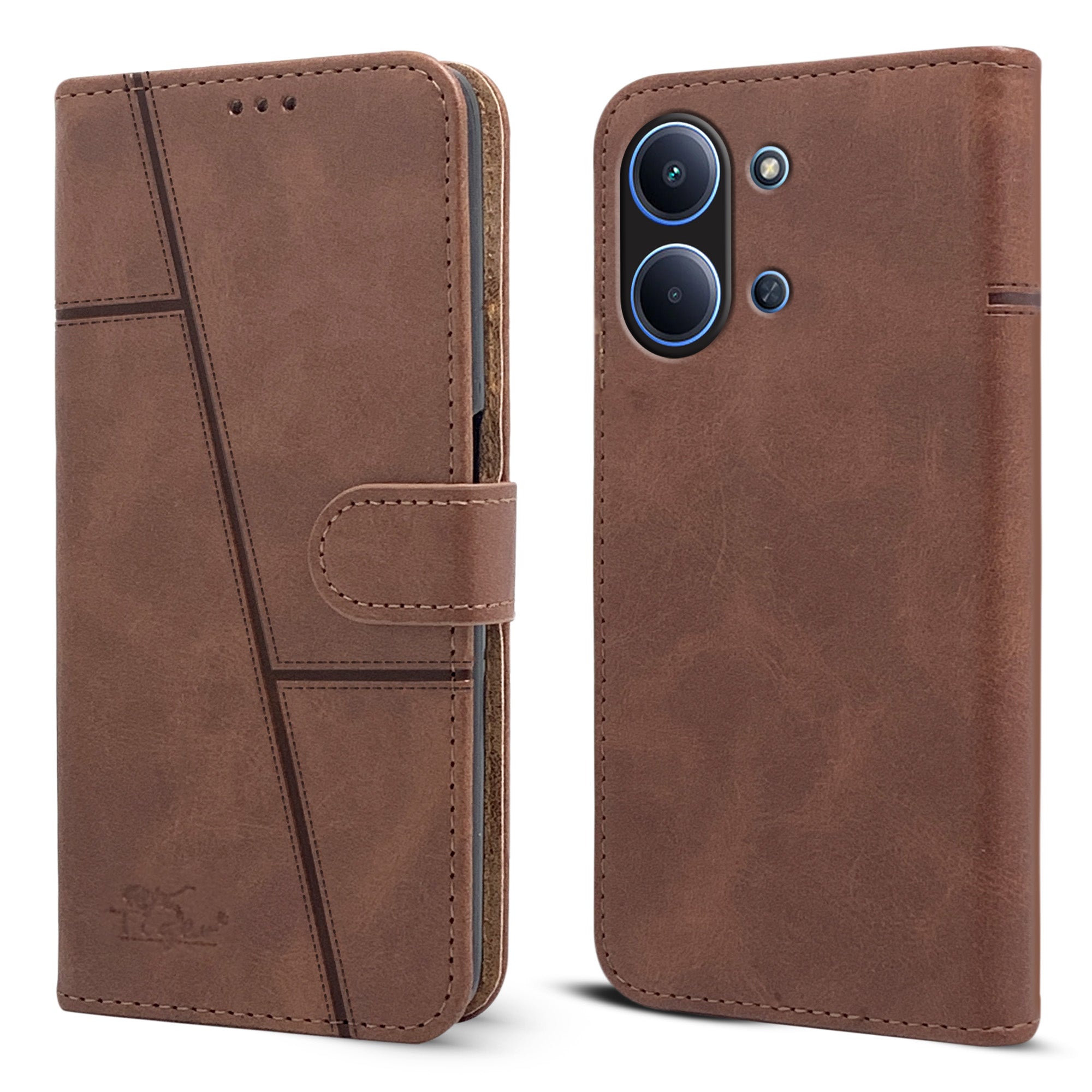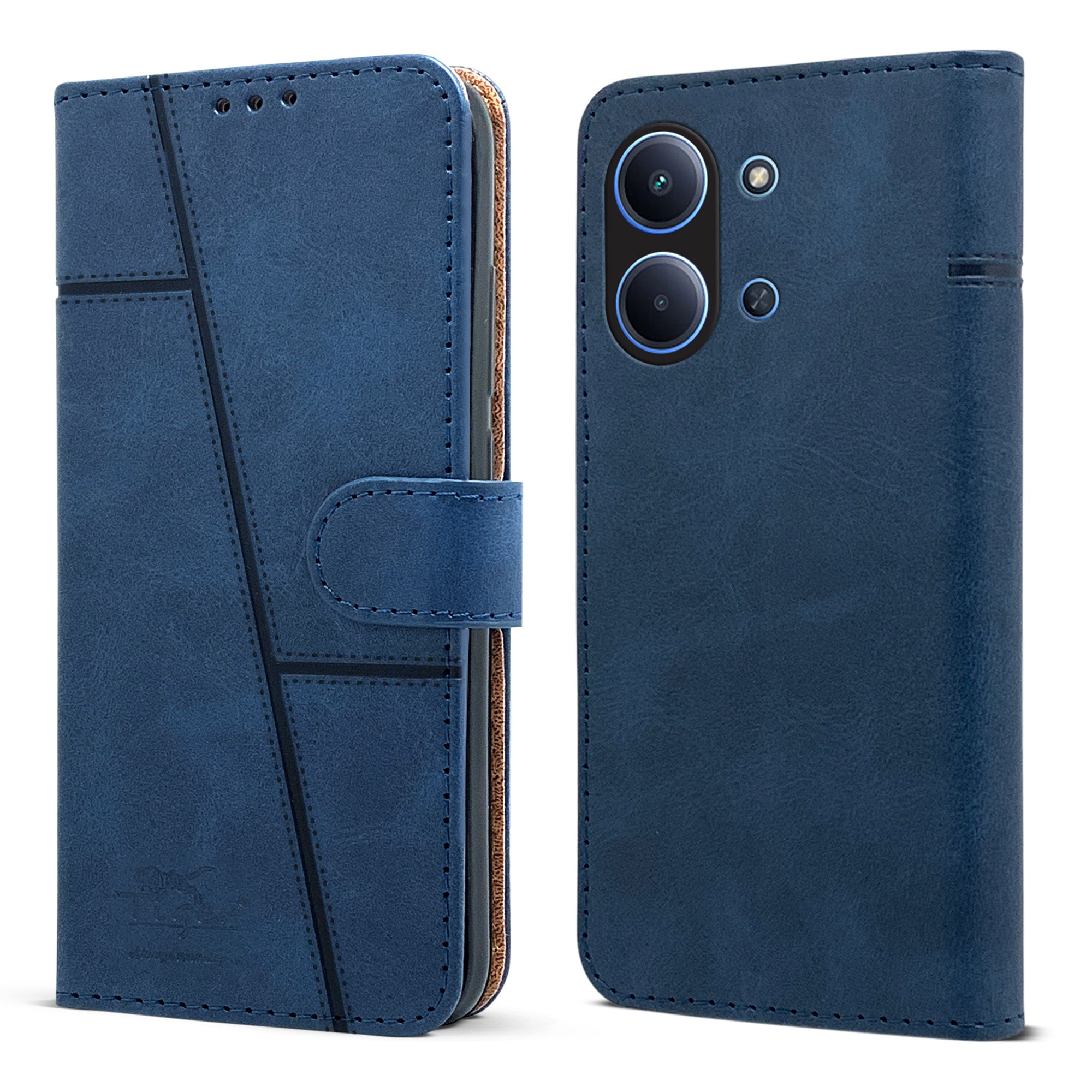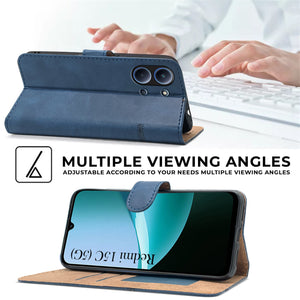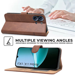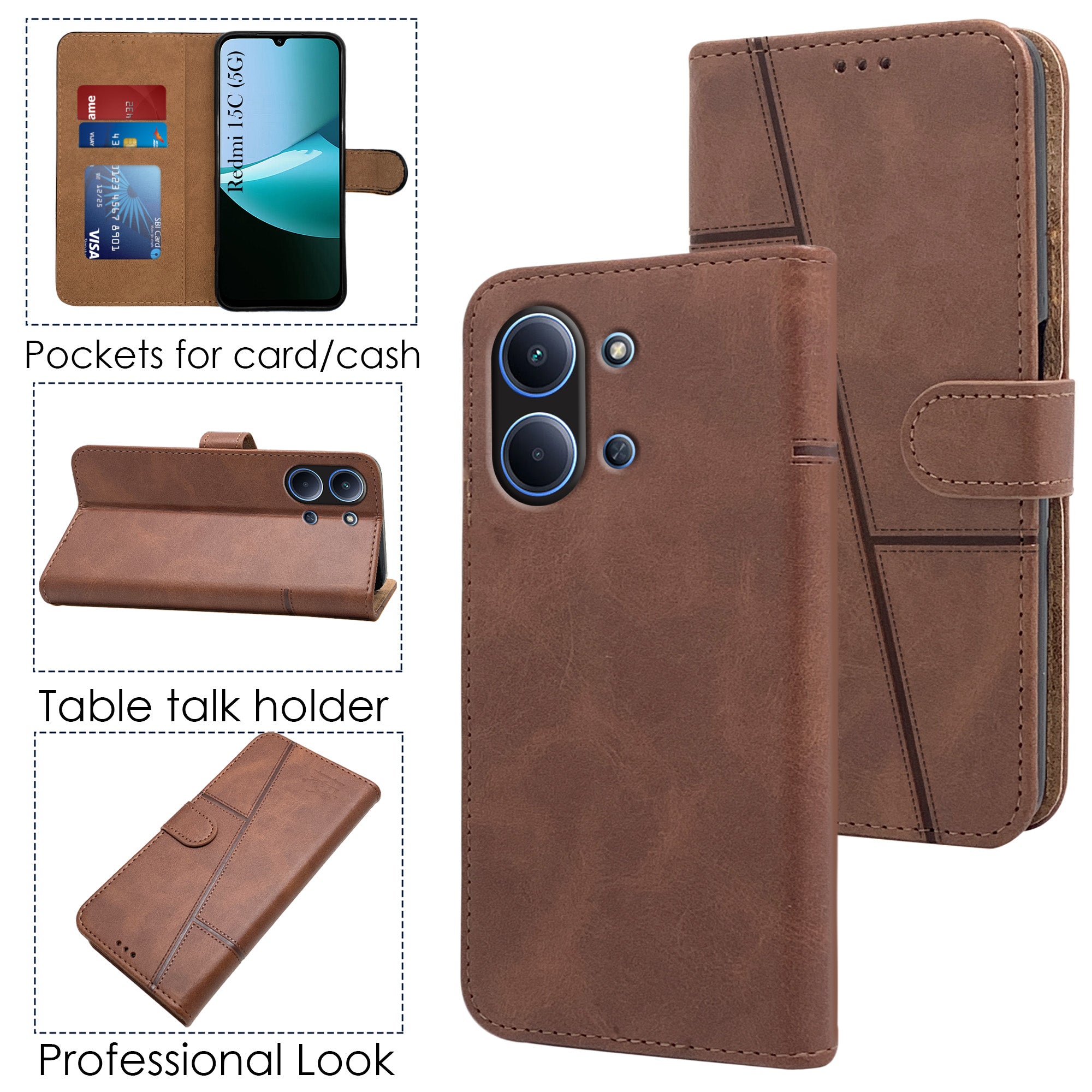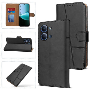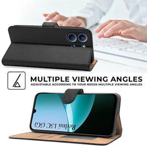 For Redmi 15C Flip Cover Case (Stitched Leather with Magnetic Closure | Black)