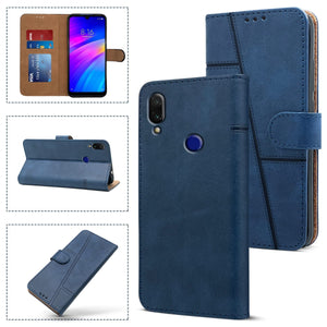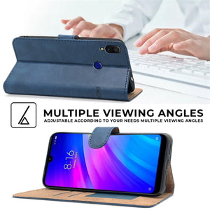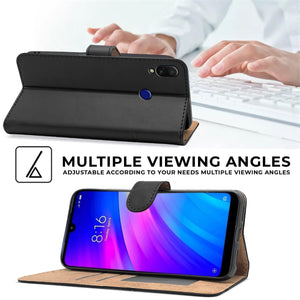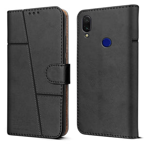 For Redmi 7 | Redmi Y3 Flip Cover Case (Stitched Leather Finish | Magnetic Closure | Wallet Card Slots)