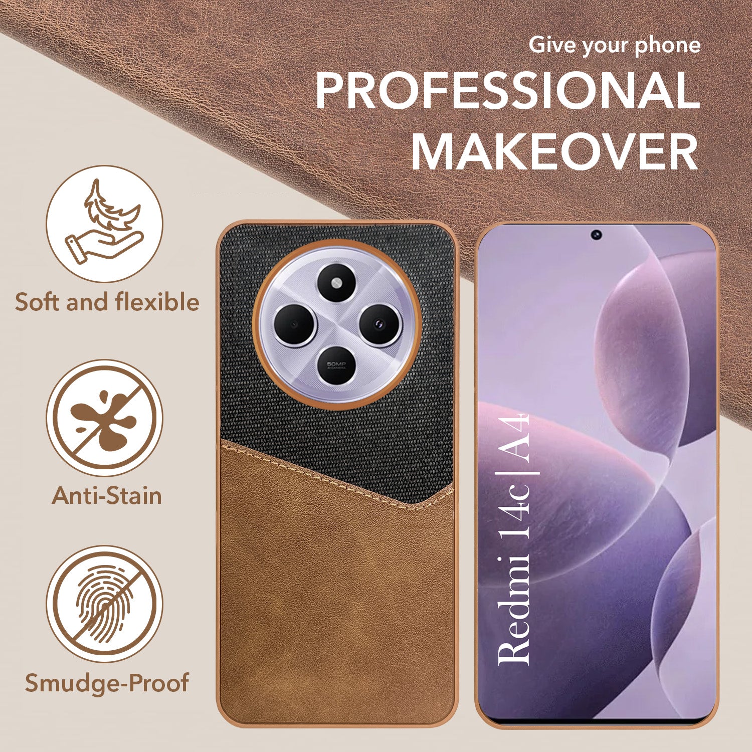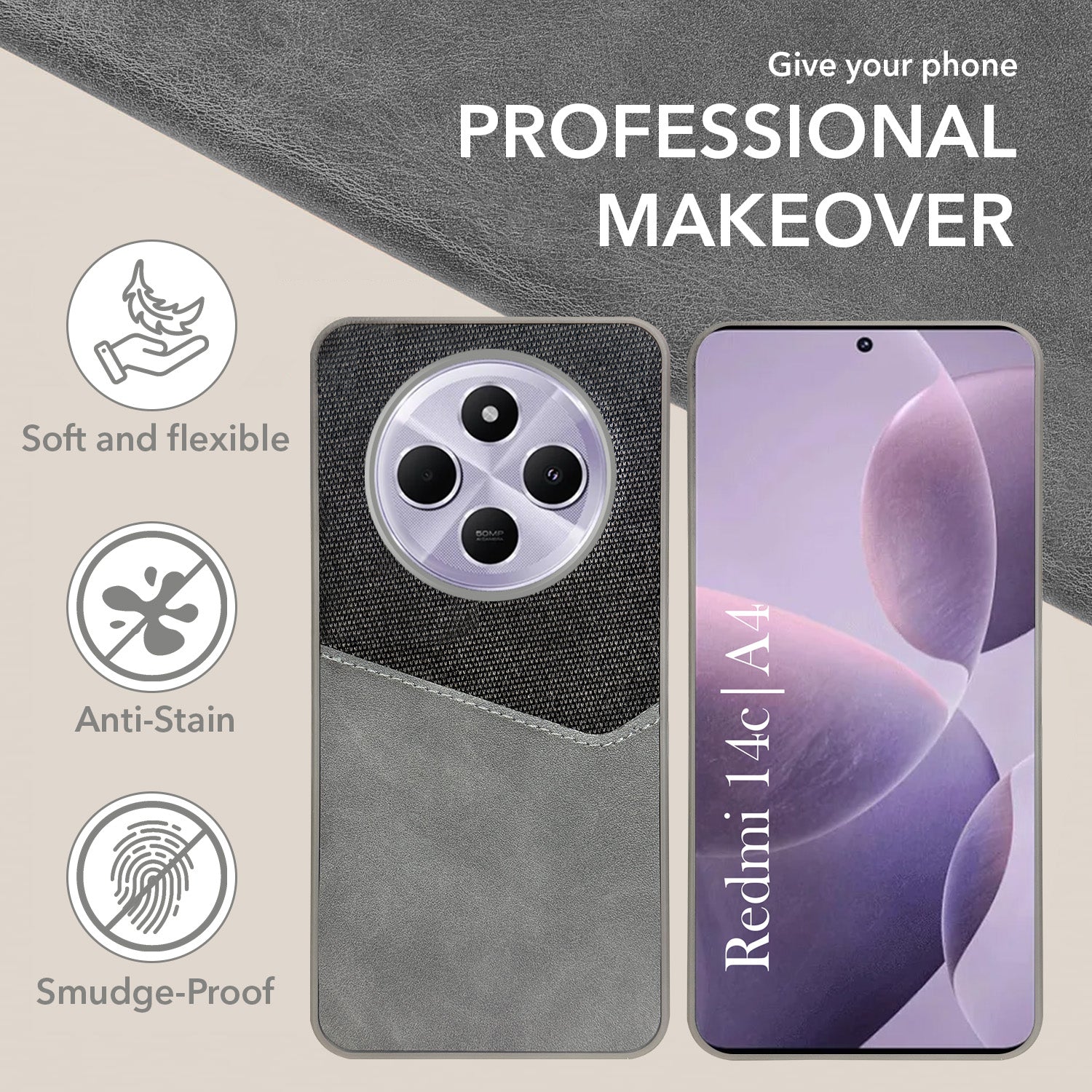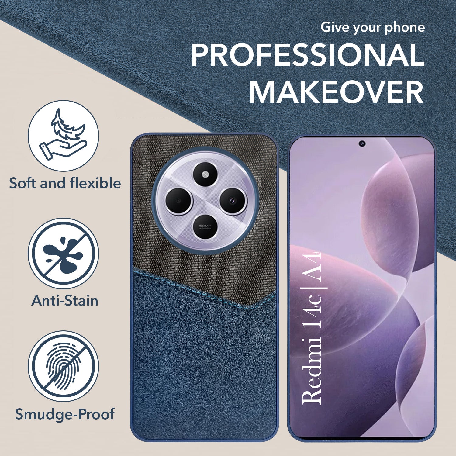For Redmi A4 5G | Xiaomi Redmi 14C Back Cover Case (Dual PU Leather Stitch | Professional Minimalist | Soft and Flexible)
