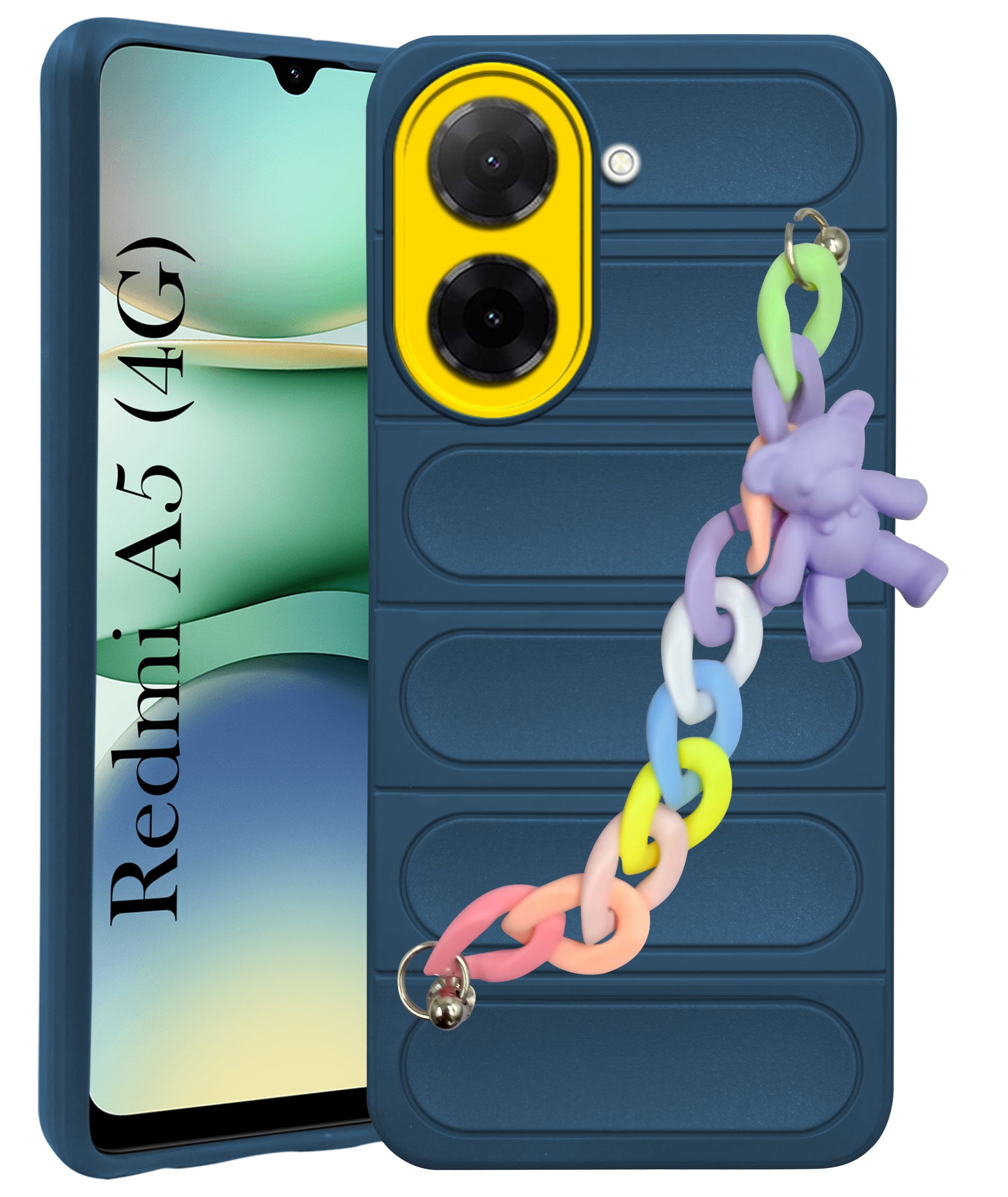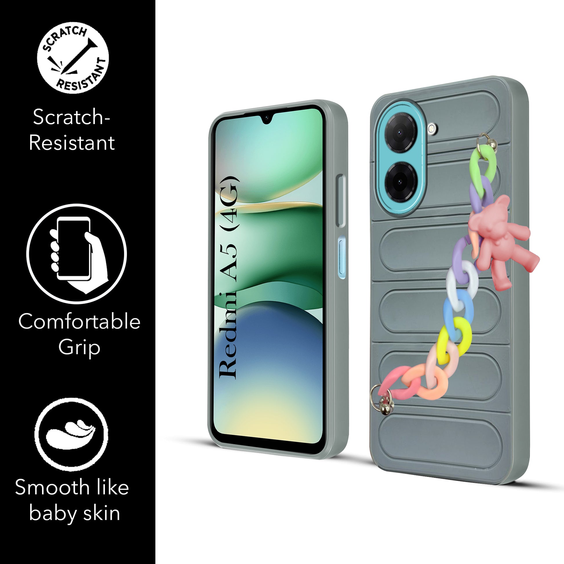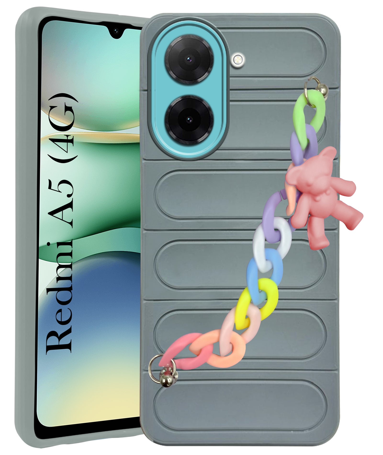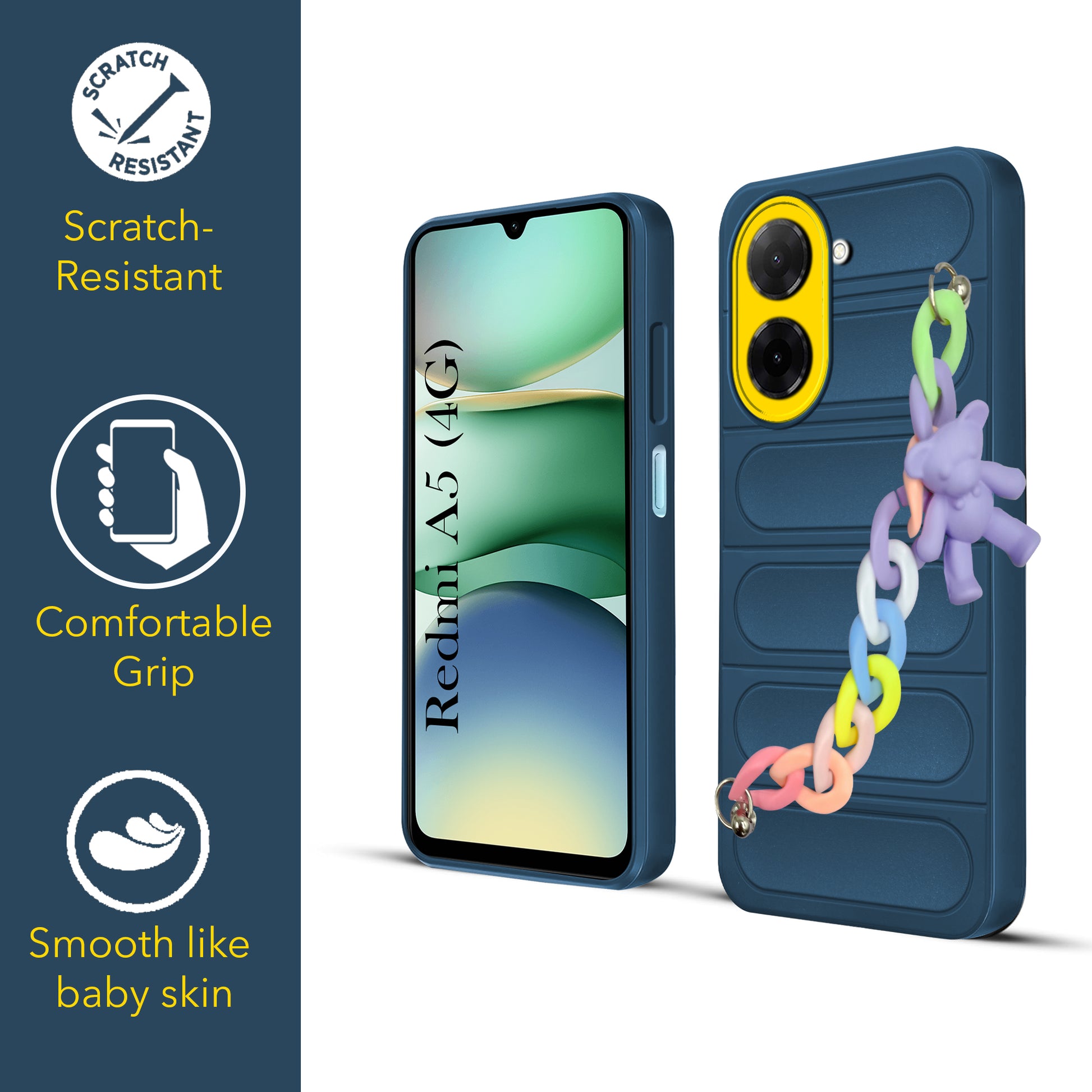 For Redmi A5 4G Back Cover Case (Wrist Hanging Chain | Teddy Bracelet Charms | Matte Liquid Silicone | Camera Protection Ring)