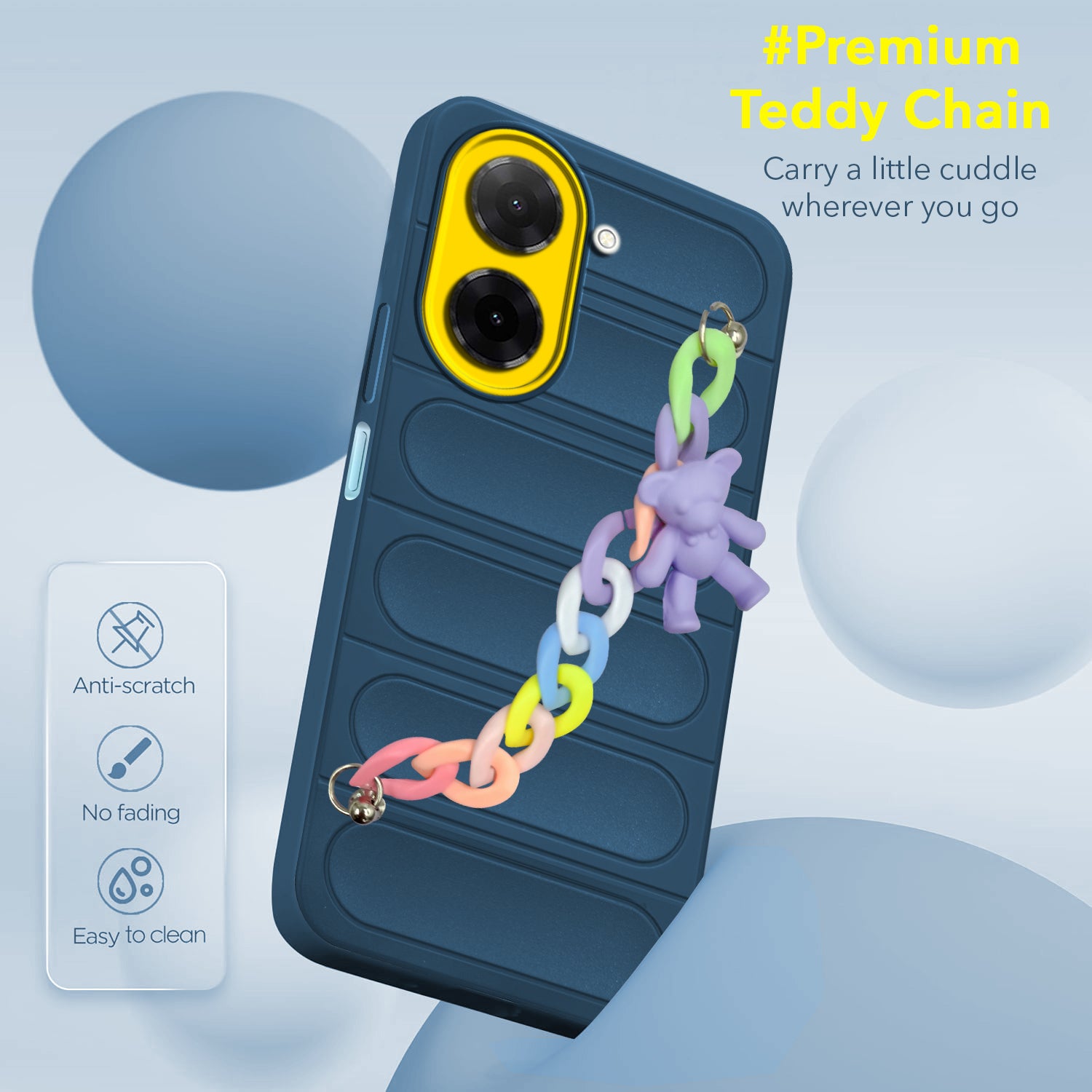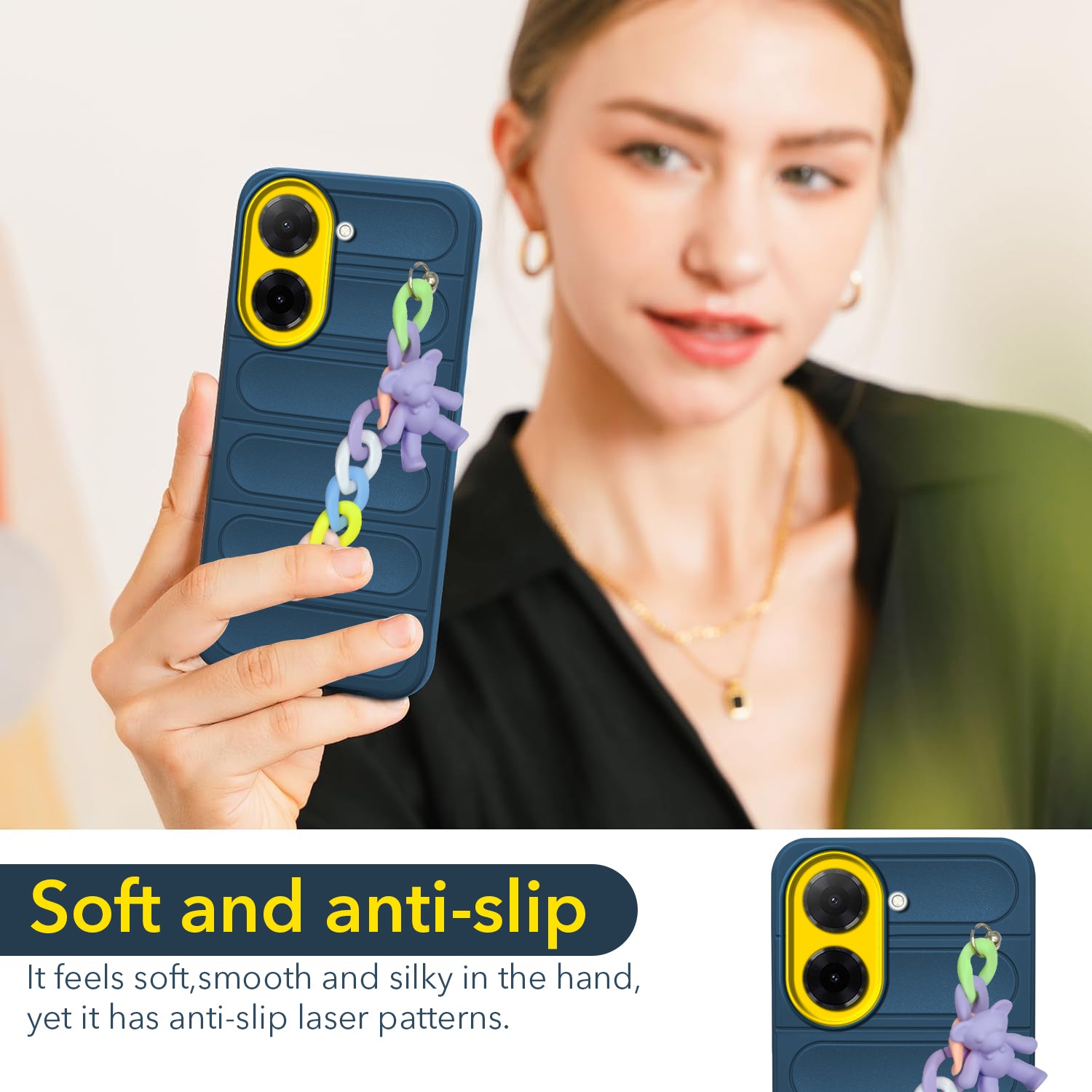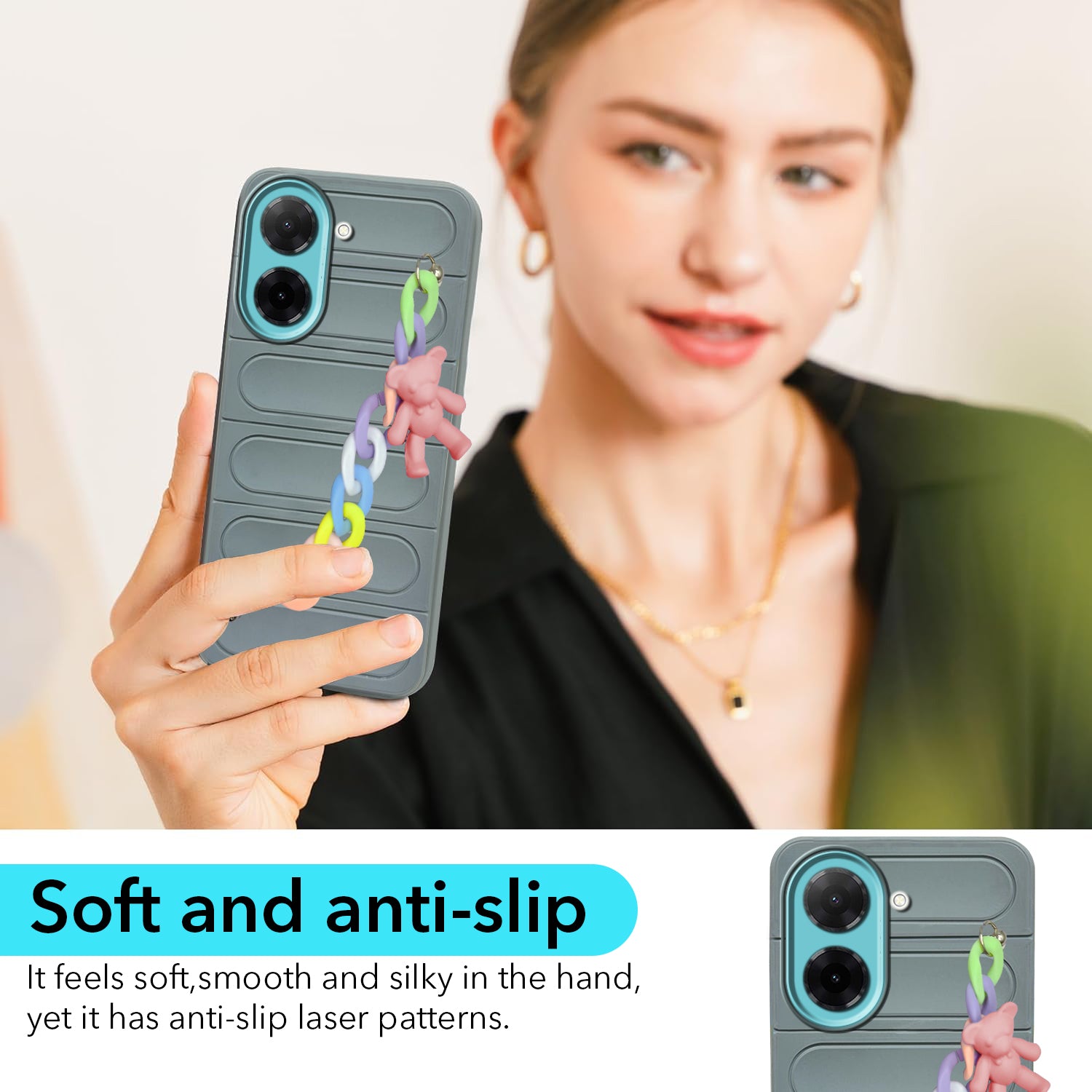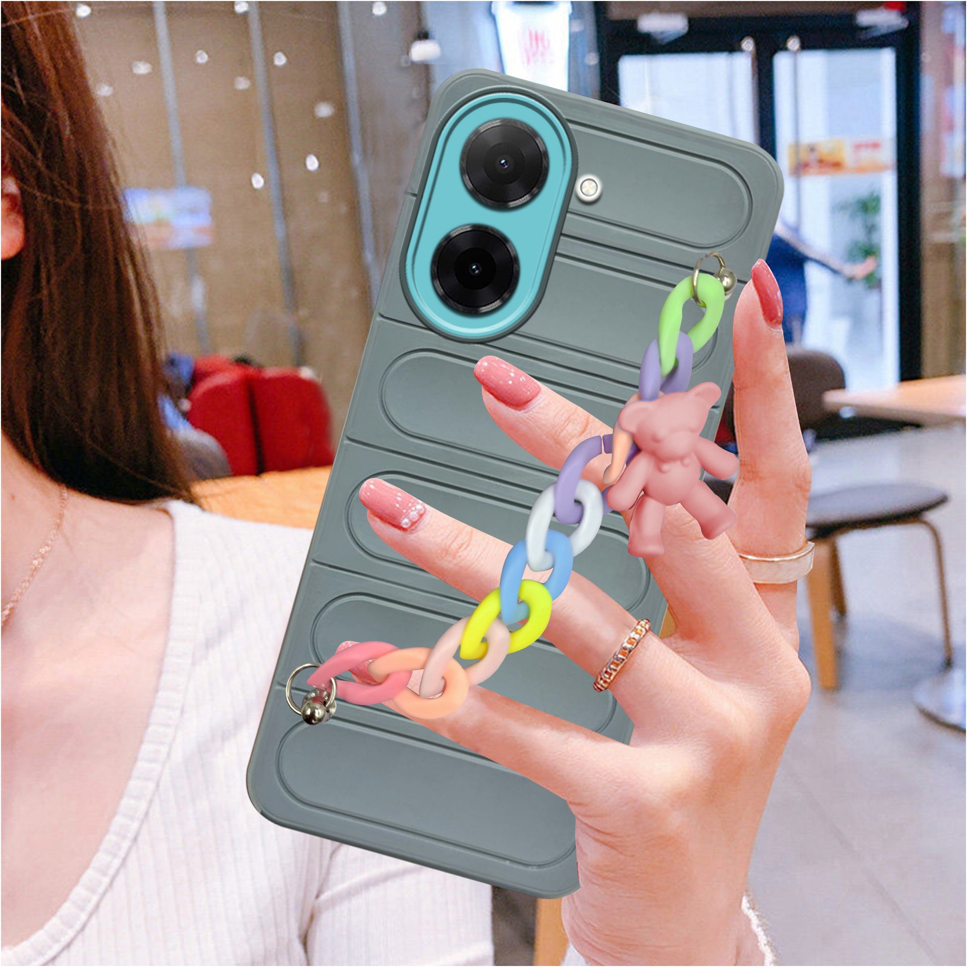 For Redmi A5 4G Back Cover Case (Wrist Hanging Chain | Teddy Bracelet Charms | Matte Liquid Silicone | Camera Protection Ring)